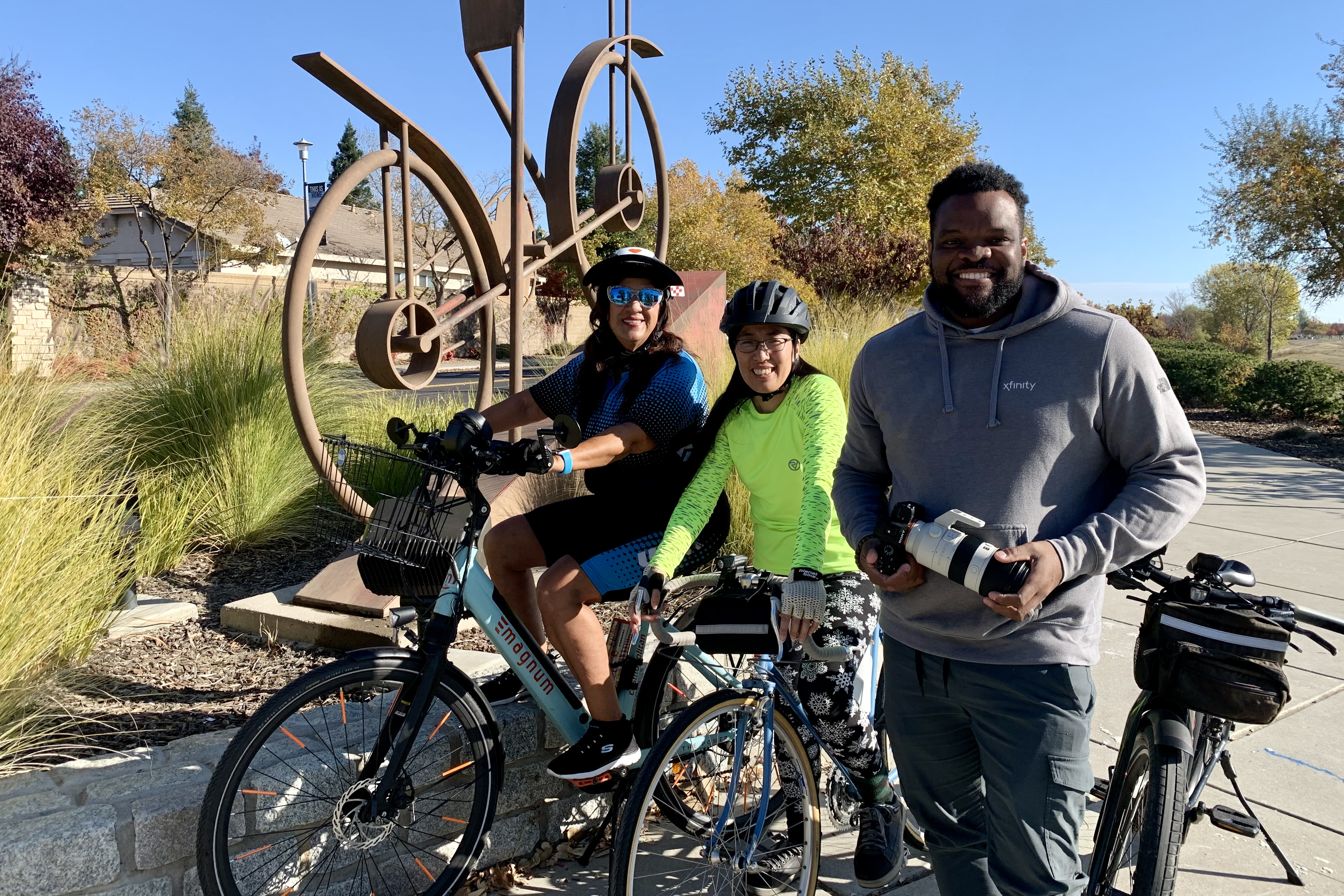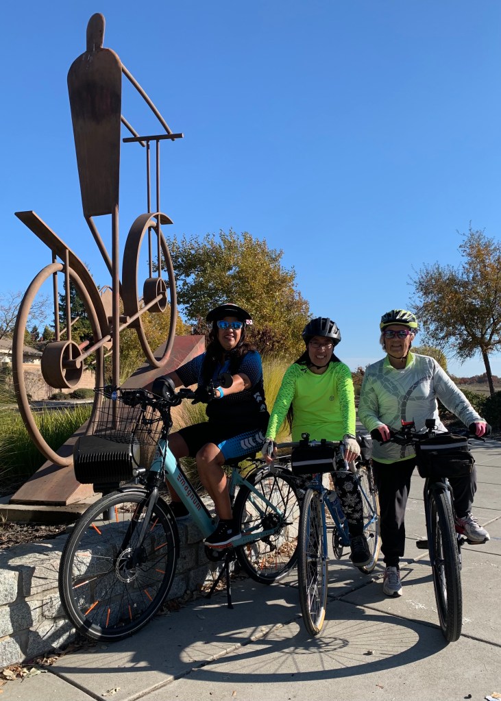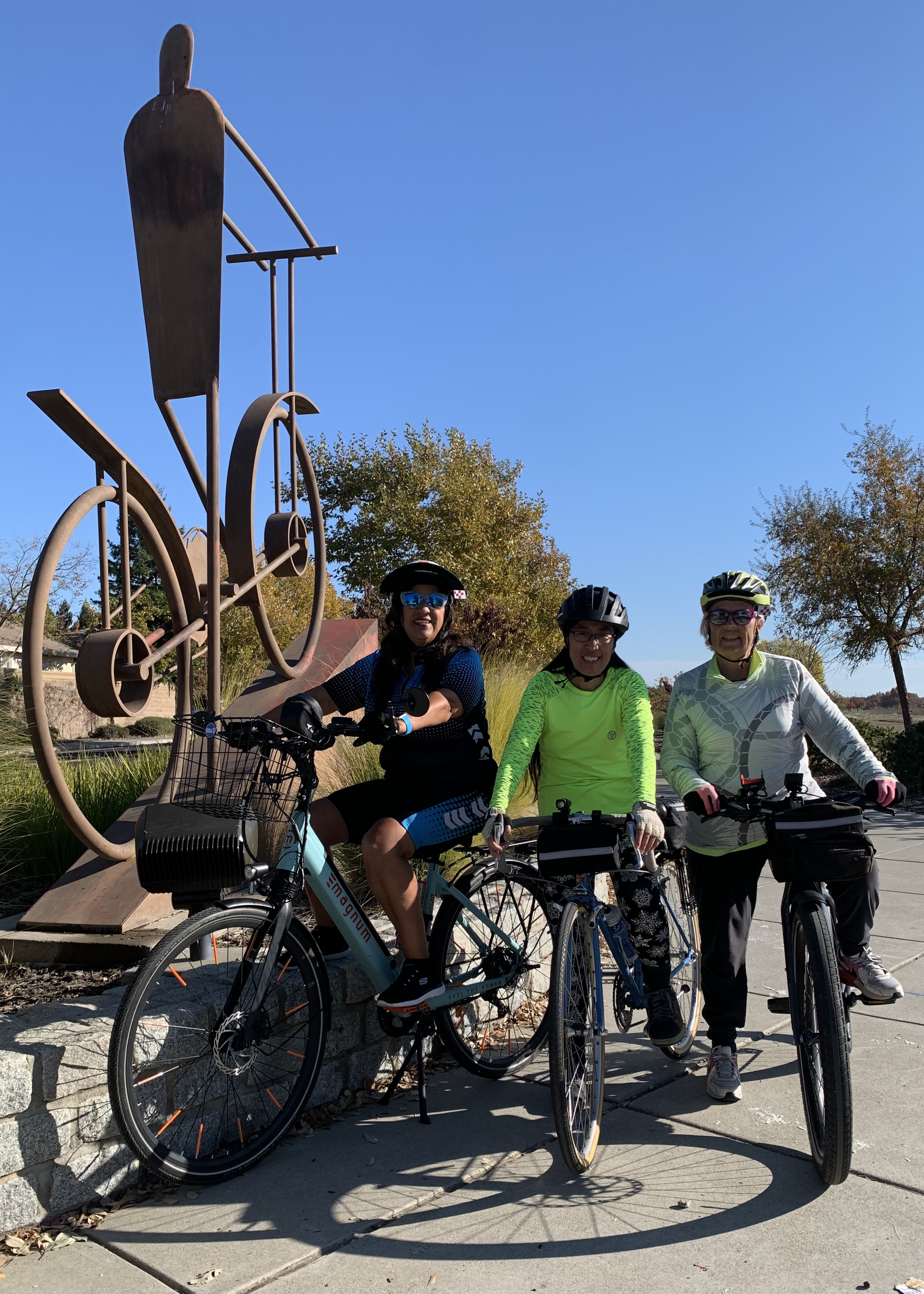 Councilmember Lisa Kaplan and Jibe partnered on a community enhancement project called N Natomas Joy. There were 42 applications, each reflecting a joy of living in NN. But only one was focused on friendships created through bicycling. And here we are: Brenda, BarbaraL, me.