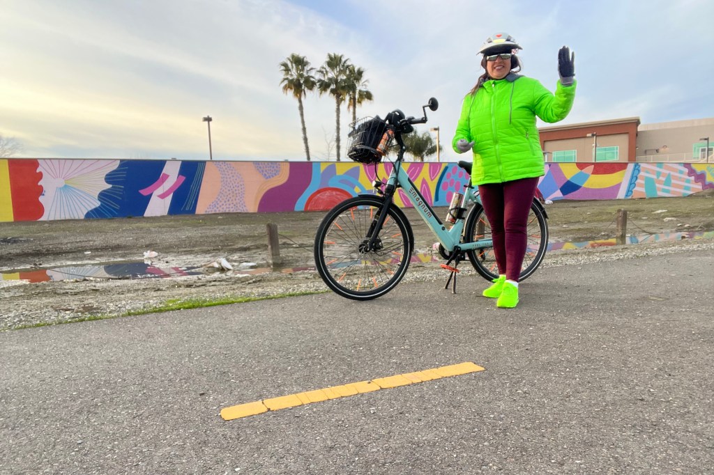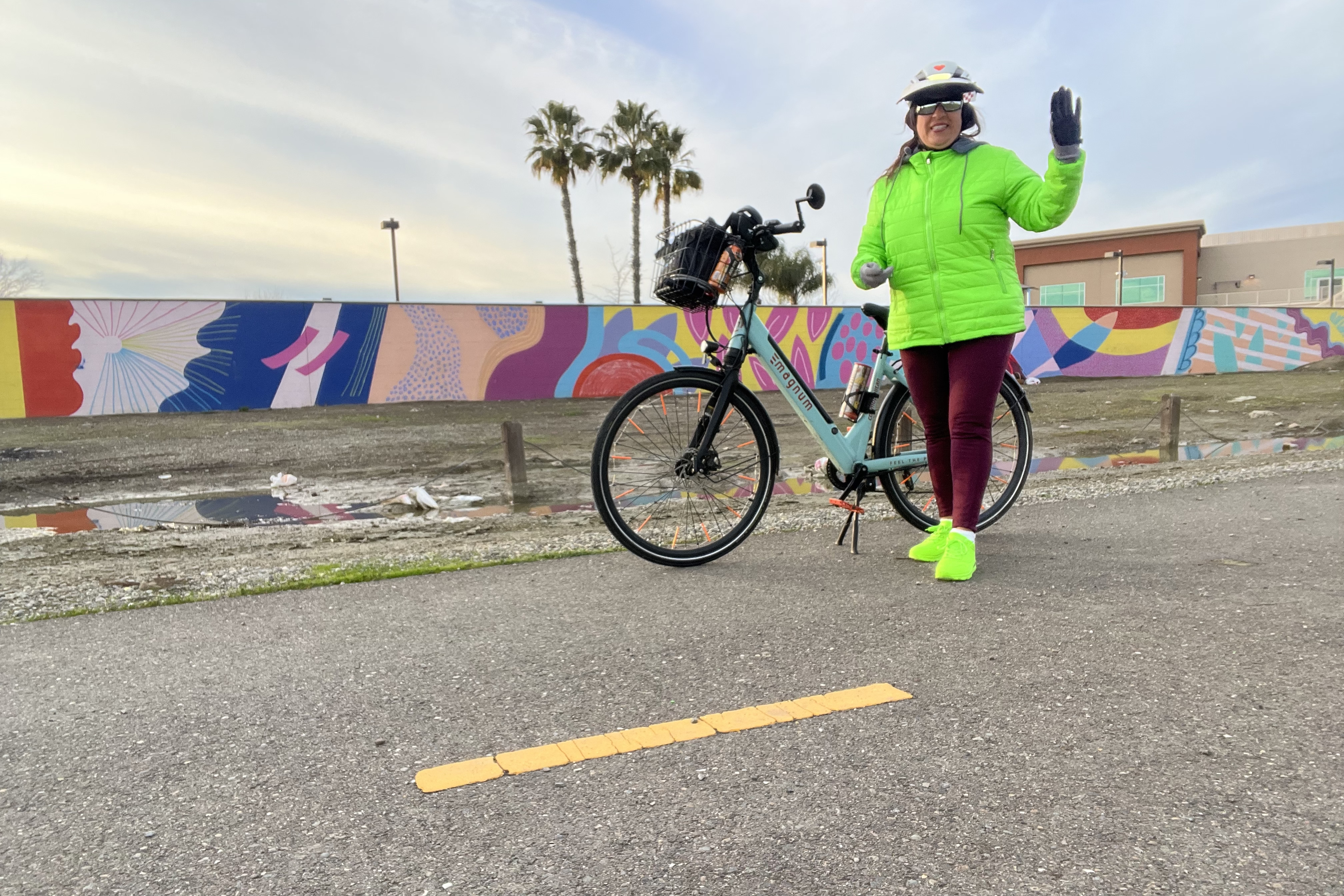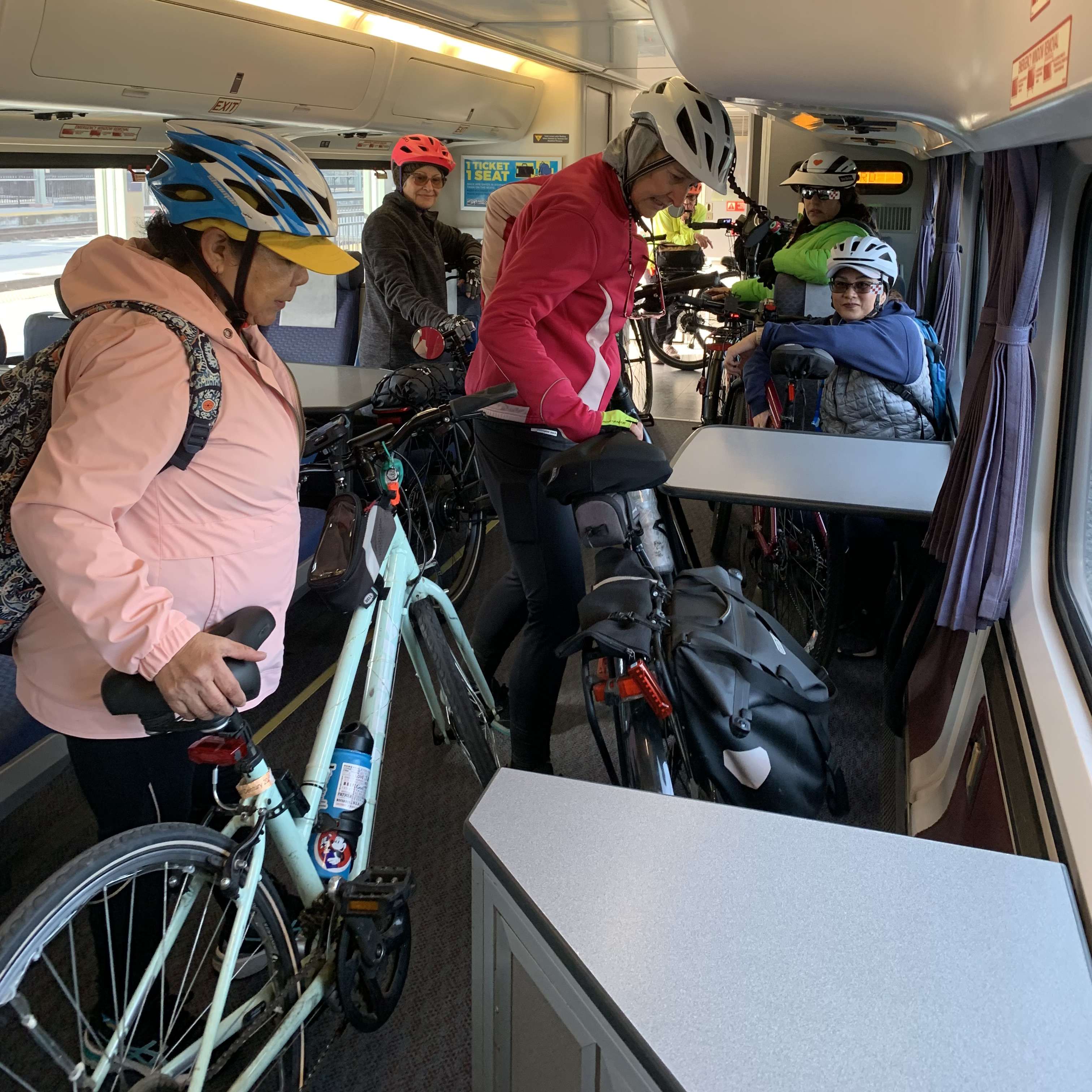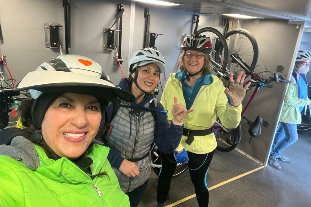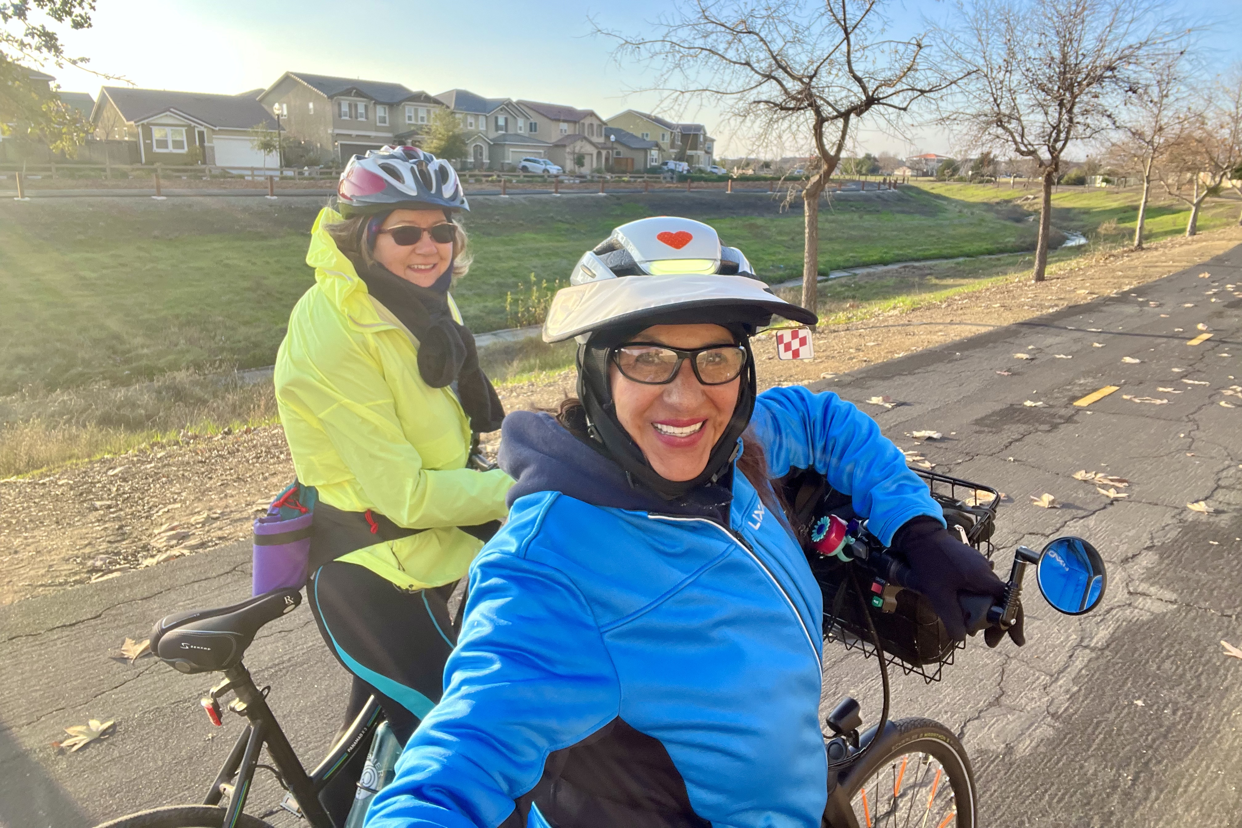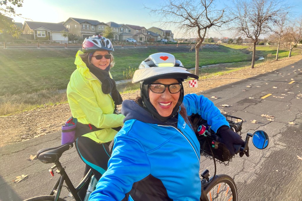 Jibe wanted to create a set of videos which demonstrated all the basic steps to teach an adult how to ride a bike. It’s different with kids - generally, you provide minimal instruction, run alongside for a while, and boom, they’ve got it. Adults are different. First you need to respect their concerns: past experience, health concerns, cultural norms. Then break everything down into logical comfortable steps. Anya, Deanna and I have taught several in-person rounds of Adult Learn to ride and think we’ve got a really good teaching strategy. We have a very high success rate. Anya wrote draft one of the script. We edited together for a couple of weeks. In the end, the words had to sound like they were coming from me. After delays due to my cold, then the weather, this Tuesday had to be the filming day. A series of storms would begin on Wednesday. We met at Wild Rose Park. Ellen/filmmaker and Sean/assistant. Sean is holding the teleprompter – the script was 6 pages long – I did not want to memorize it (was that even possible?).