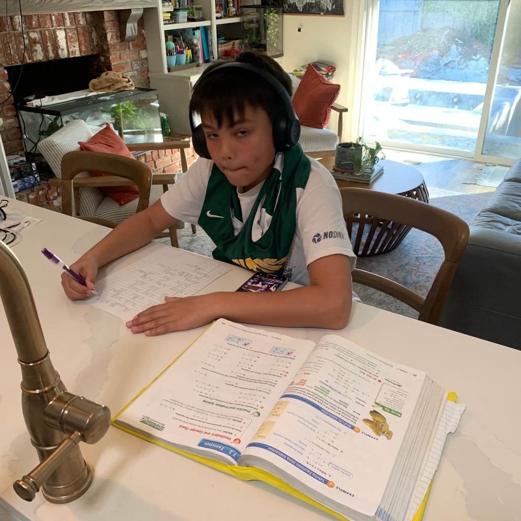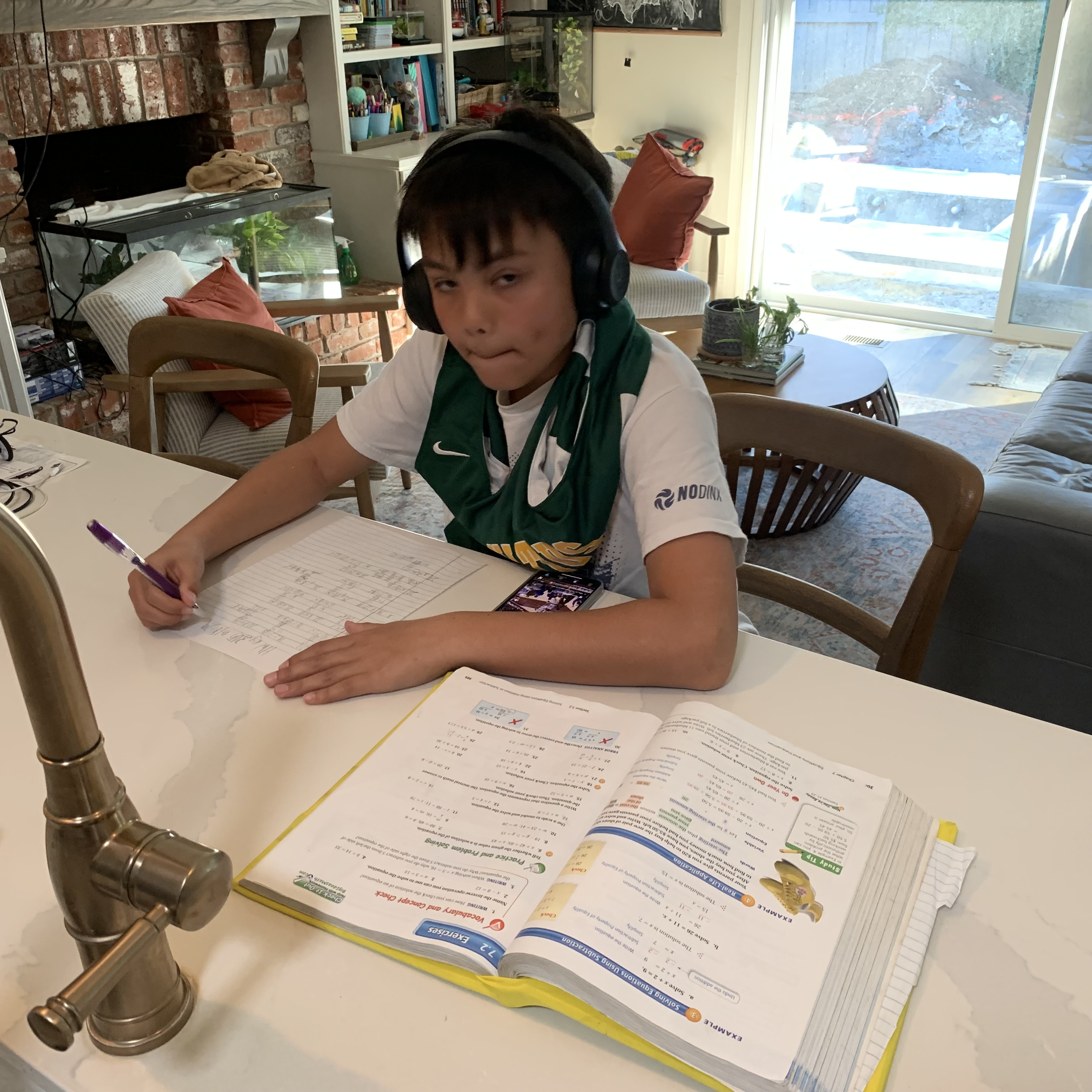 My usual day to pick up Carson and Avery is Thursday but there was a sick child for Wednesday’s carpool driver. I was able to step in and pick up Carson, Avery, and two nearby neighbors. We had just 15 minutes at home before we needed to leave for Avery’s first basketball playoff game. A few minutes to do homework.