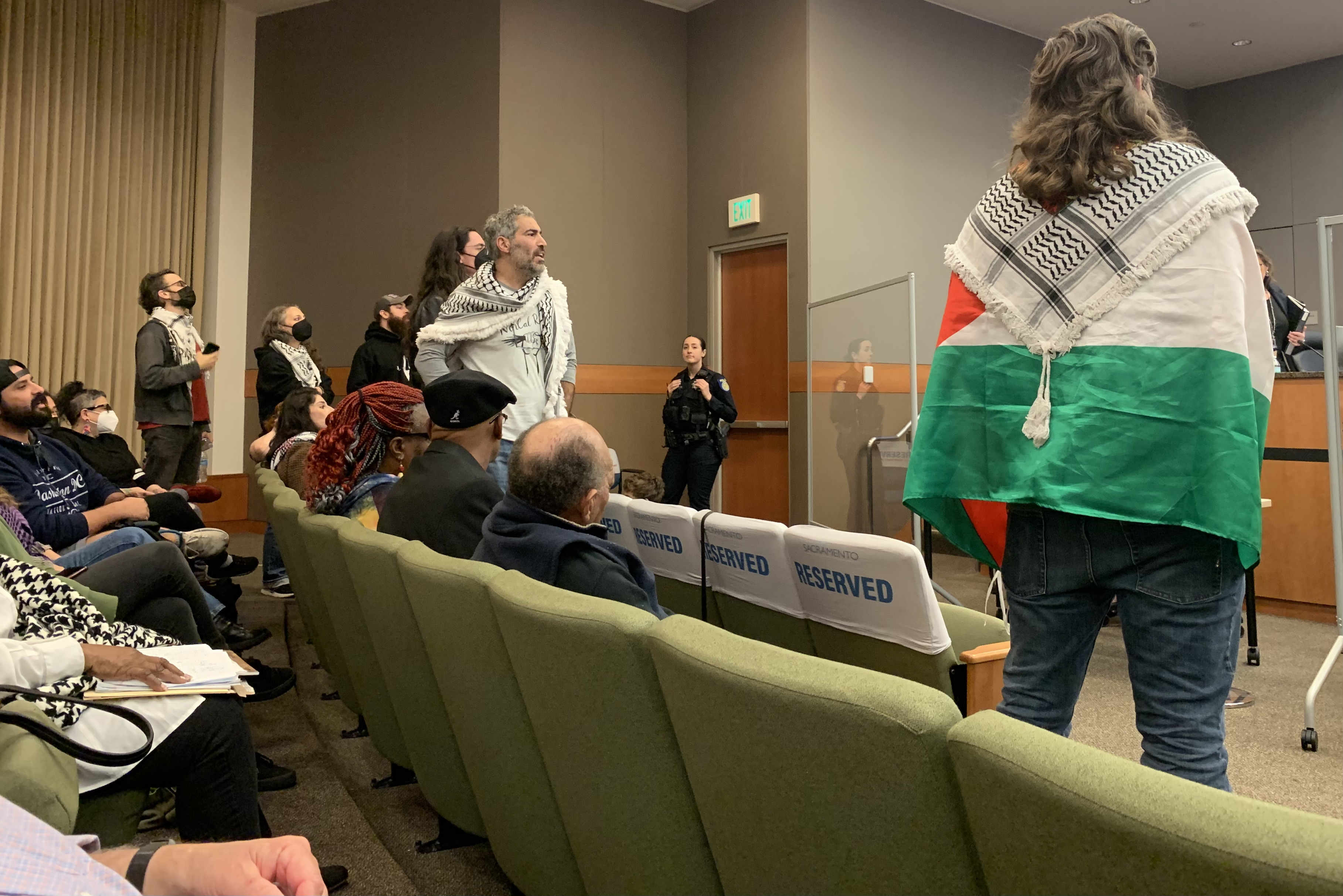 The above picture was taken early on in the meeting. After that, I didn’t feel comfortable taking more photos. Increasing numbers of police began to arrive. A protest was growing outside the building. Yes, time to adjourn and go home. After 3 hours, our item almost passed, but not quite.