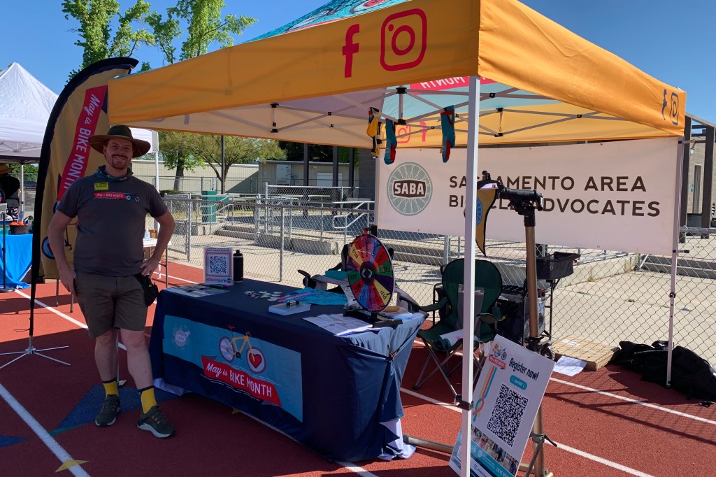 The City of Sacramento Transportation Planning Department had a table. Lee and I were promoting May is Bike Month and encouraging people to sign up. Also promoting MiBM was UTAPS – University Transportation and Parking Services.