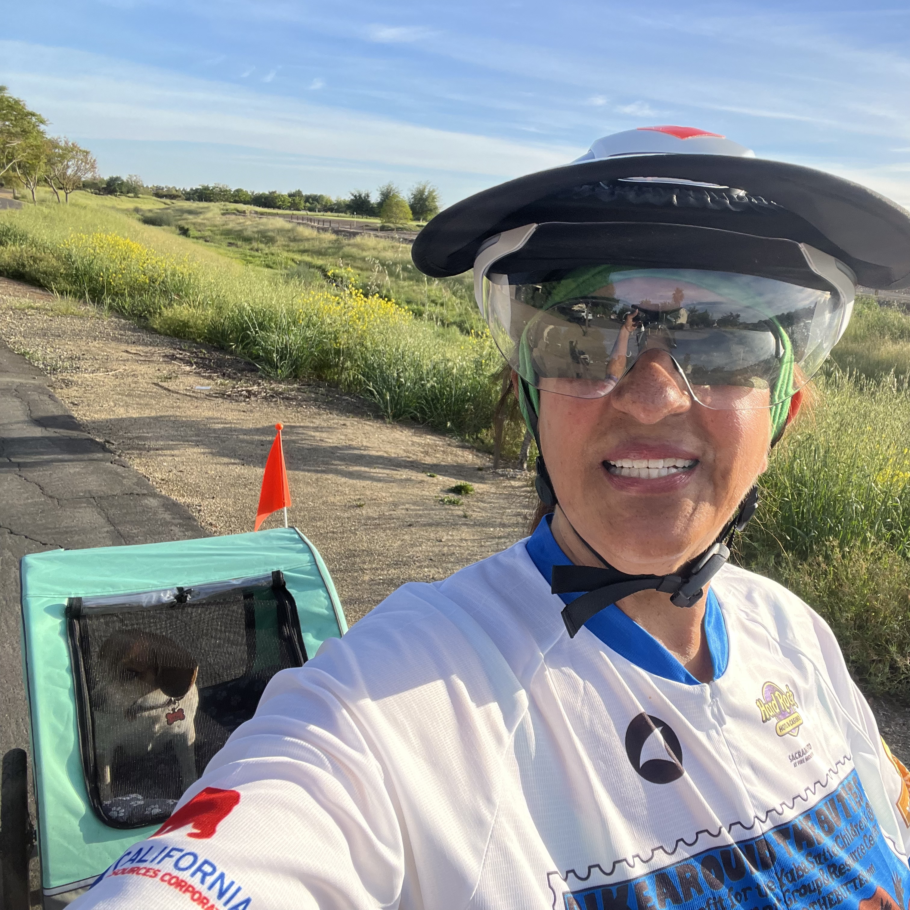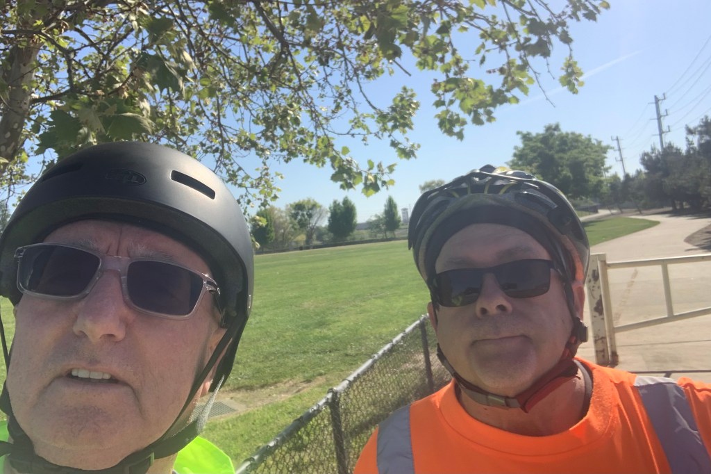 Pierson and I were promoting May is Bike Month. 1700 students in two one-hour batches. We actually got a lot of people to sign up. Pierson is an excellent “barker”.