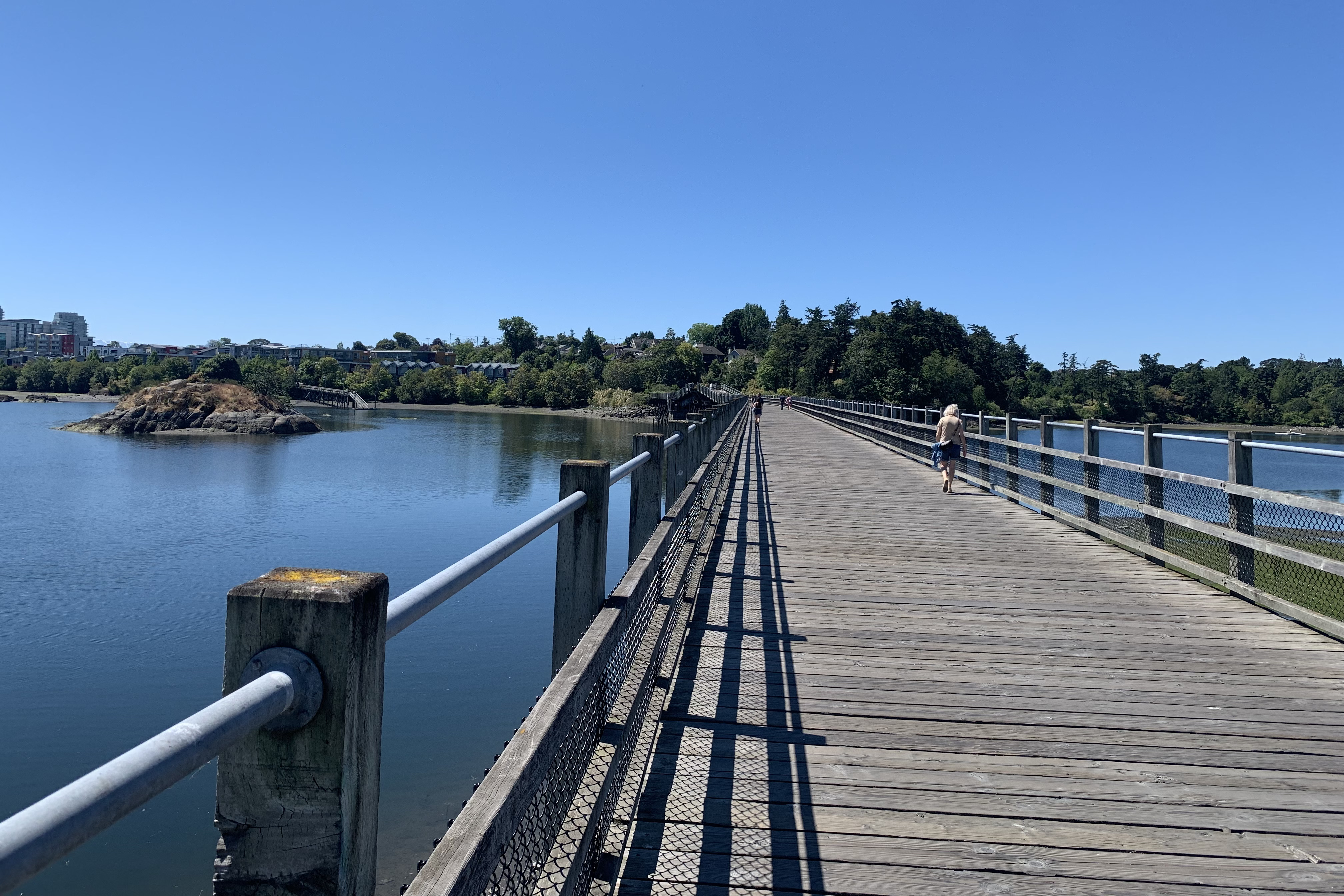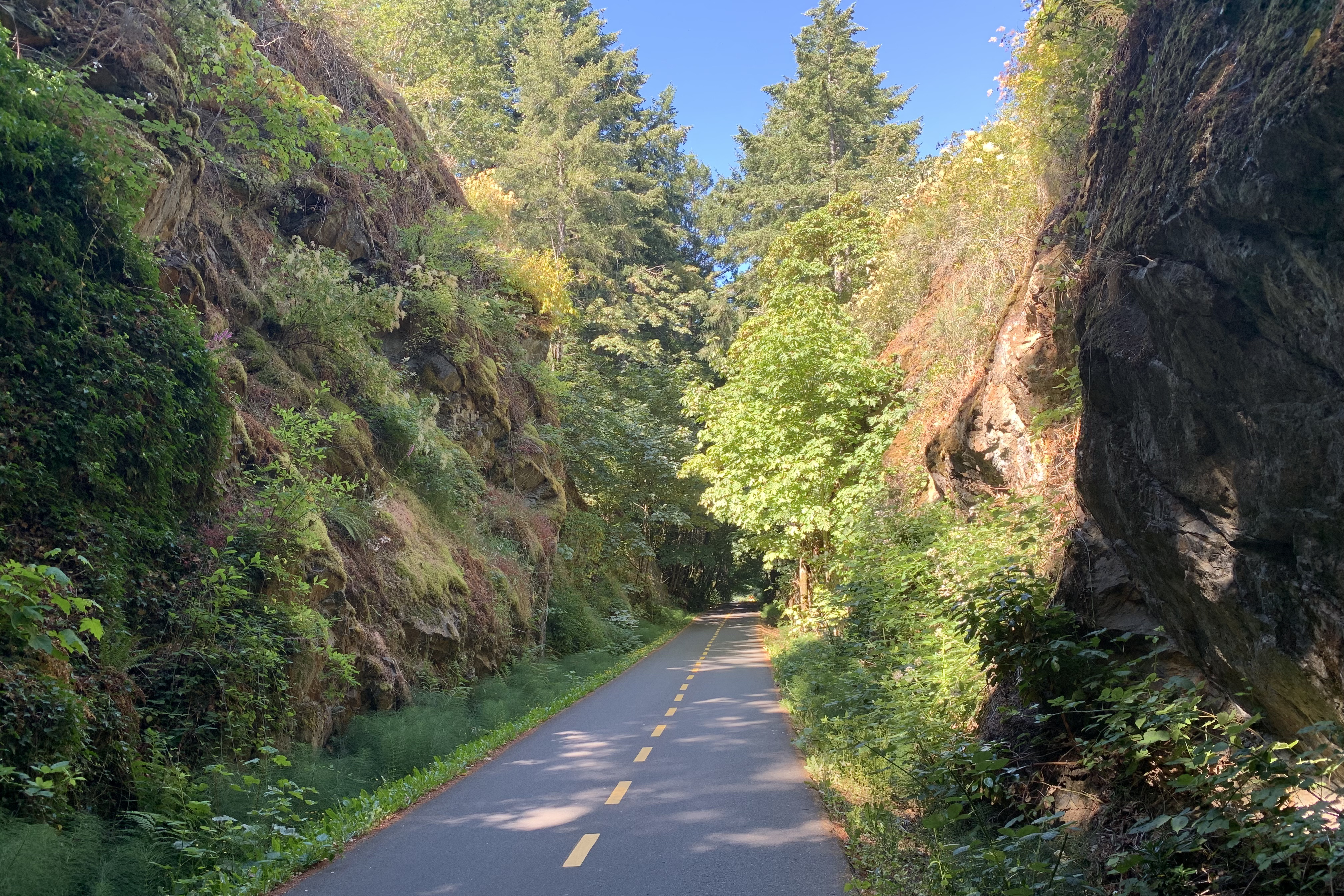 I turned around after 9 miles and headed back but continued on to get more miles. At a fork in the trail, a sign pointed to downtown Victoria. and the Empress Hotel and Inner Harbor were just 3 miles away. Let’s go!