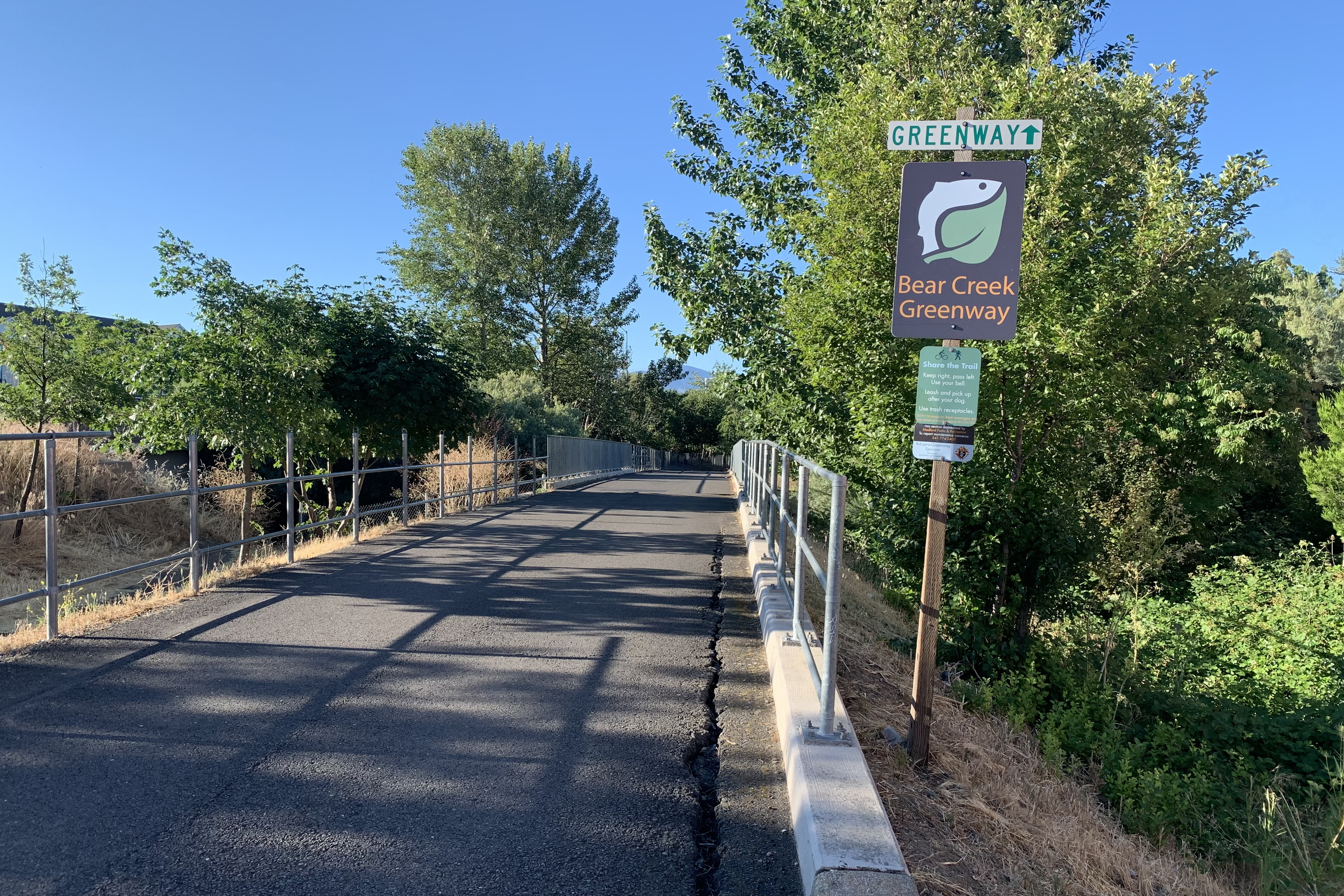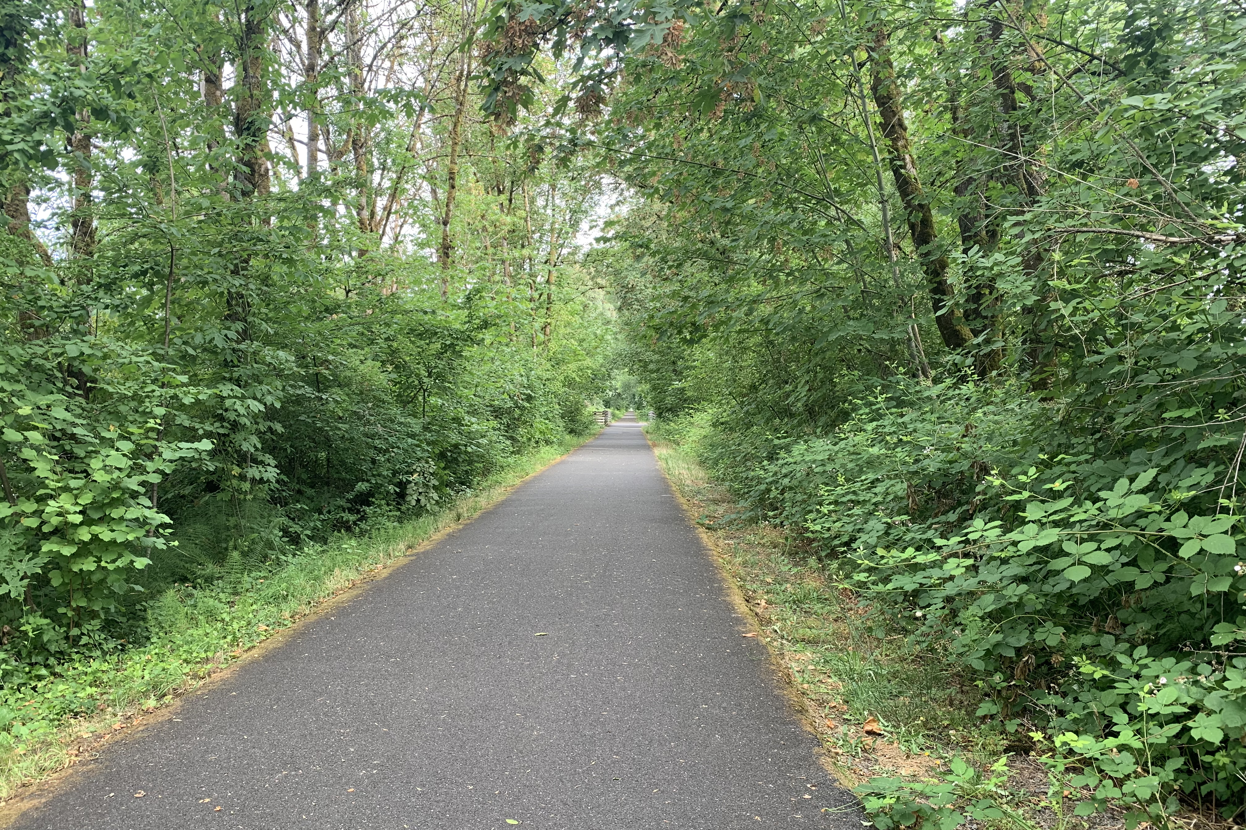 The trail ran along I-5 with periodic glimpses of Bear Creek.