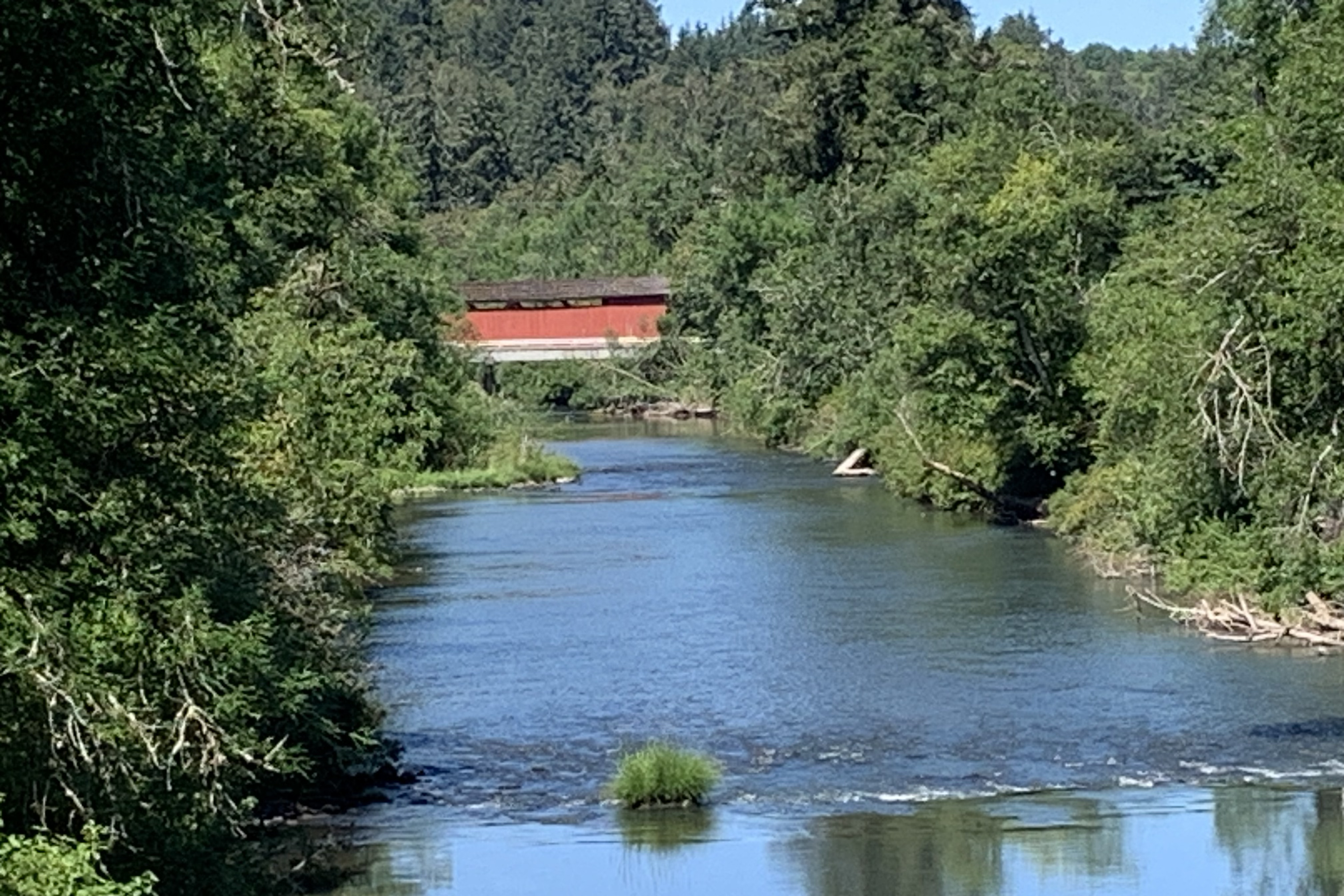 As I crossed this trestle, I looked to the right and spotted one of Lane Counties famous covered bridges. Lane County has the most covered bridges on this side of the Mississippi River.