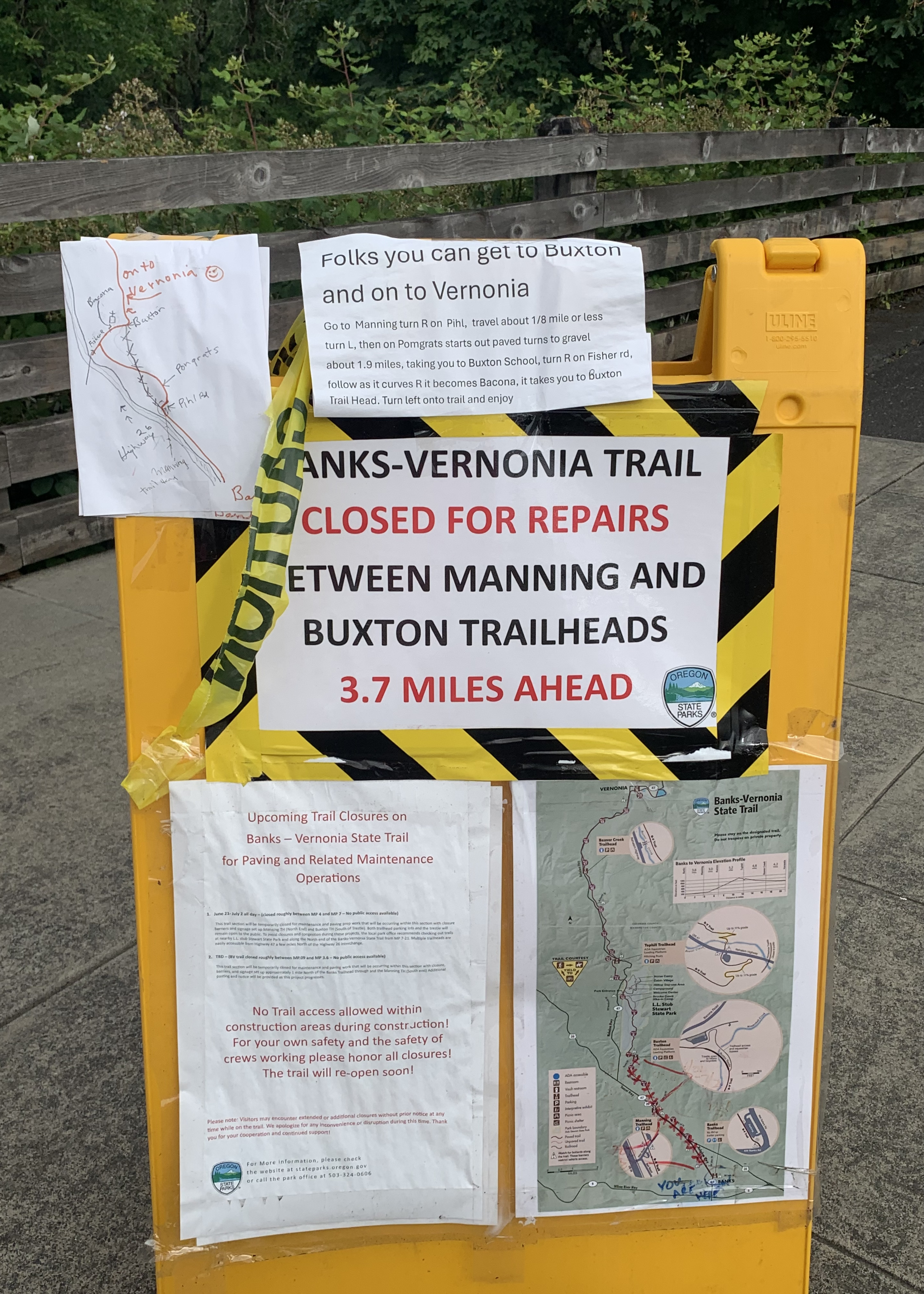 When I got to Manning, the barricade had been moved slightly. I could see hikers and a cyclist up ahead. Ok, time to see if I can get through. I talked to a couple of cyclists riding toward me, they said the work crew at the other end had waved them through. Cool!