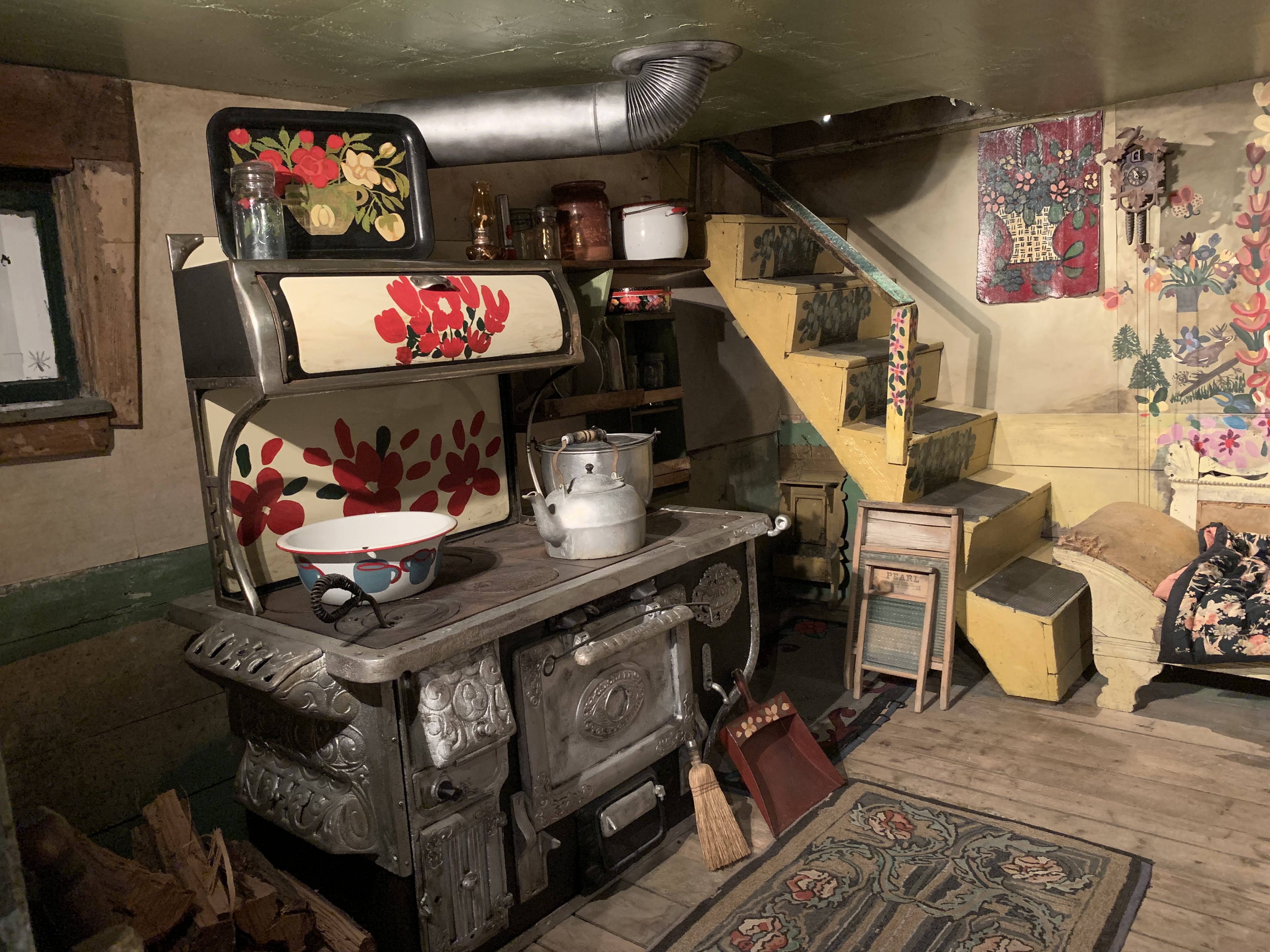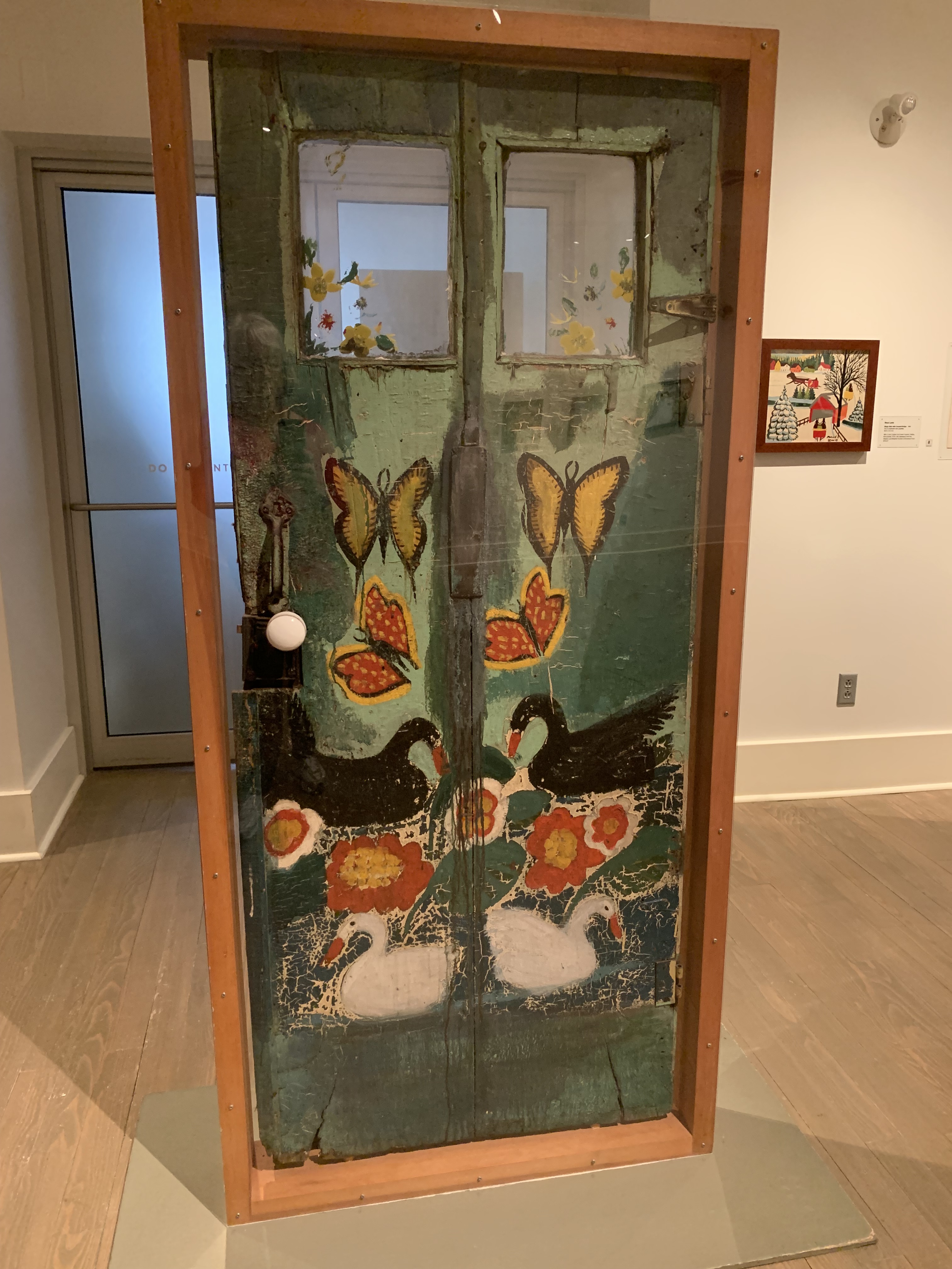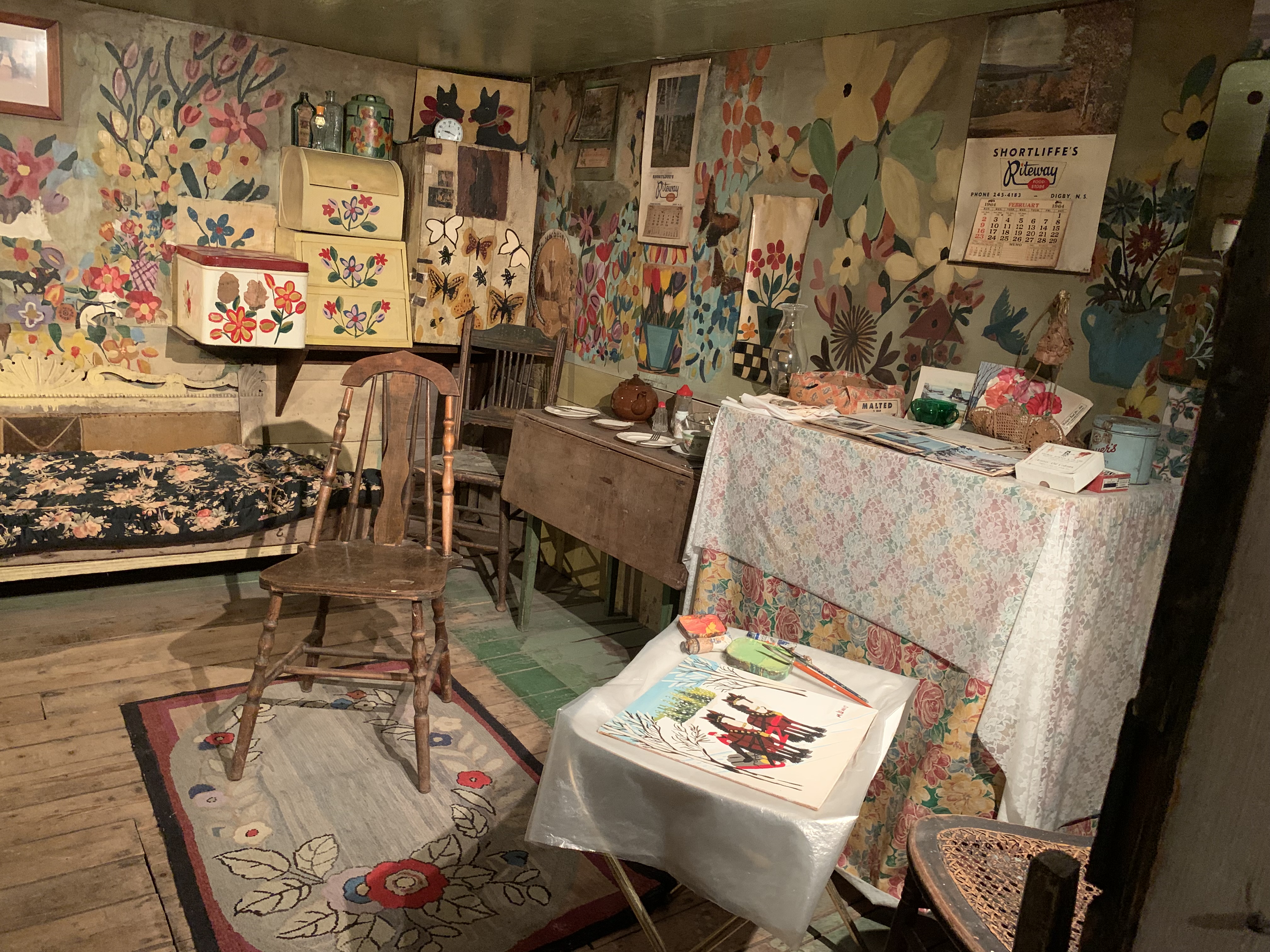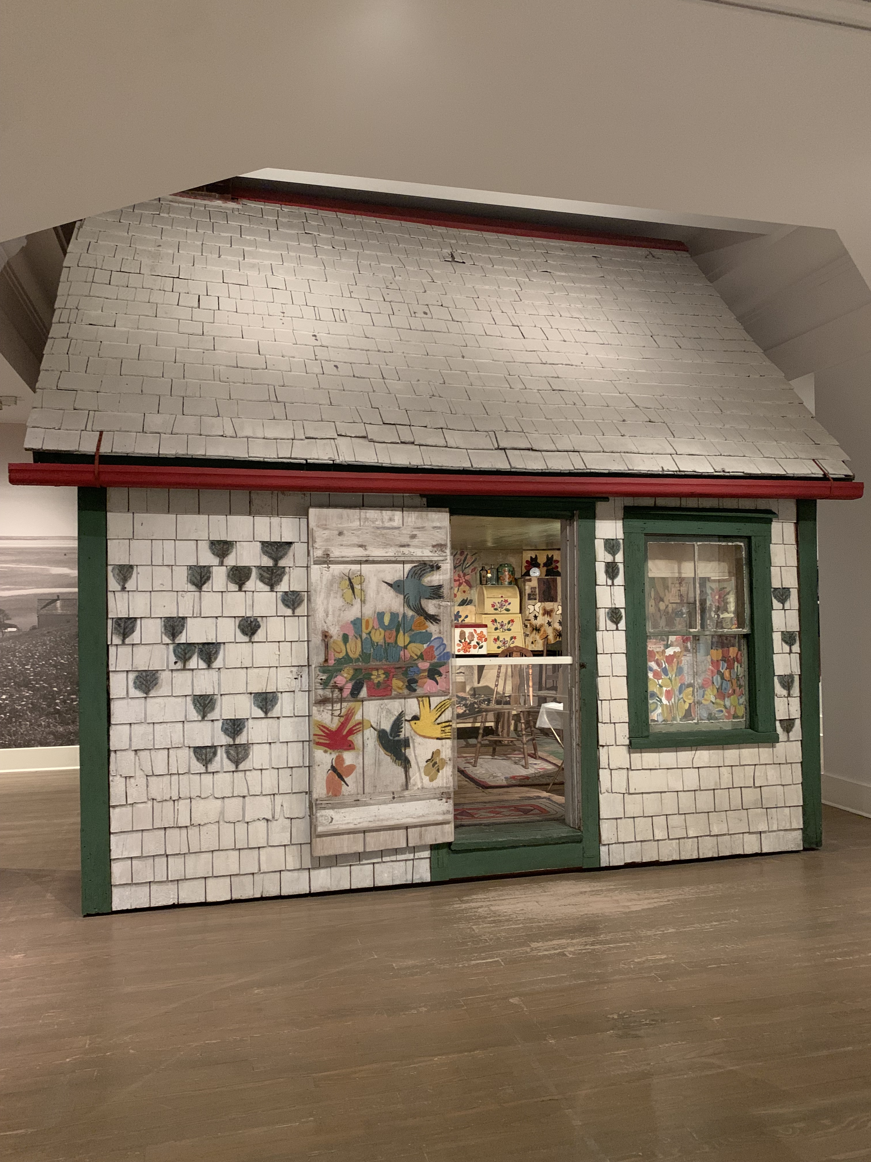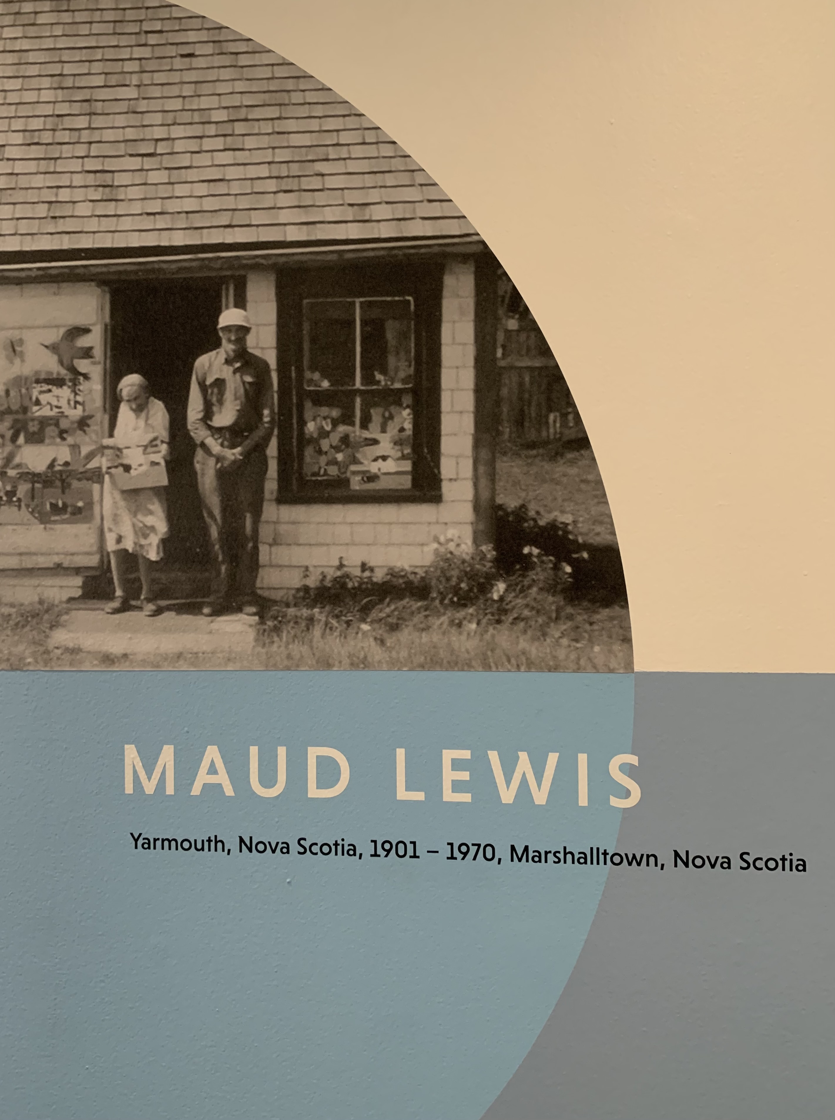 Background: in 2007, I rode my bike around the perimeter (minus a gap between Halifax and Yarmouth). In Marshalltown, I discovered a very small painted house referenced to Maud and Everett Lewis, but with no information. I was curious. Later I found a garment tag with some information which I copied into my journal word for word. There was an exhibit at the Art Gallery of Nova Scotia. I didn’t get to the museum in 2007, today I accomplished that goal.