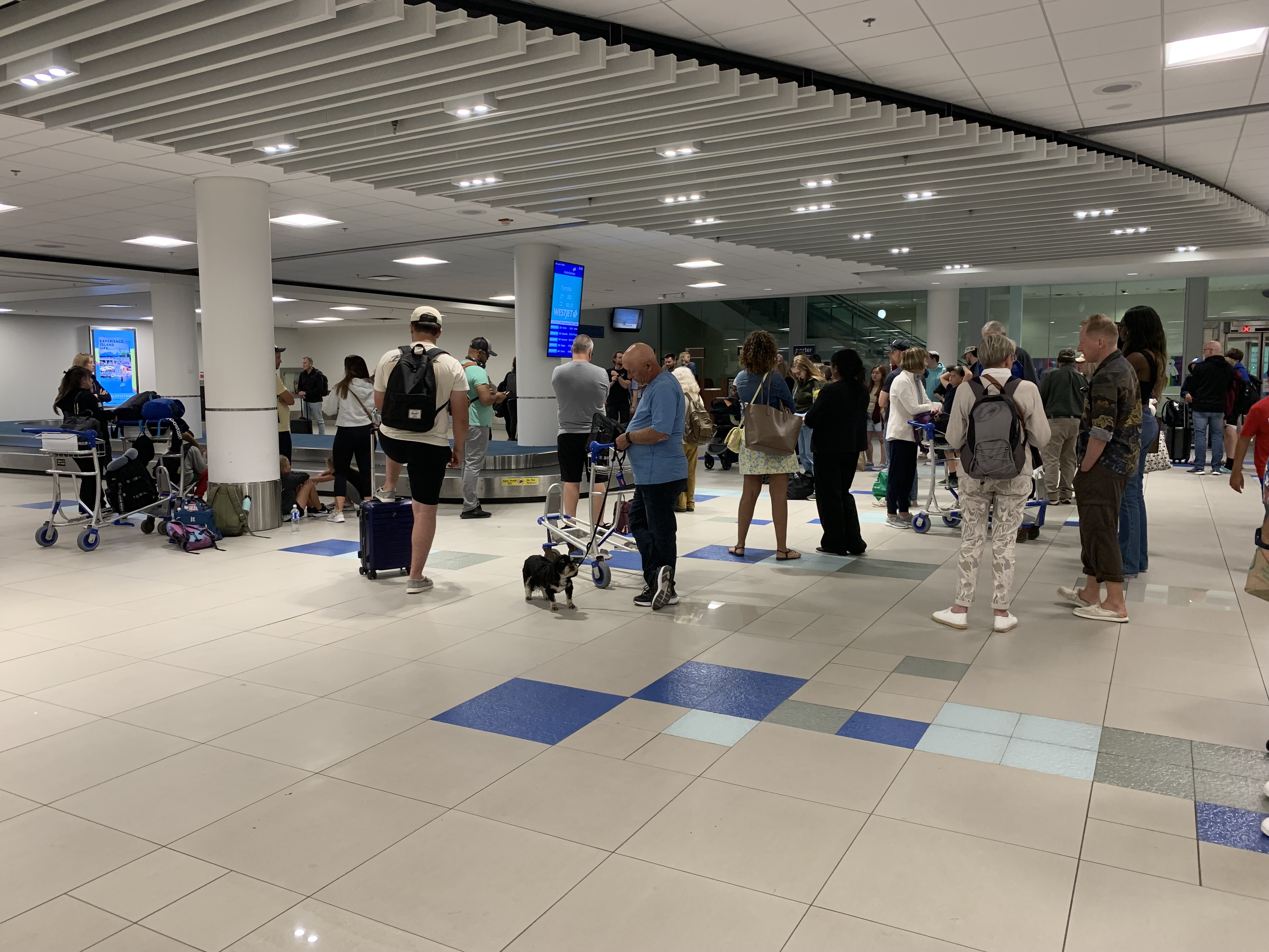 A long long day. Elaine took me to the airport at 3:30a, I changed planes in Salt Lake City and arrived in Toronto for the next layover. Then things went sideways. Lightning strikes in the afternoon had kept planes from leaving and arriving. We arrived at the end of the storm but had to wait two hours on the tarmac for a jetway to be available. The flight to Halifax Nova Scotia left 6+ hours late. A lot of grumpy tired people waiting for their bags: