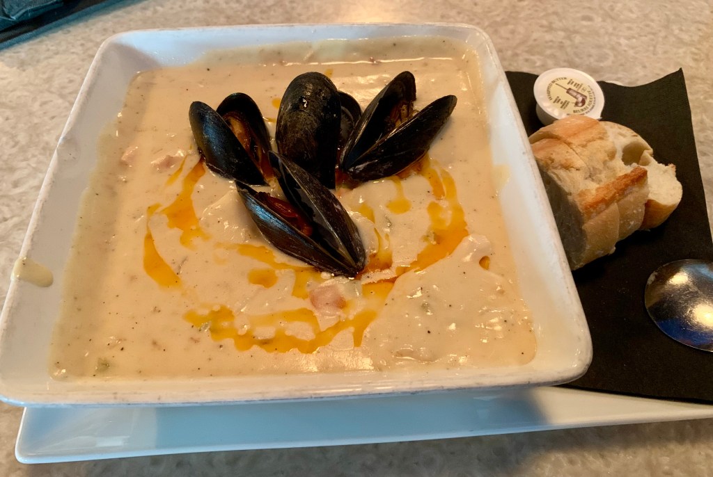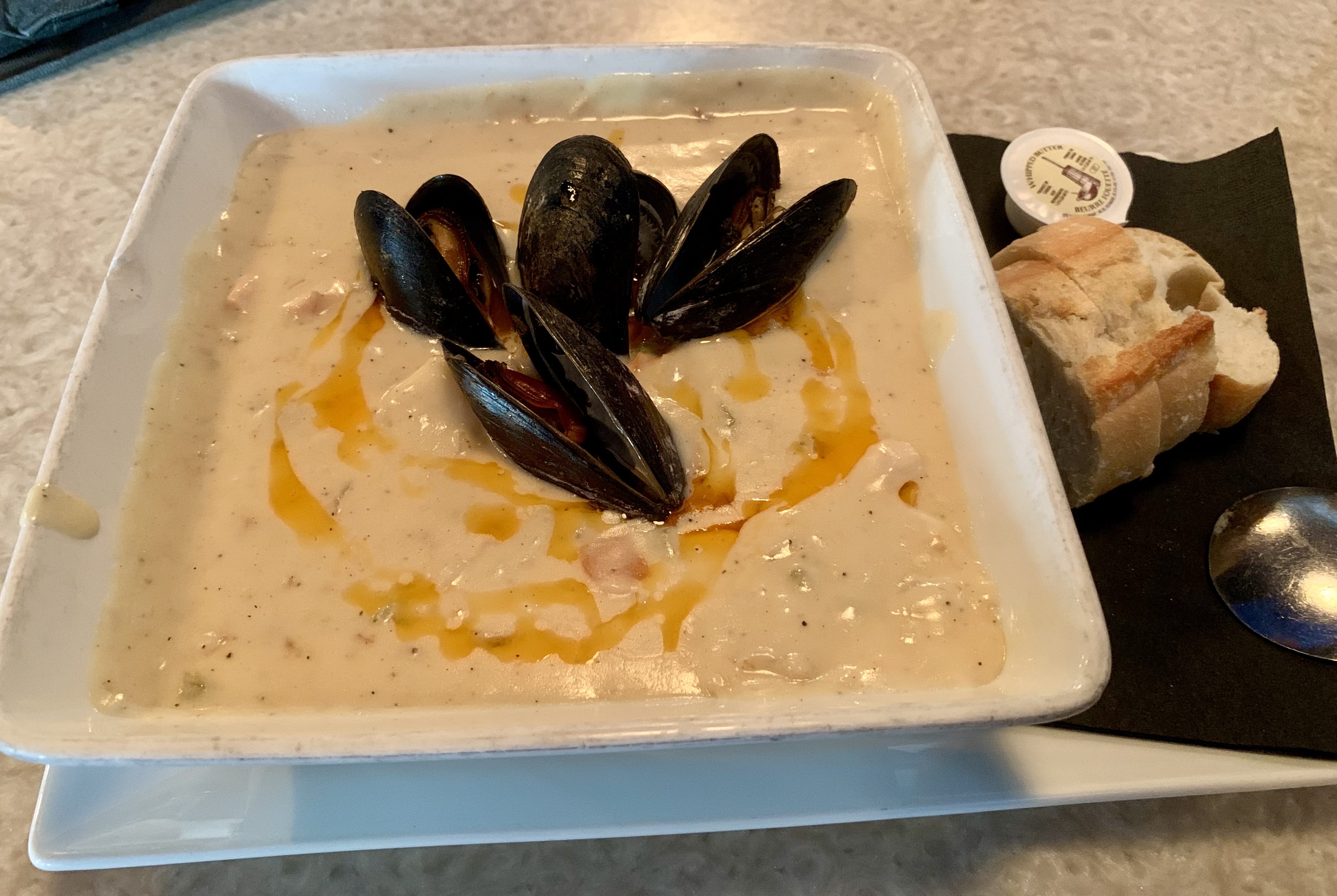 I was able to check into my hotel early and walked to a nearby restaurant for some excellent seafood chowder, drizzled with chili oil and topped with mussels.
