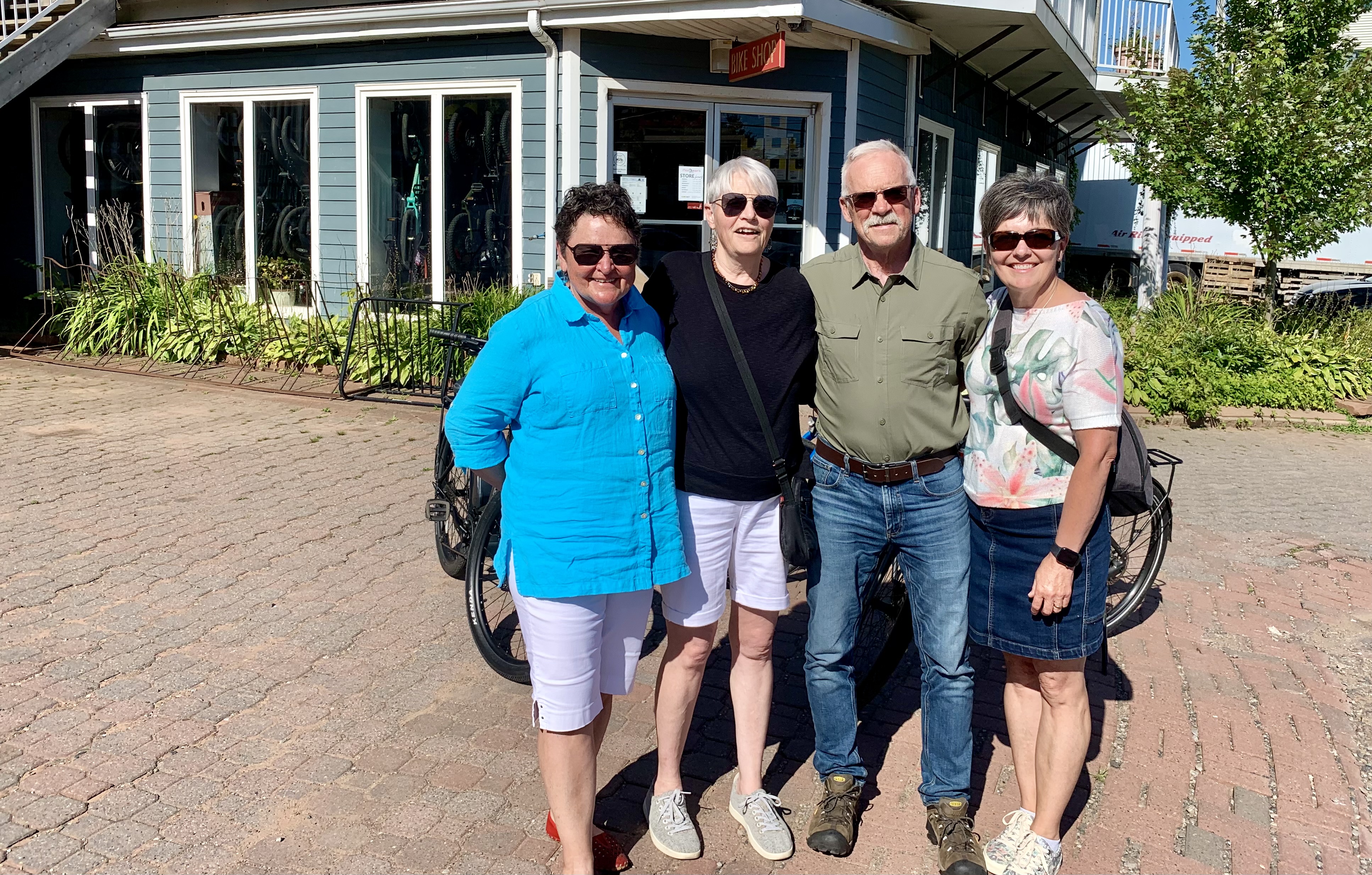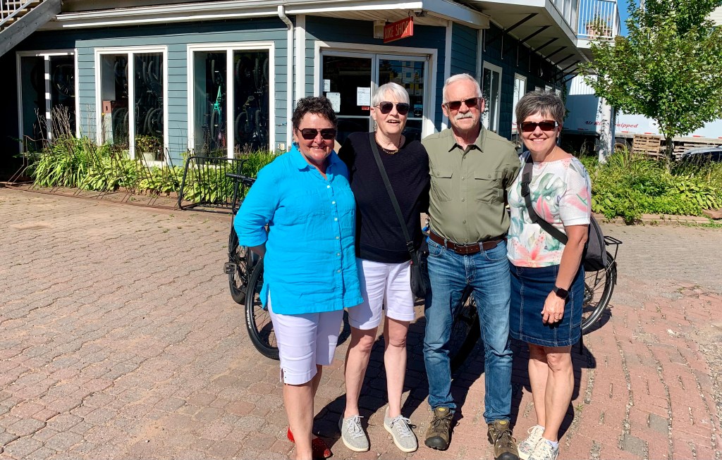 Later, I walked to MacQueen’s Bike Shop and met Ruth and Brenda, Reg and Juliann. Ruth and Juliann are sisters and my cousins. All live in Saskatchewan, however Brenda grew up on PEI which makes her an excellent guide.