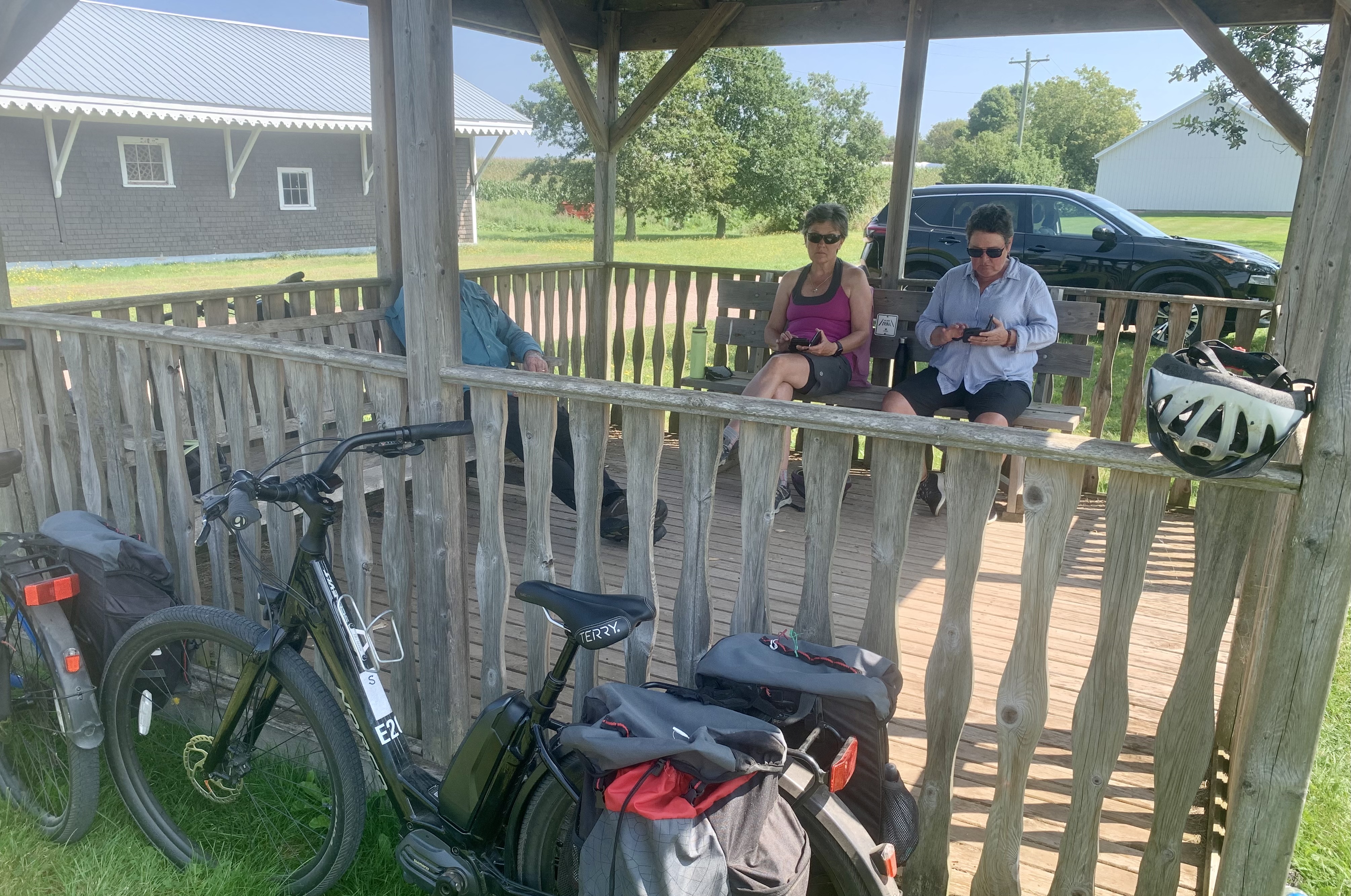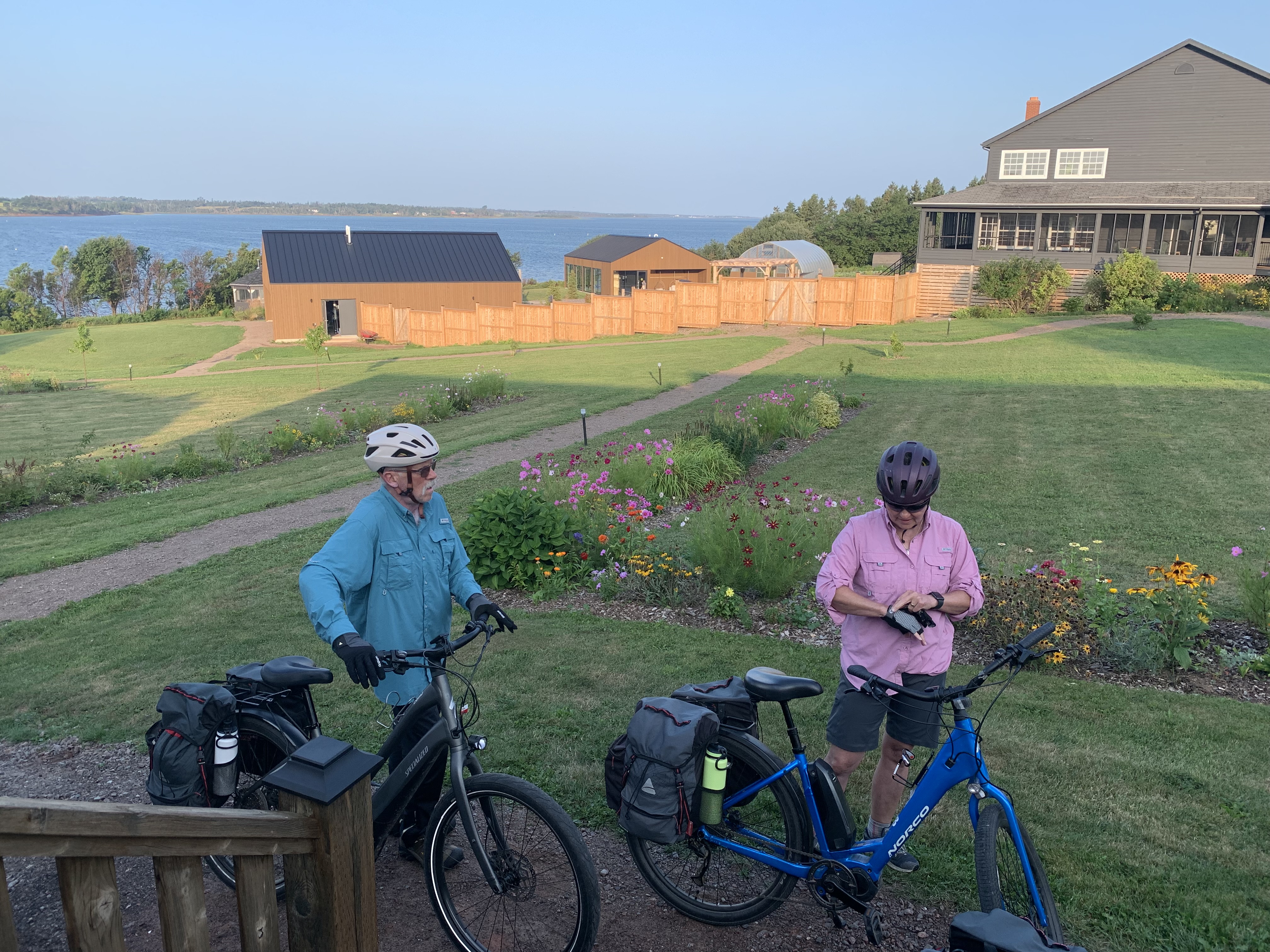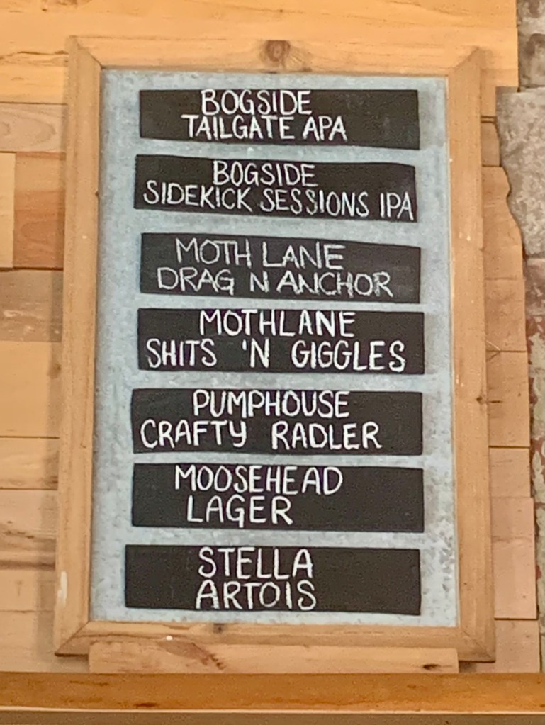 We rode to MacQueen’s to drop off our bikes and panniers. 39 miles – yes, we were all tired. Brenda picked us up and we went to dinner at The Pilot House. Hmm, which beer should I have? Fourth one down made me laugh.