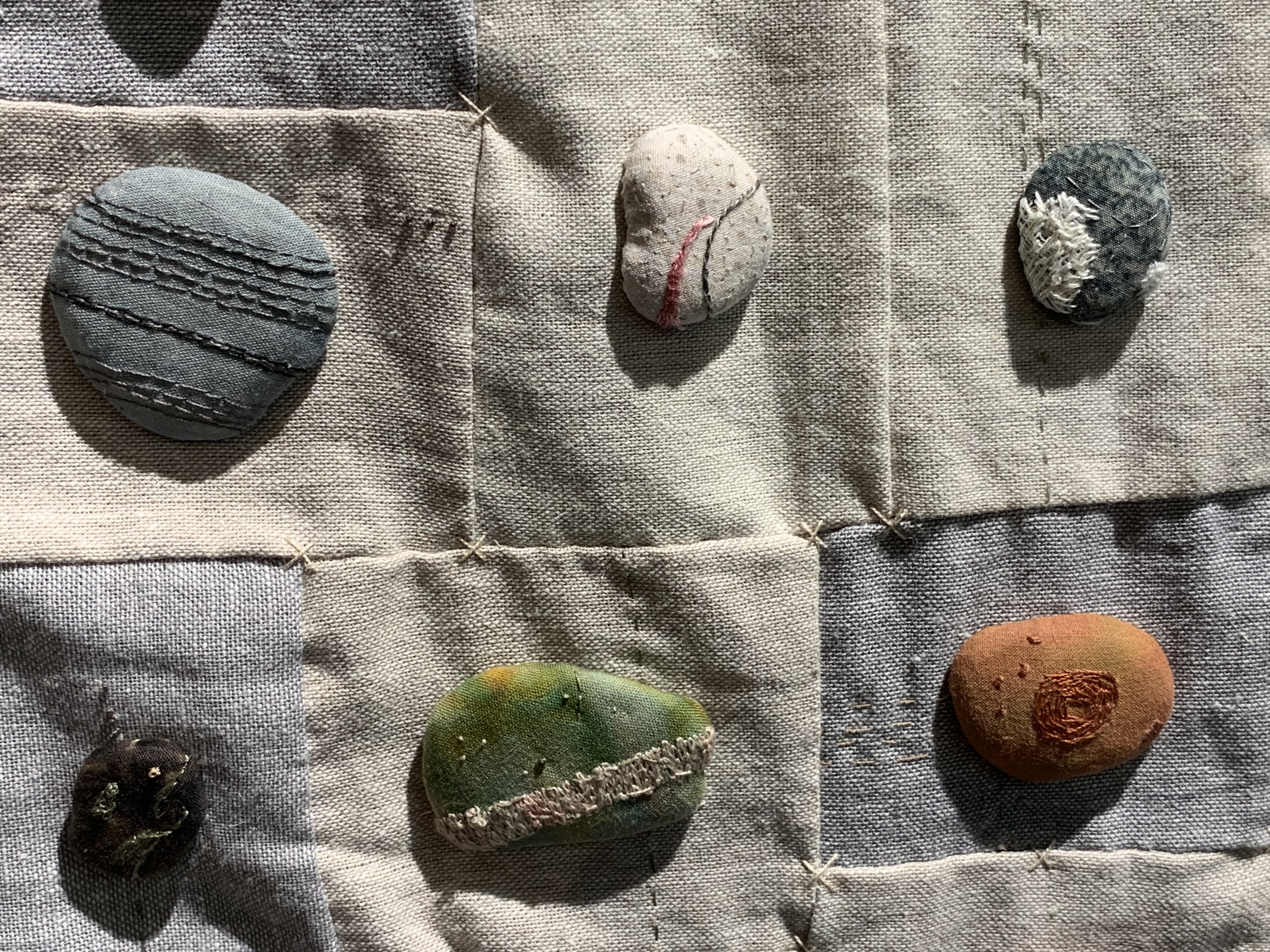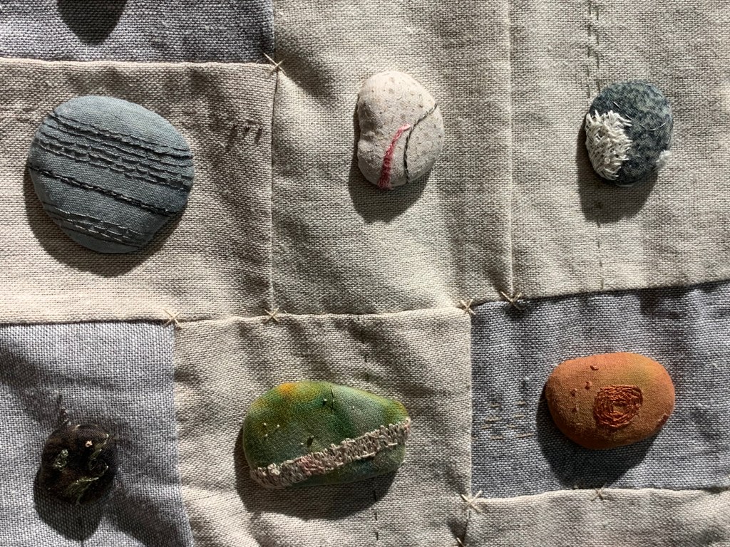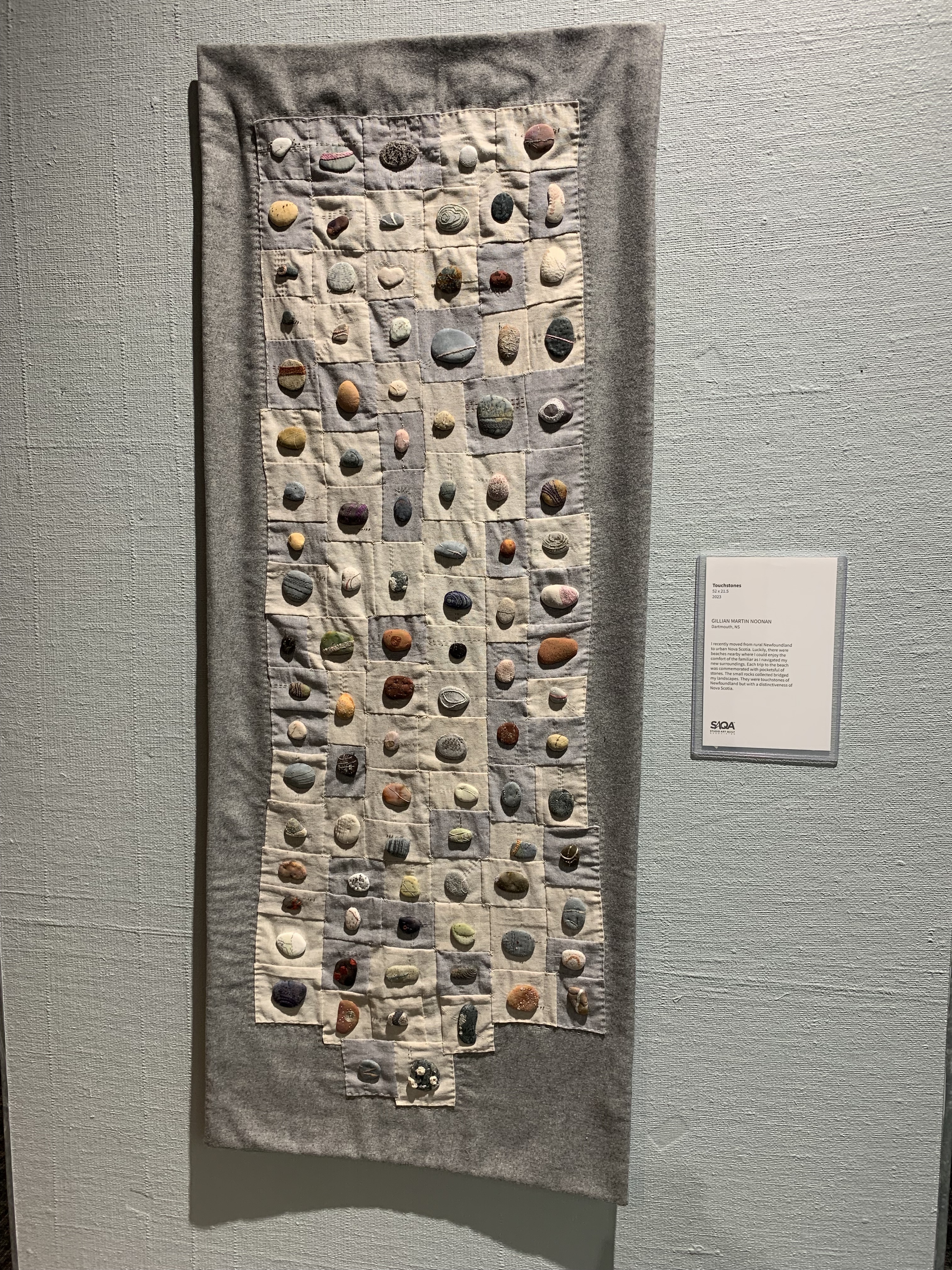 The quilts were a curated collection of unique designs. From a distance, this one looks like stones gathered on a beach.