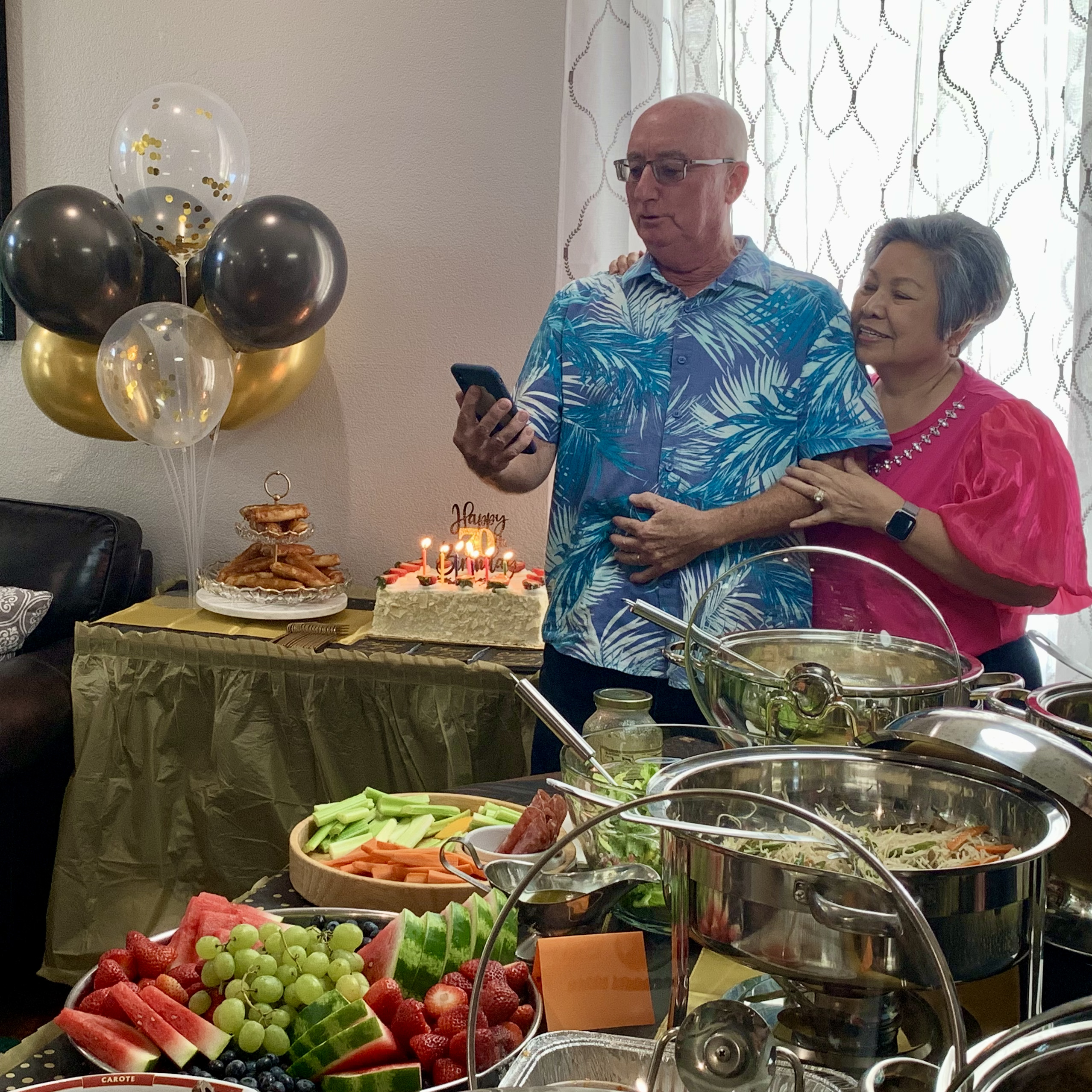 Paul, with wife Emmy, gave a short thank-you speech before the cake was cut. Emmy made the most delicious spread of food, including a couple of my favorites: lumpia and pancit.