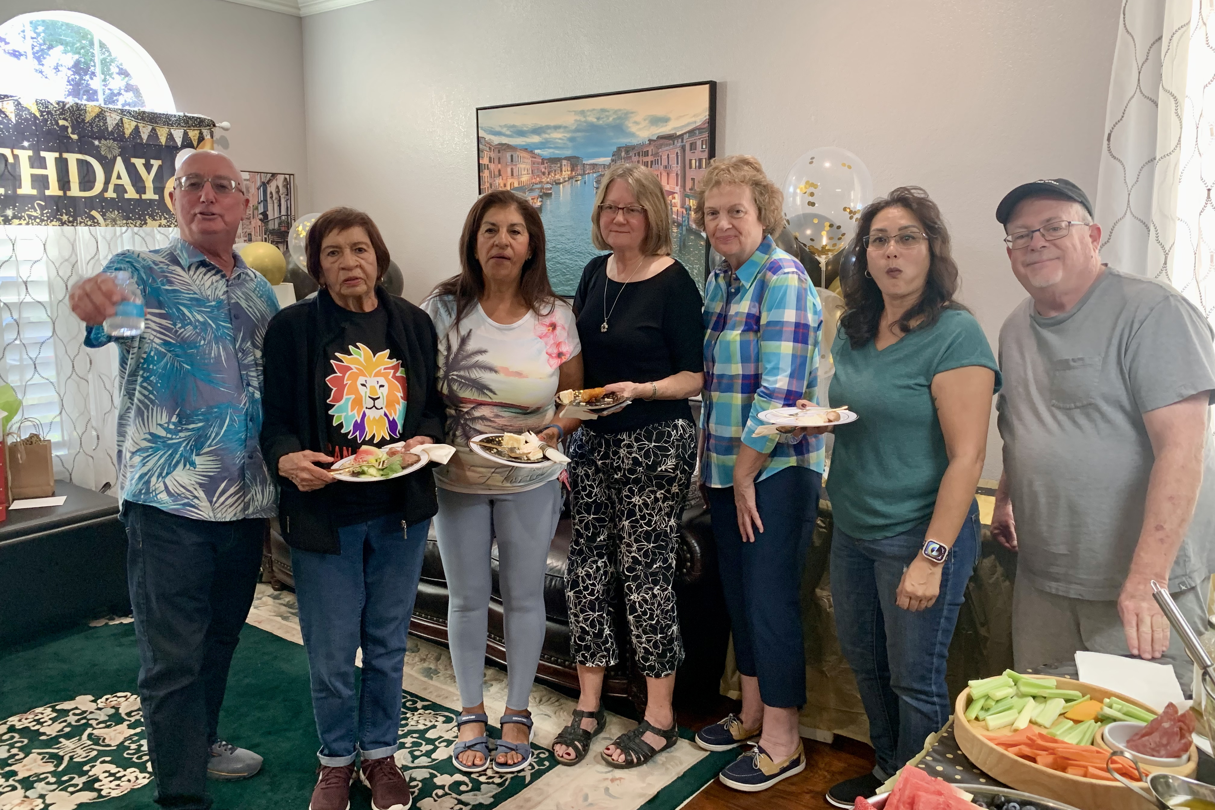 One of our bike buddies – Paul – had a 70th birthday party. Paul, Edith (Brenda’s mother), Brenda, Laurie, Martine, Lori, Jim:
