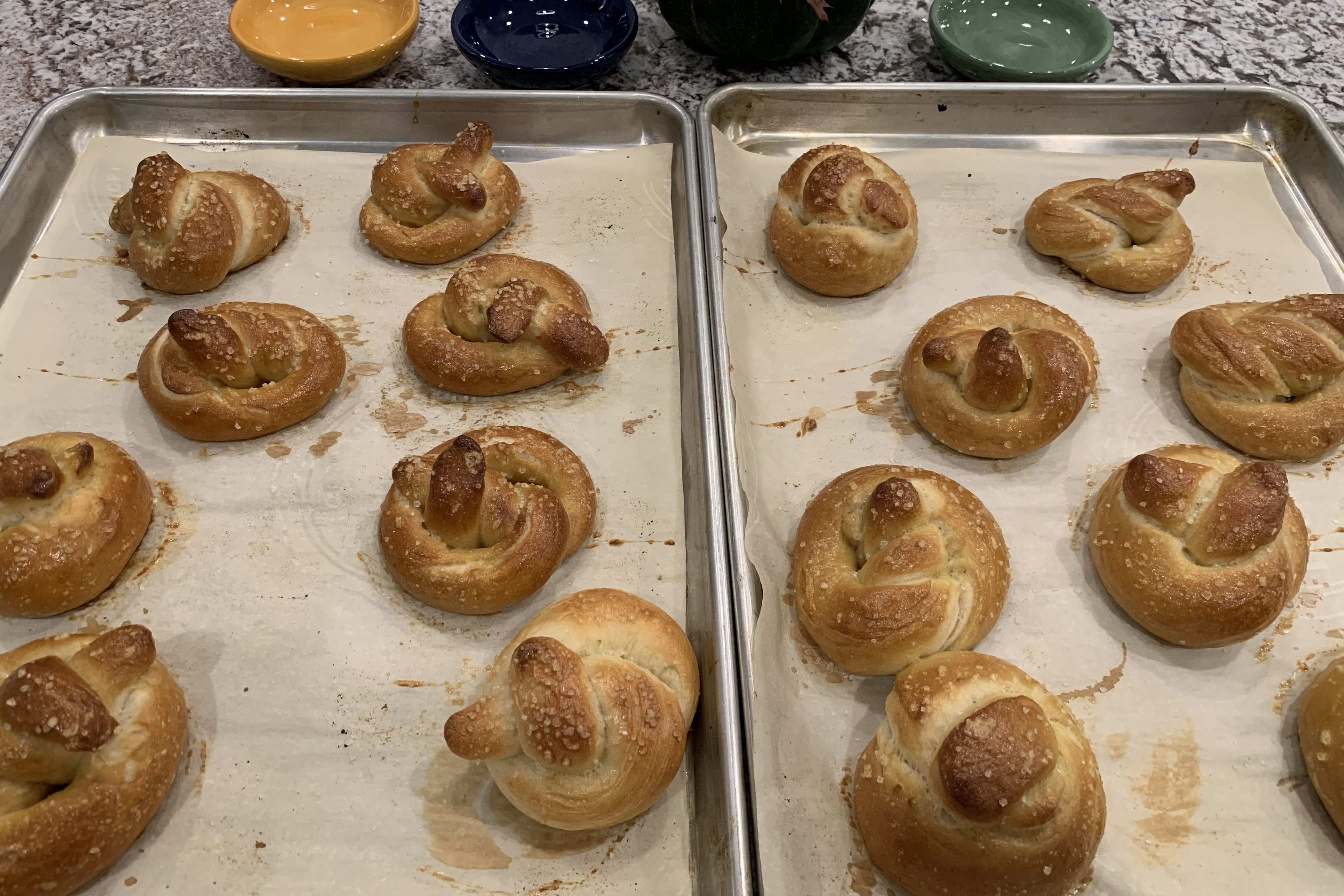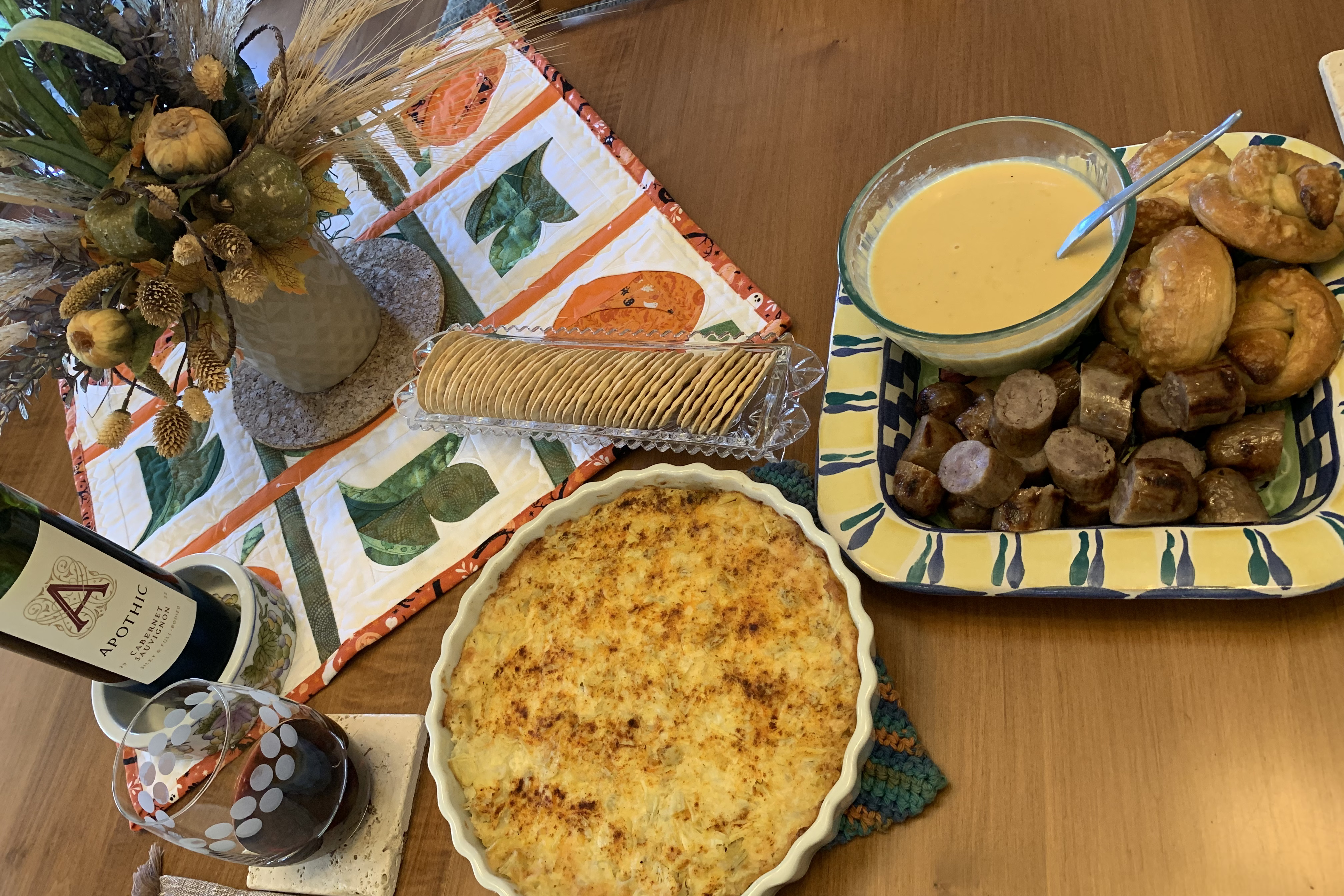 Wednesday: Thursday @ Merrilyn’s. Pretzels with beer cheese dipping sauce and grilled brats, artichoke dip with crackers .. and wine.