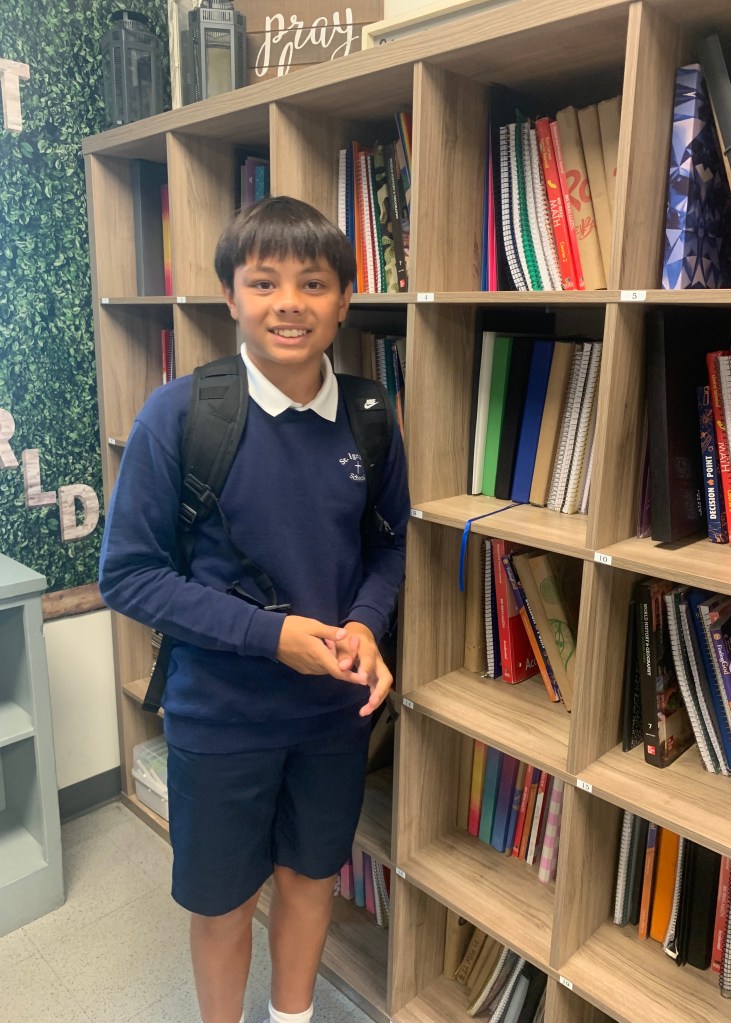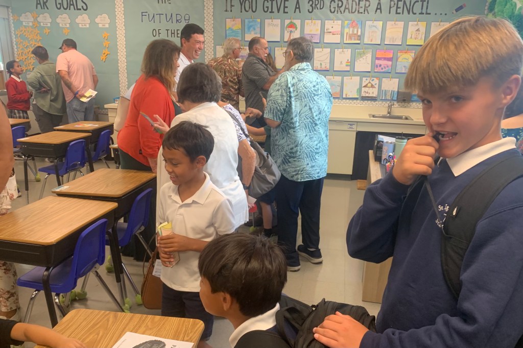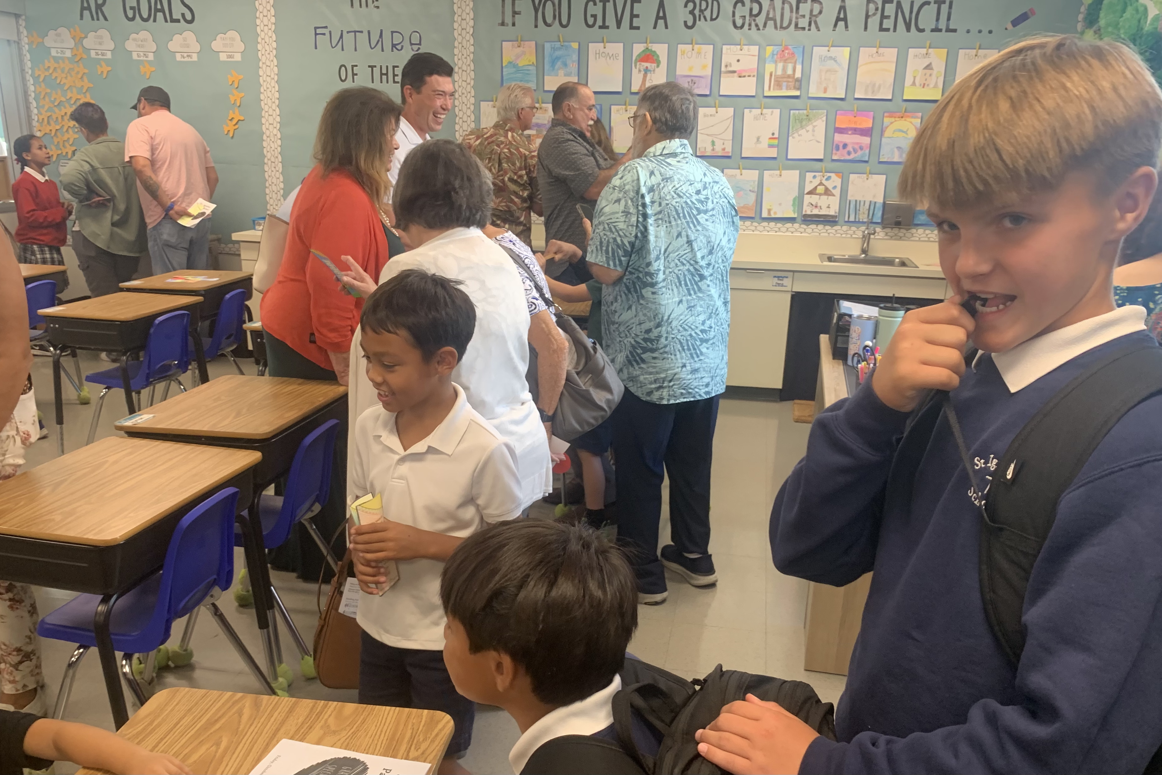 Afterwards, we visited classrooms. Avery, 7th grade. This class works at tables, students have a cubby to keep their books and supplies.