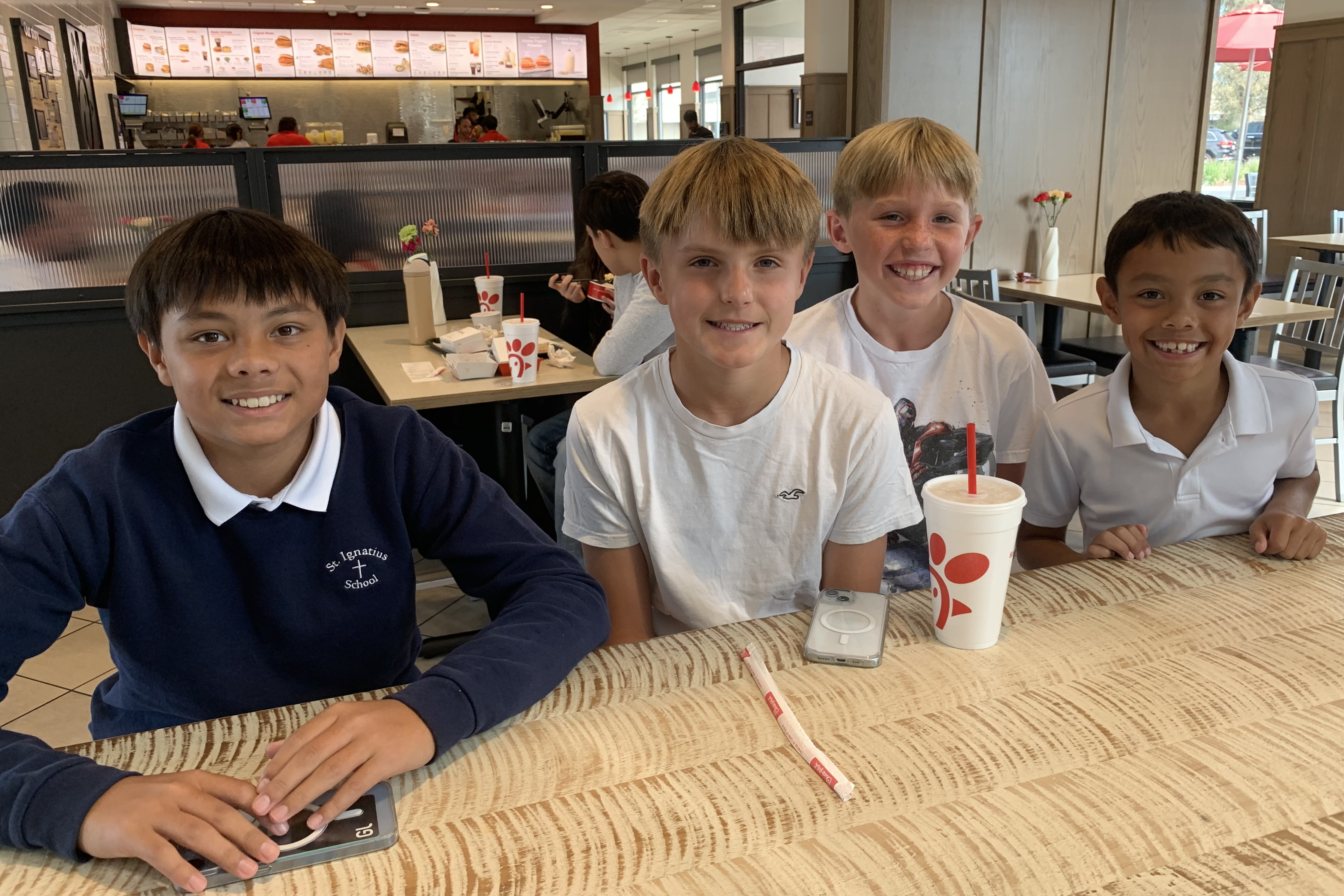 I was able to check out the boys early and we went to lunch at their chosen restaurant: Chick-fil-A. A couple of their friends came with us, Grayson and Hudson.