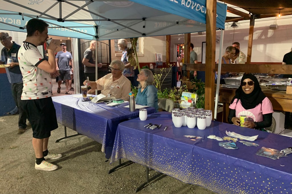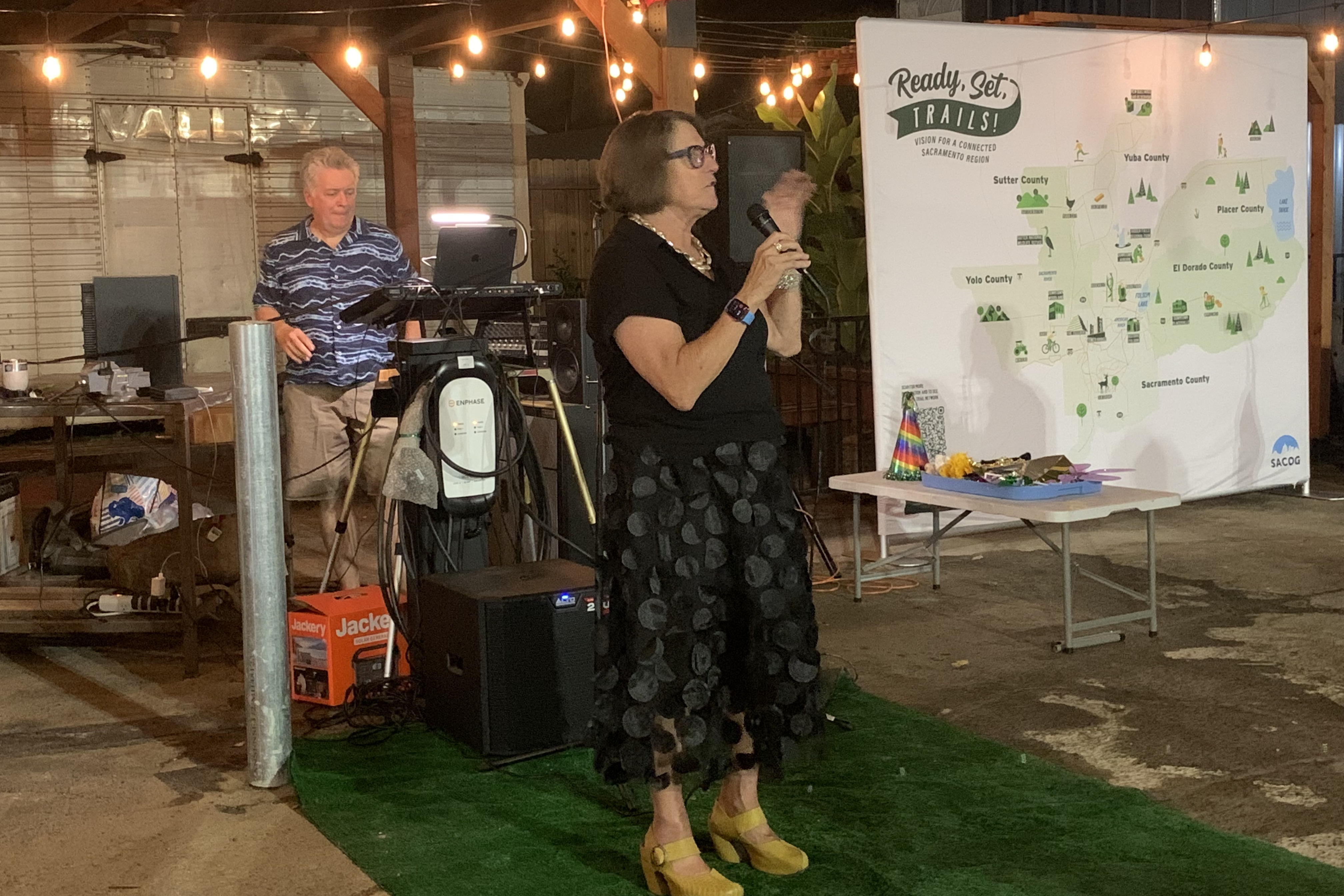 Sacramento Area Bicycle Advocates – SABA – held its almost-annual Velo Ball tonight. I was gifted a couple of free tickets and – yay – BarbaraL and Laurie came along.