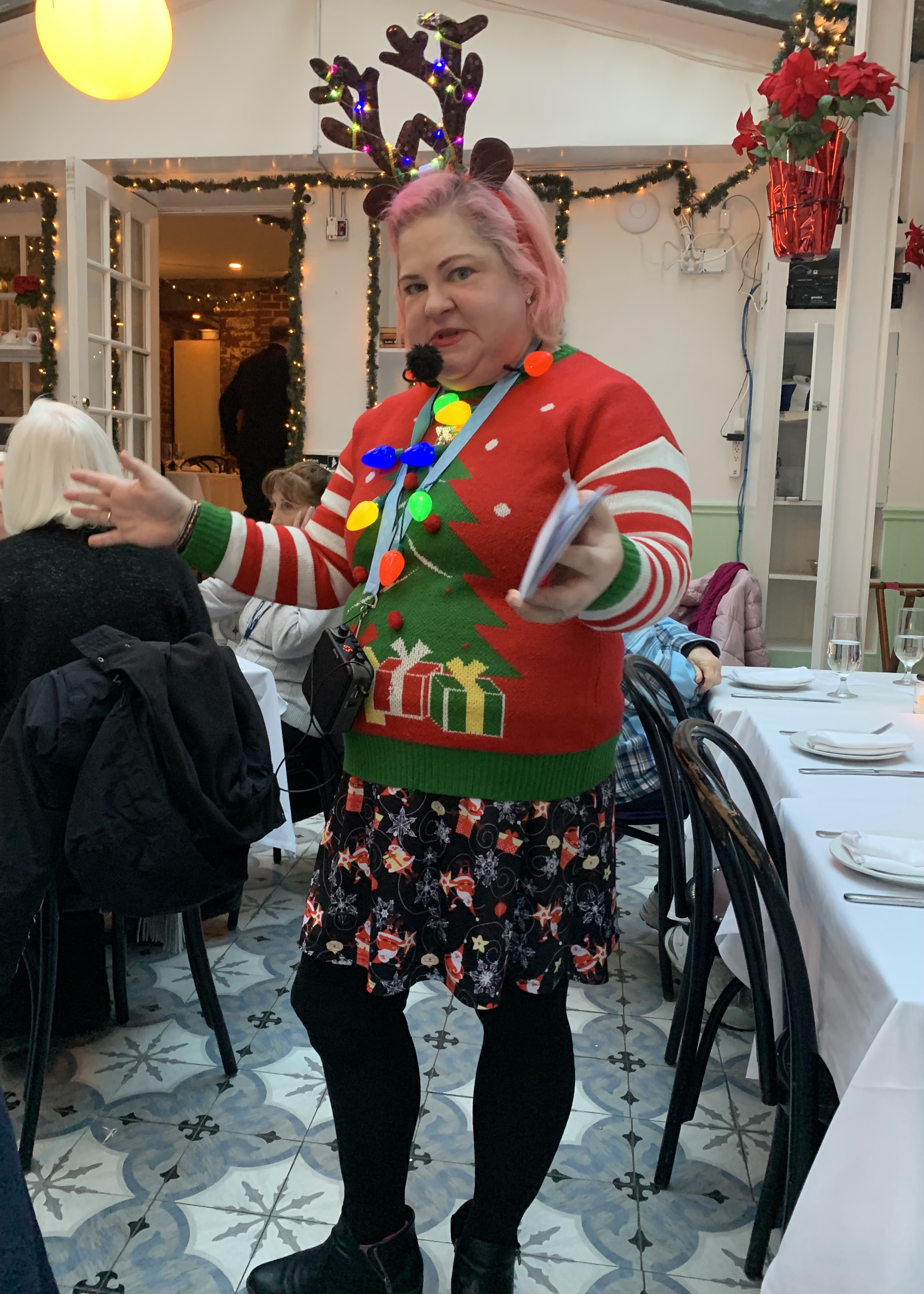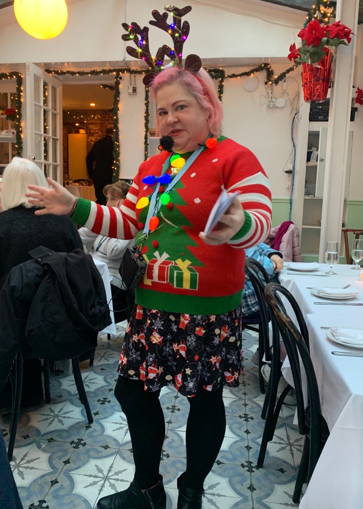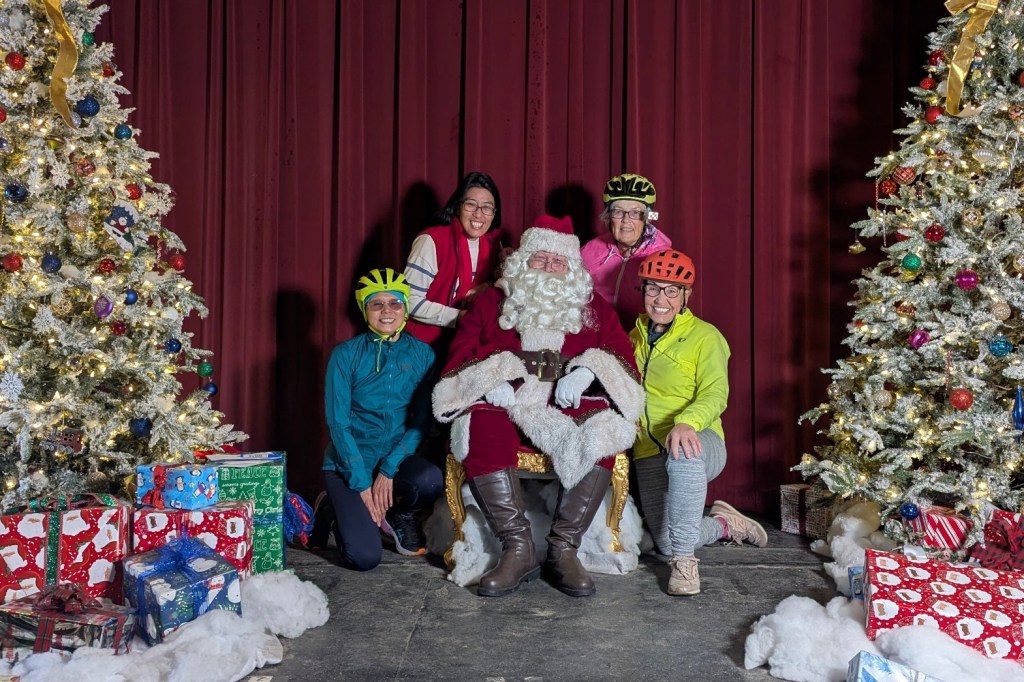 So much fun. BarbaraL is Santa’s helper at the Eagle Theater in Old Sacramento and she is able to let us in to see him a bit earlier than the general public. Such a cool perk! BarbaraB, Cheryl, Maria and I rode to Old Sac and had a delicious hot chocolate before arriving at the Eagle Theater at 3:00.