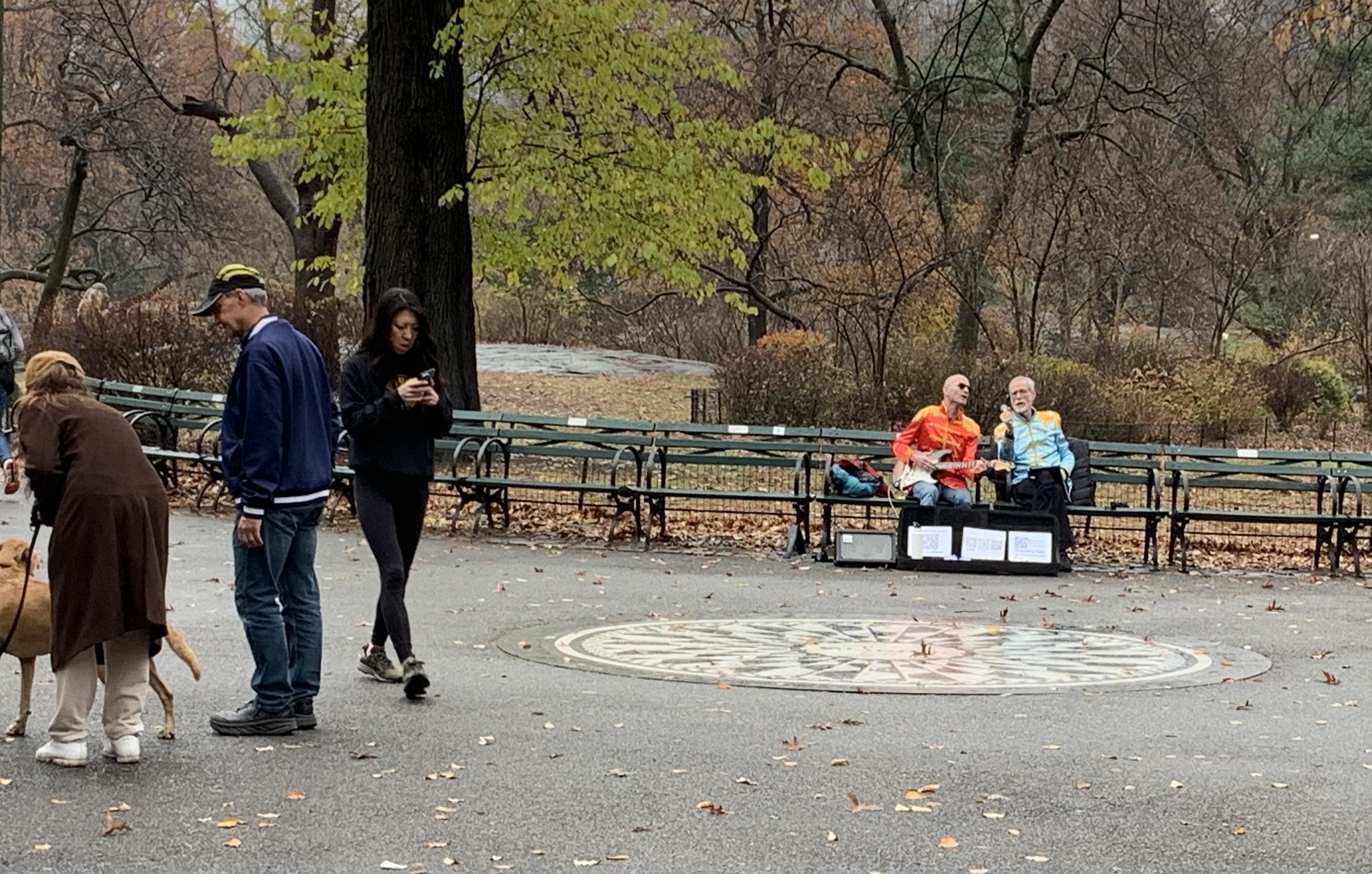 A stop at Central Park near Strawberry Fields where two guys were singing Beatles songs.