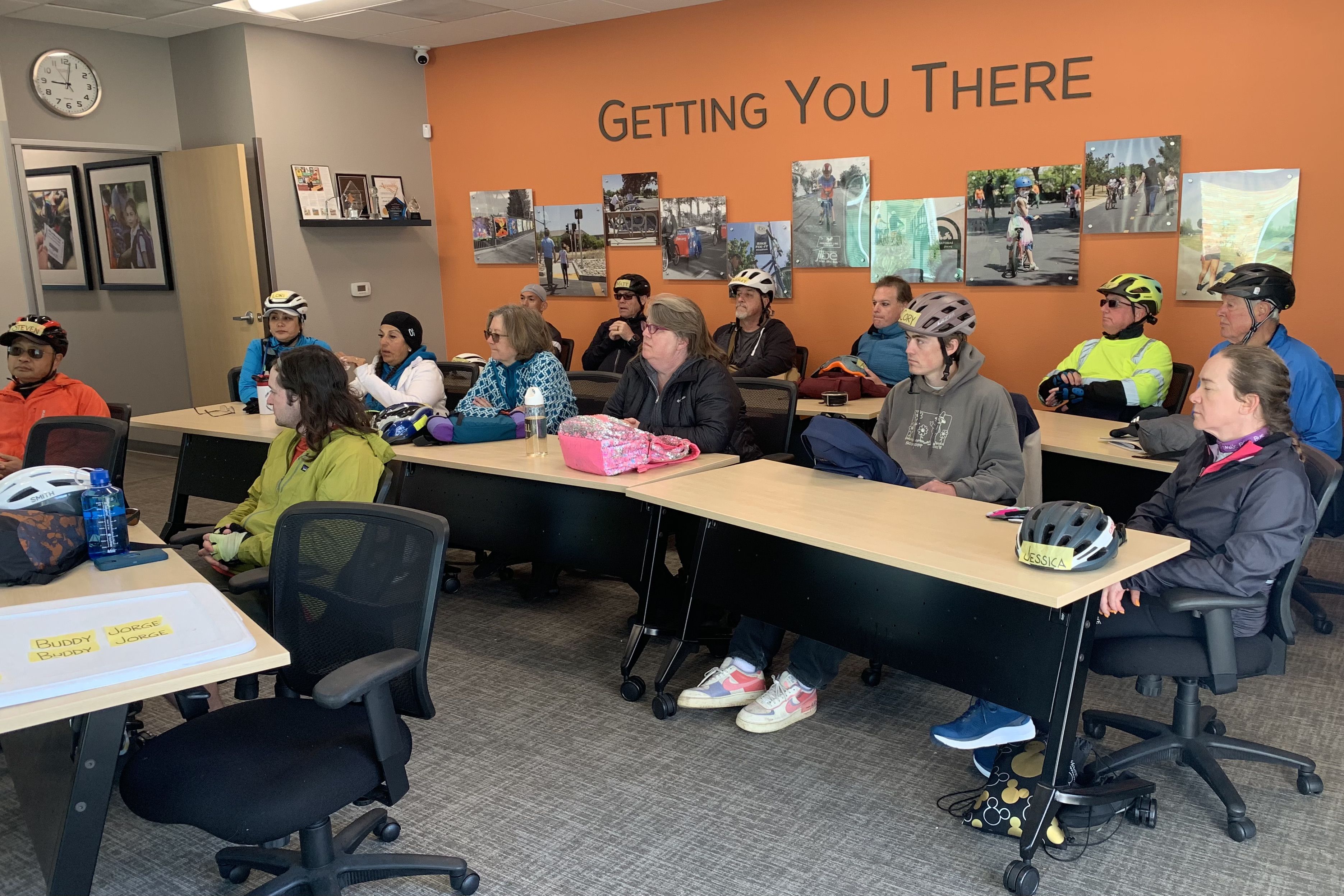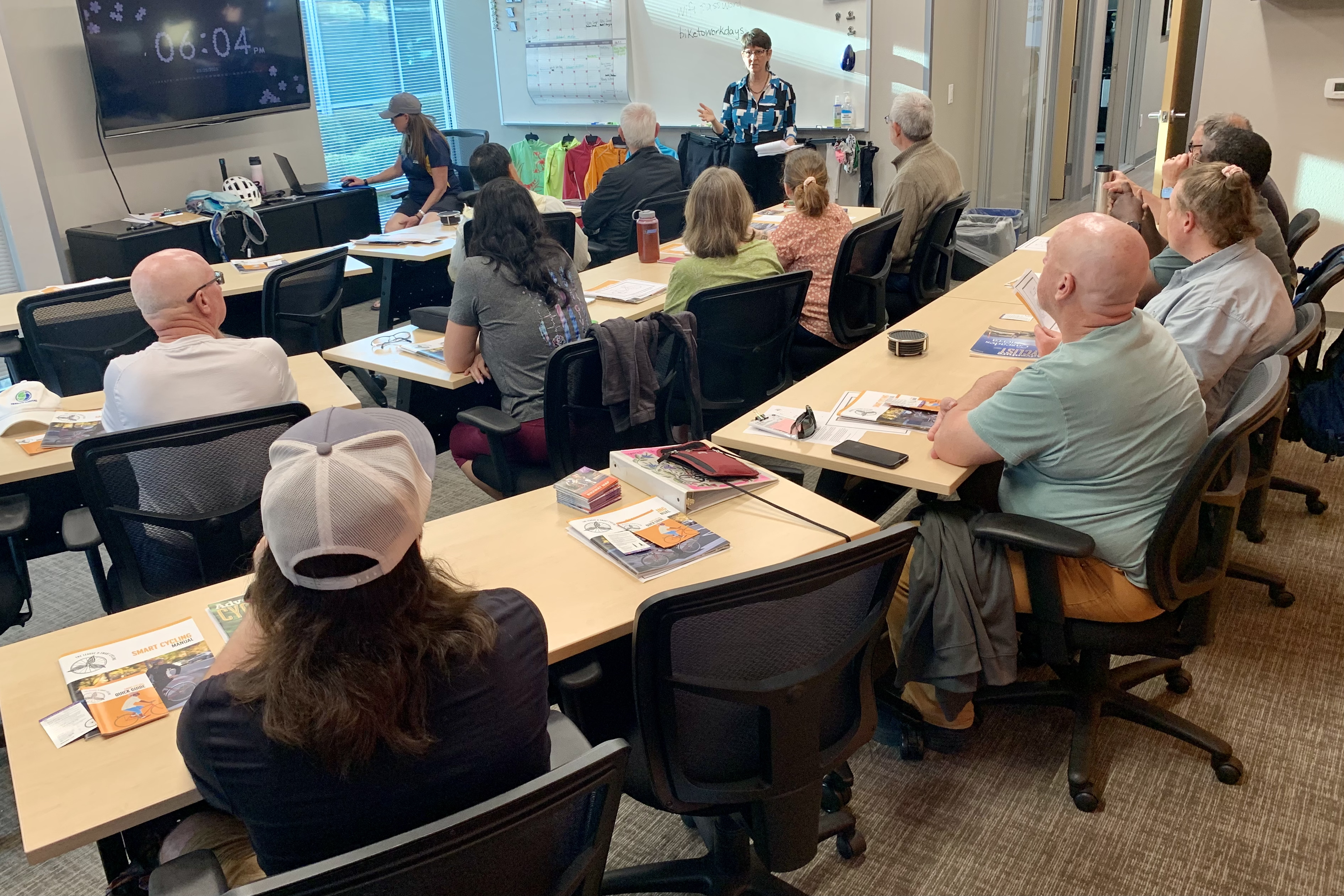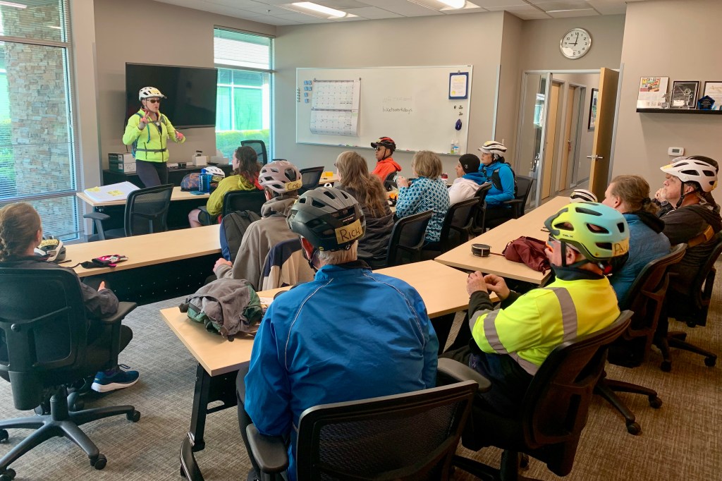 Gina taught a 3-hour Smart Cycling class this evening at the Jibe office. Some of the attendees are on a path to become a League Cycling Instructor. Some are ride leaders for Jibe’s Navigate Natomas rides. It’s been more than 11 years since I took this class so this refresher was good. Plus, Gina and I will be assessing bike handling drills and street riding skills next Saturday for second part of the class.