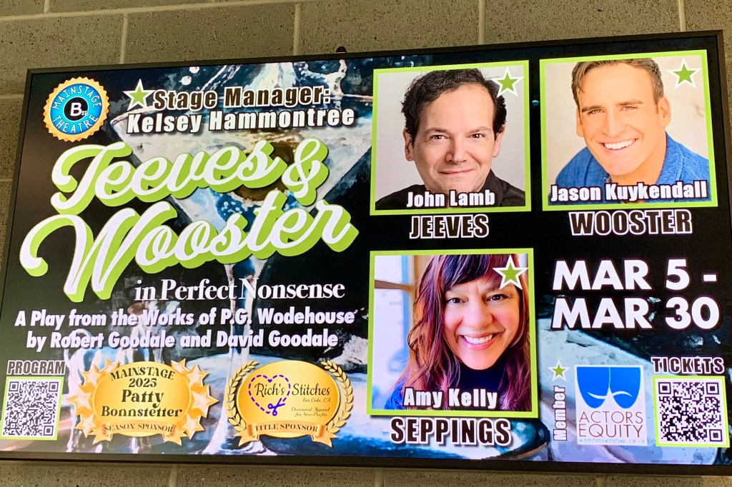 Jeeves and Wooster in Perfect Nonsense. Sometimes I don’t appreciate a play until a couple of days later. This time, the skill of three actors performing so many different roles was pretty amazing even though I had a hard time following the story line. And I didn’t know Jeeves and Wooster was a British tv series in the early 1990s.