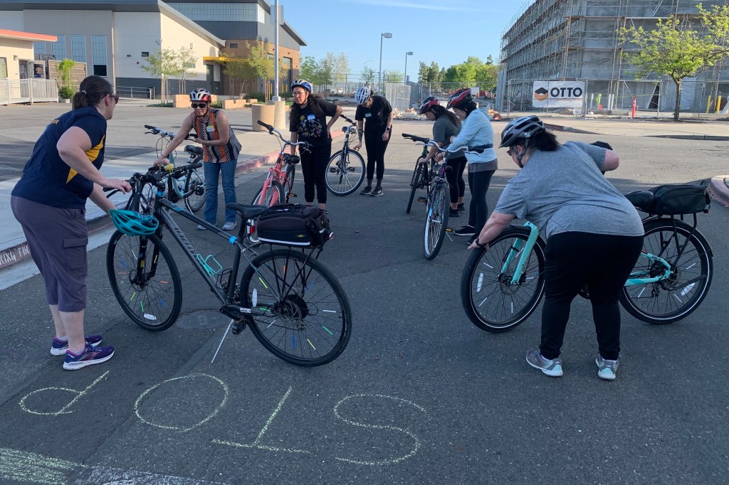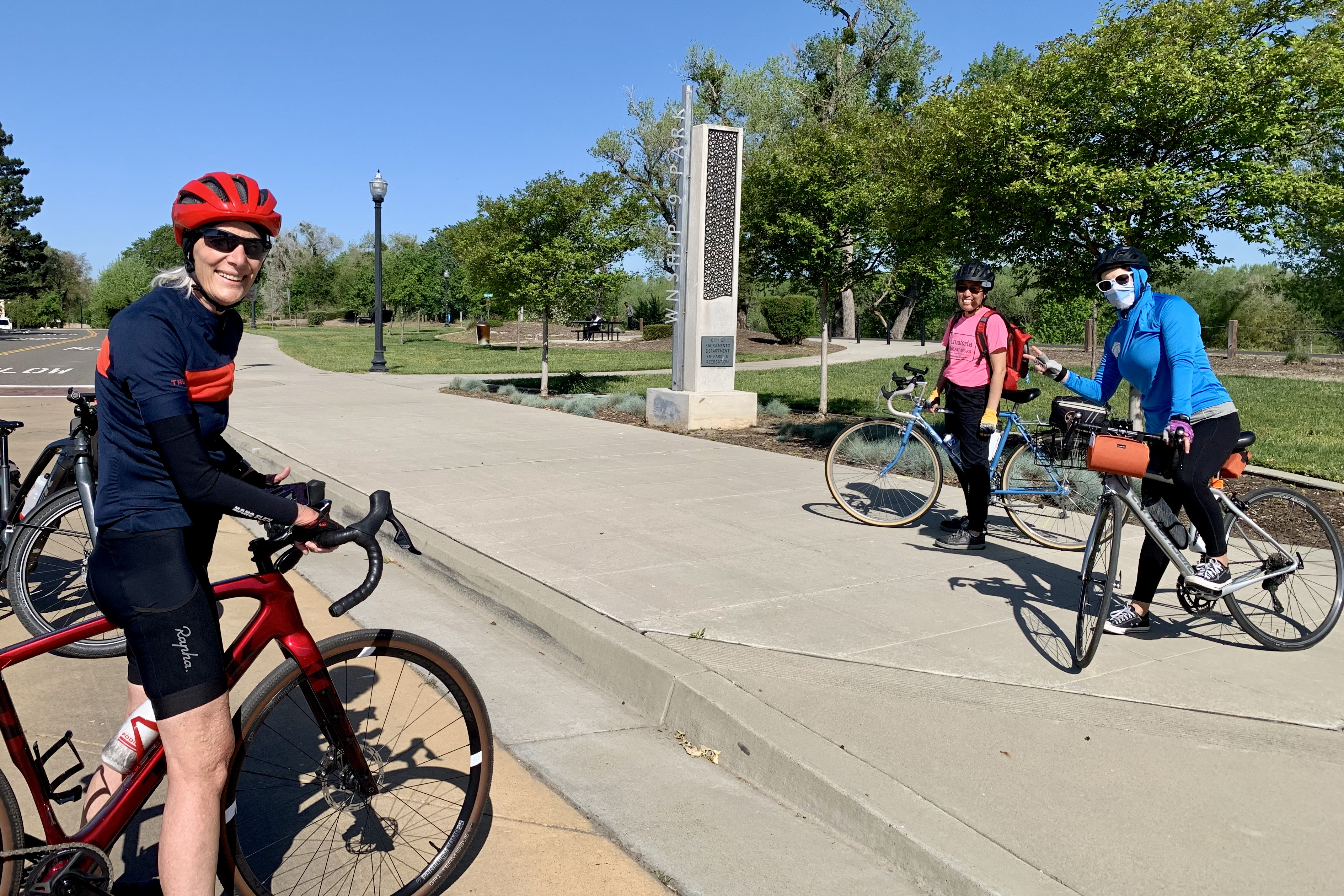 I’ve been organizing three social rides for Trails in Bloom – a celebration of nature, culture, and community – in the River District. This area of Sacramento around Richards Blvd has been known for its many urban homeless encampments and warehouses but is transforming into a new urban center. Coming soon: a Kaiser Hospital, a stadium for the FC Republic soccer team, Alchemists Marketplace (which is .. a project Thais’ company is working on), and more. There are community service opportunities on April 26, followed by 10 am social rides, which end at a festival at Hanami Park (next to the Museum of Science and Curiosity). There are three different starting locations for the rides, each will be led by a different LCI. Today Kathy, Barbara, Becky and I rode the basic route. We identified problem areas and best practices.