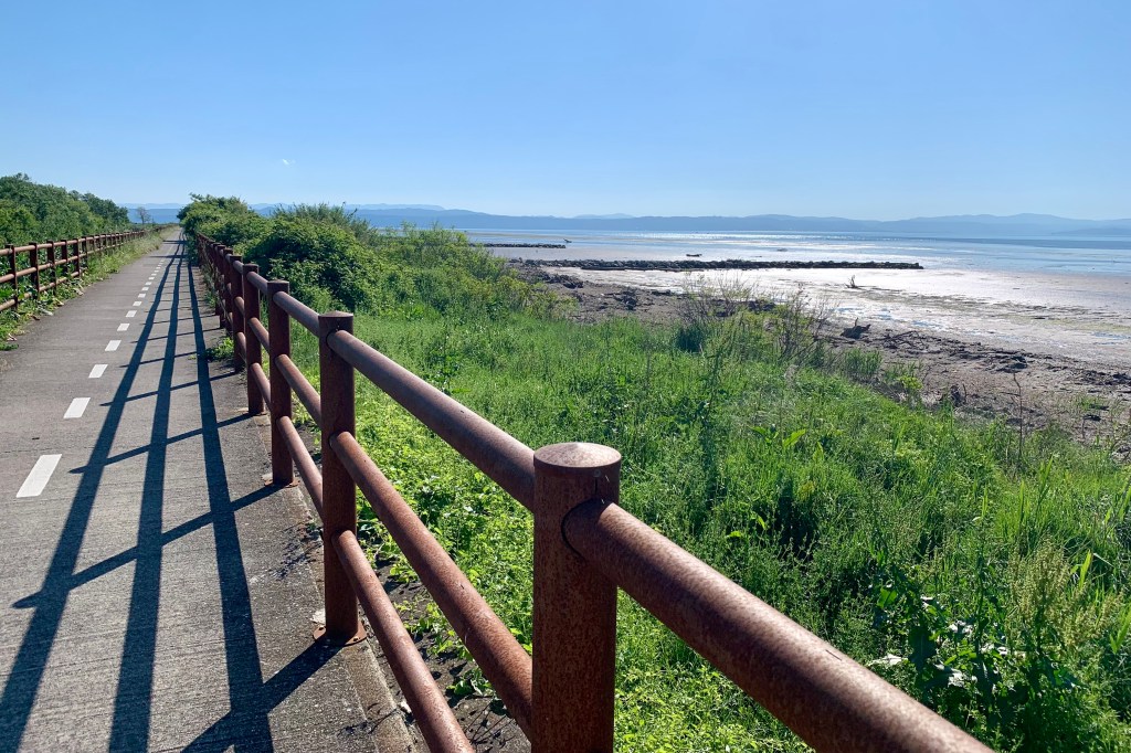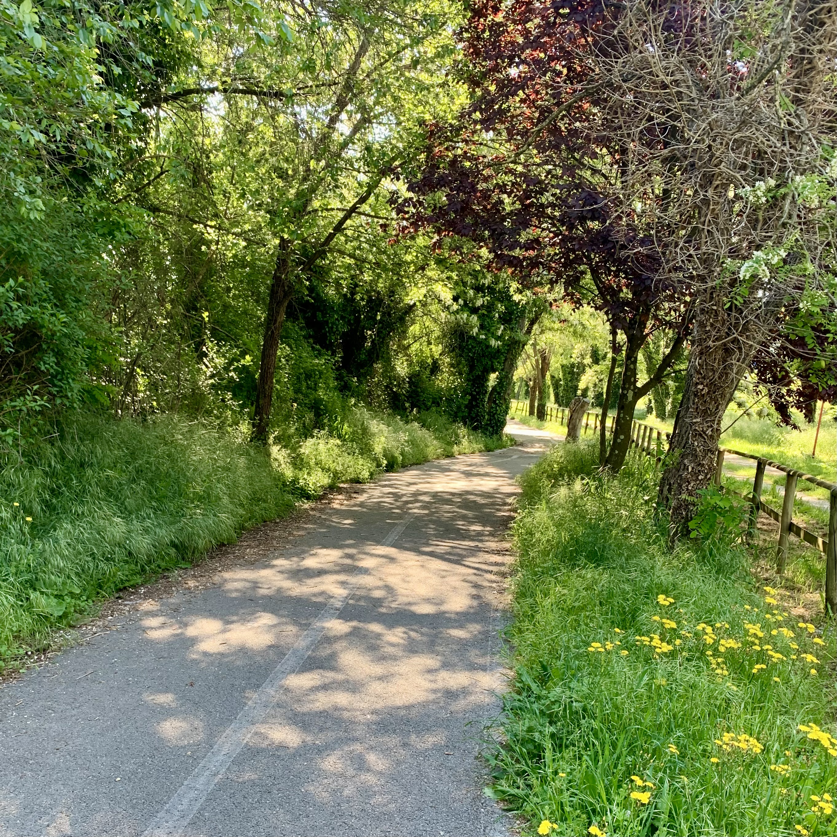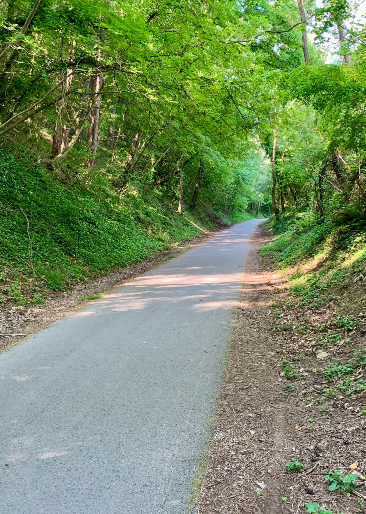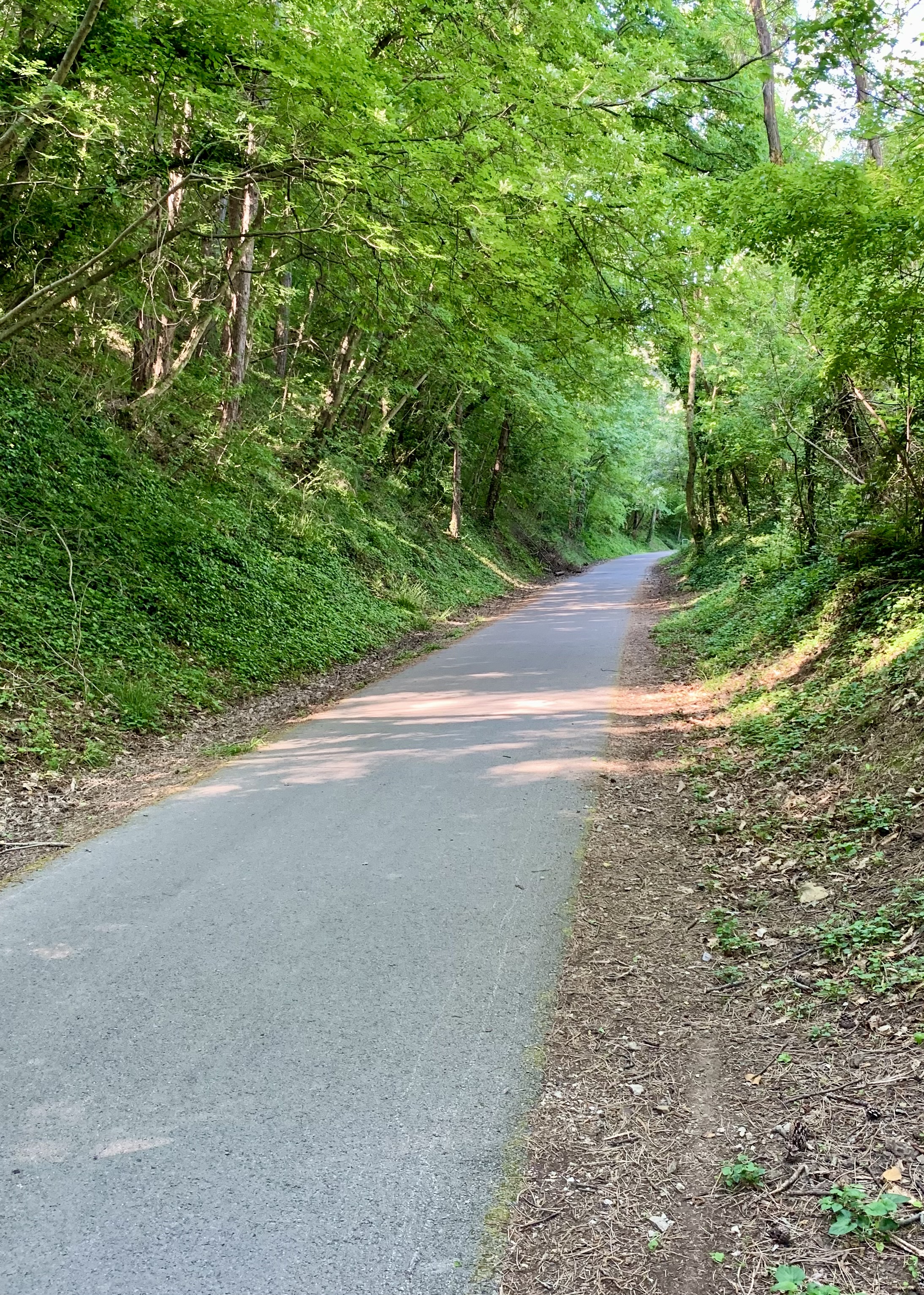 About 30 miles today. The view from the patio at our hotel as we had our end-of-day beer.