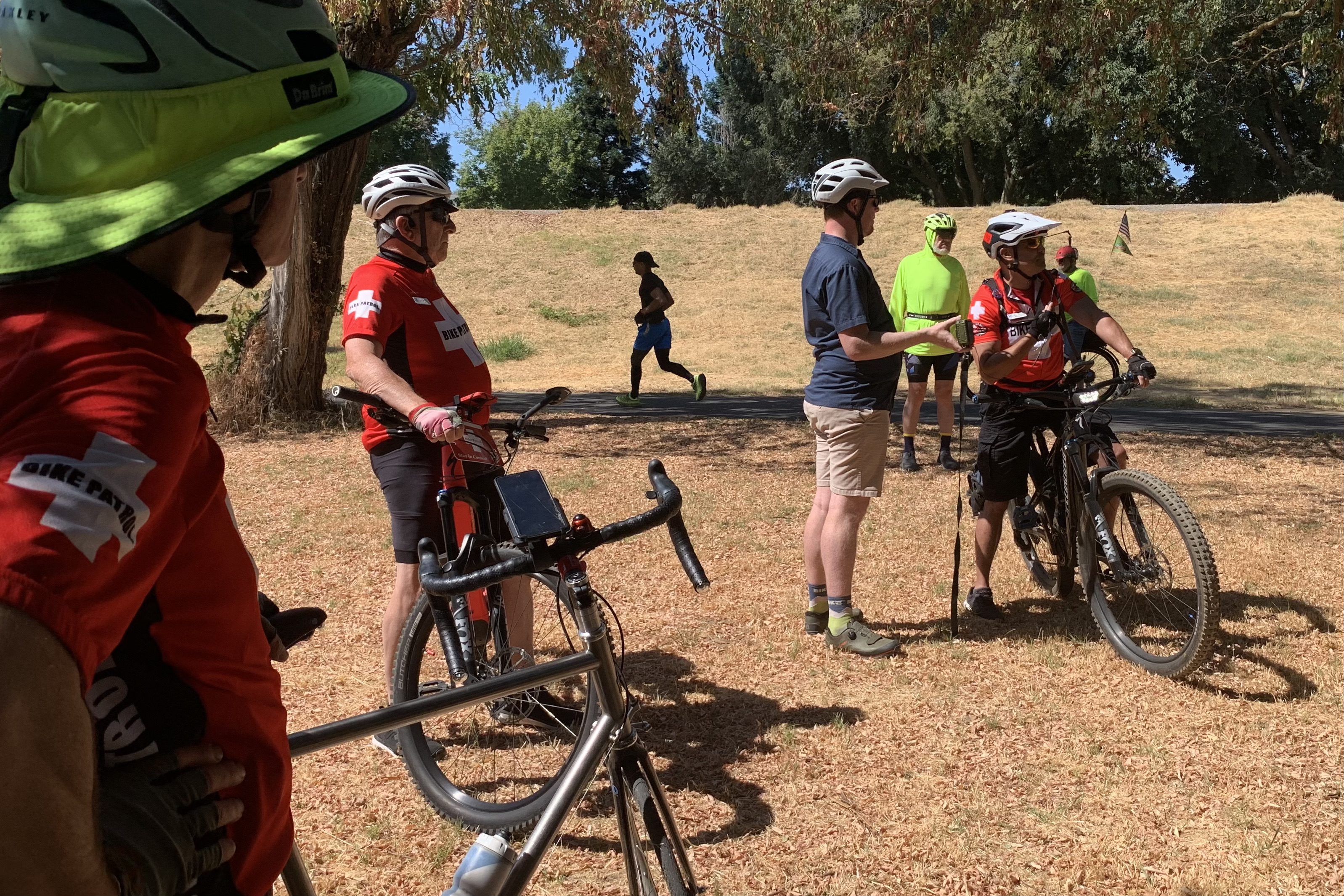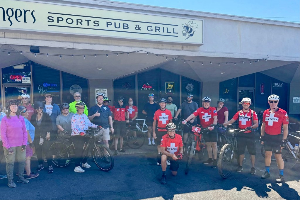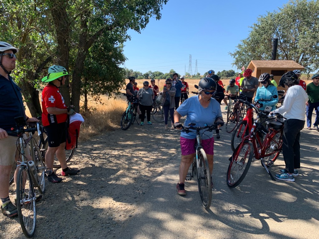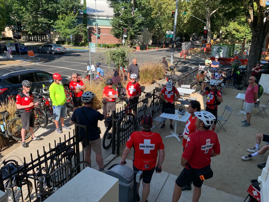 This month’s ride was American River Bike Patrol-focused. Lots of red shirts.