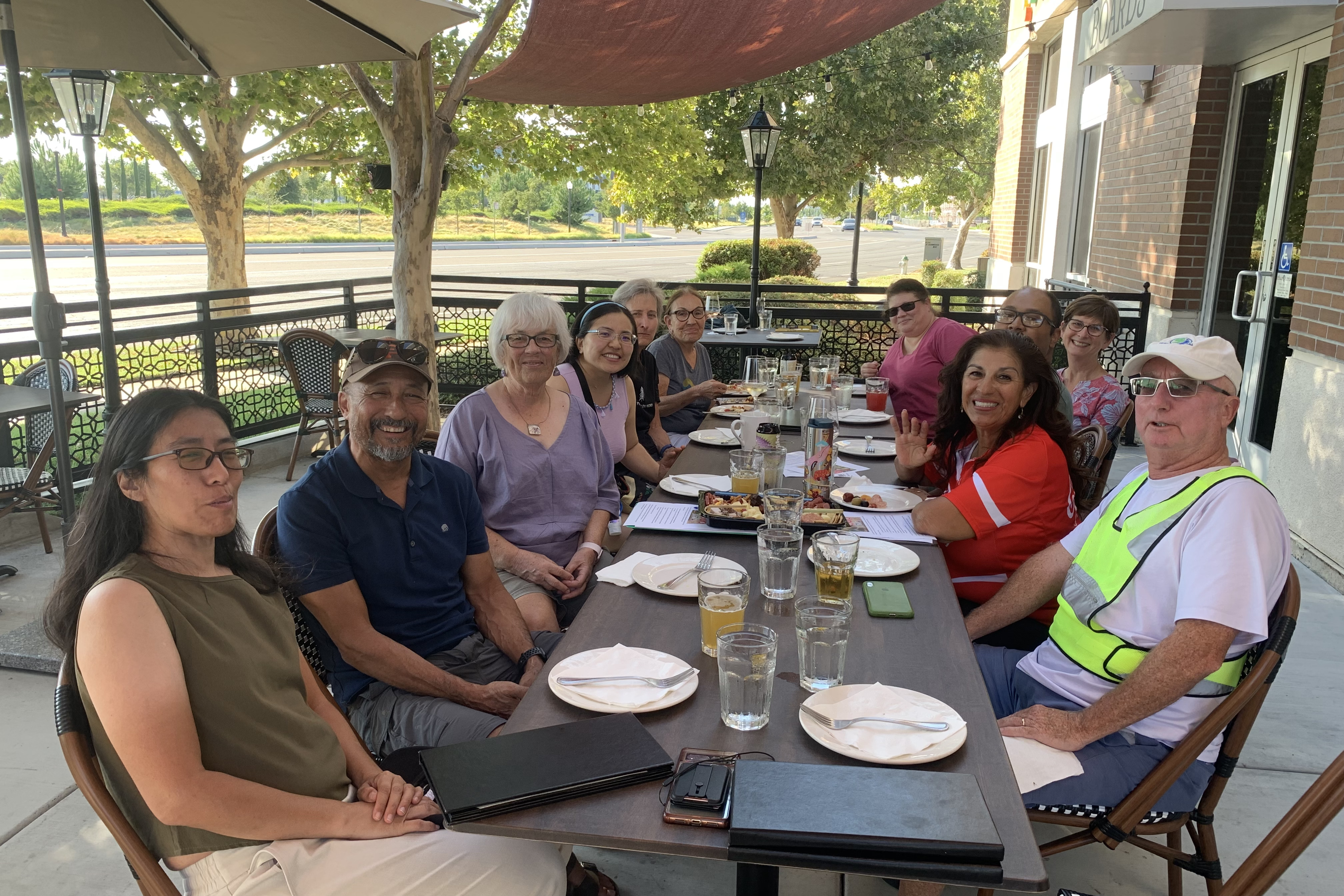 Saturday morning. We met at Peregrine Park and rode the American River Bike Trail to the Guy West Bridge, crossed the river and took a slightly different route back, going through McKInley Village where we stopped for a group picture at the “rabbit ears”.