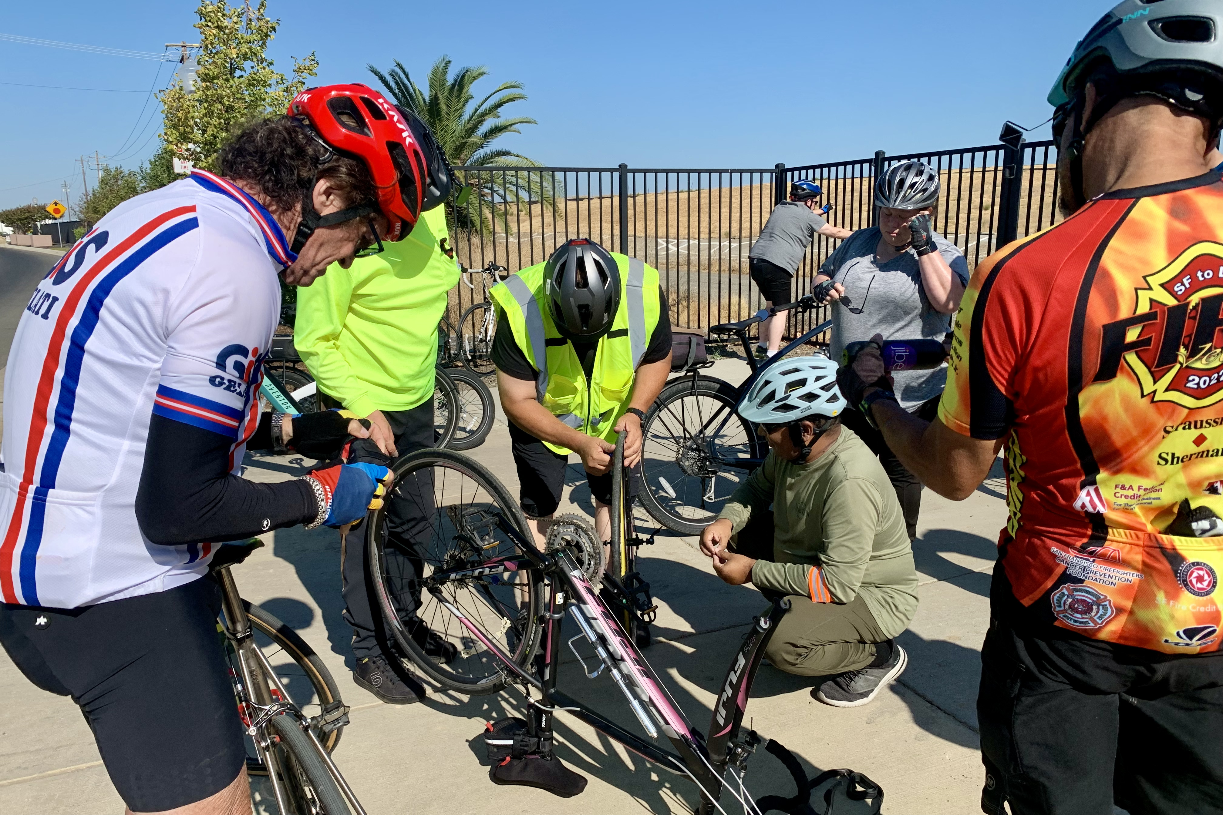 Lorge led, Lennore was sweep. The very best time to get a flat tire is on one of our rides. Step back and let the experts fix it fast.