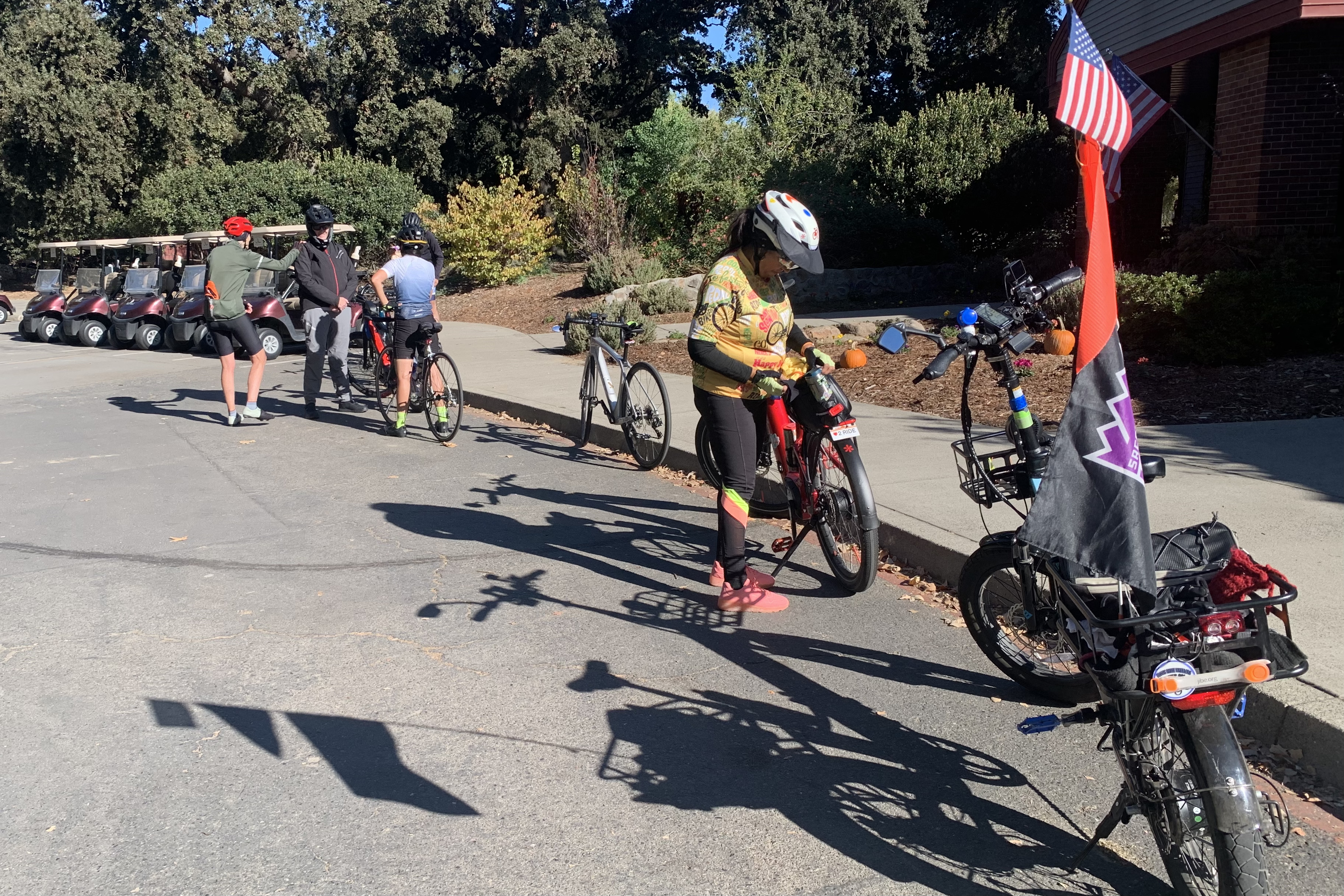 This was a farewell ride, sort of. Dani and Kathy are moving to Roseville. Today we did one of our favorite rides – around the airport. A rest stop at Teal Bend Golf Course.