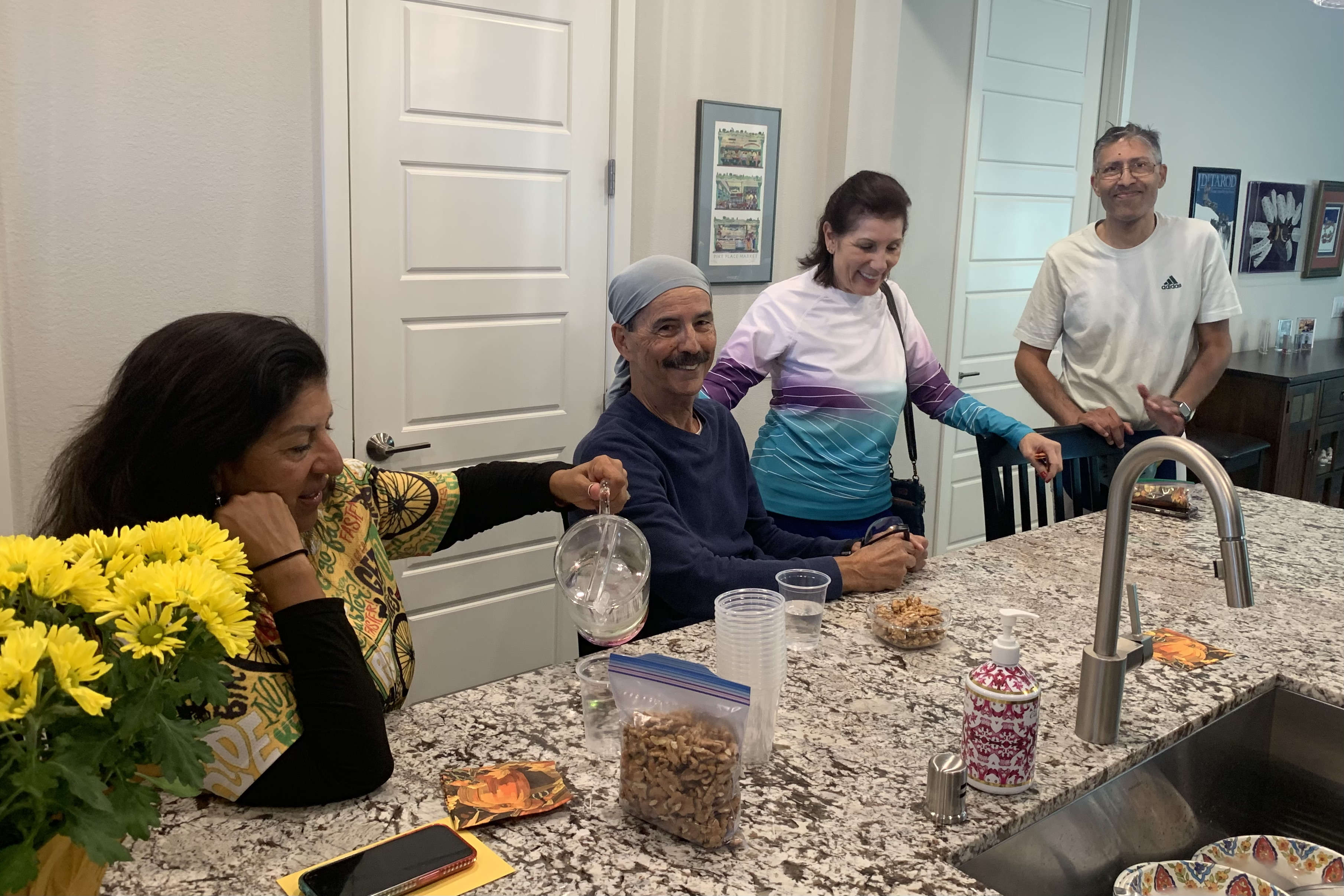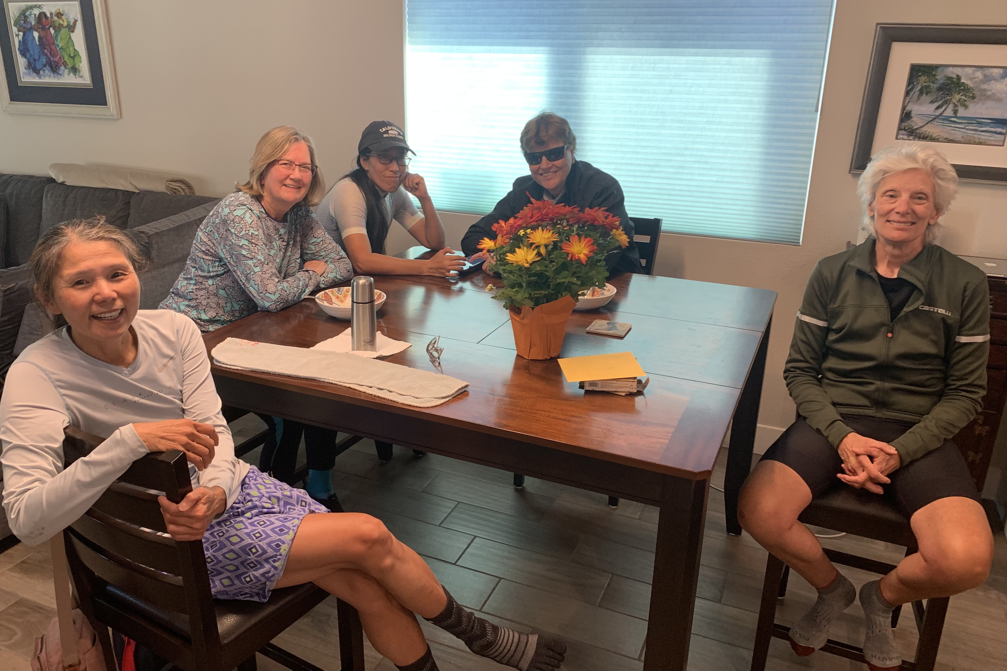 After the ride, we had cake and ice cream at my house. And Brenda’s birthday is tomorrow. Brenda, Brad, Sandra, Milan: