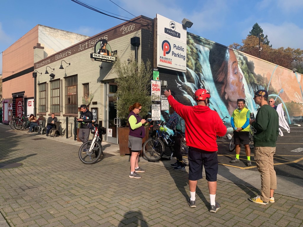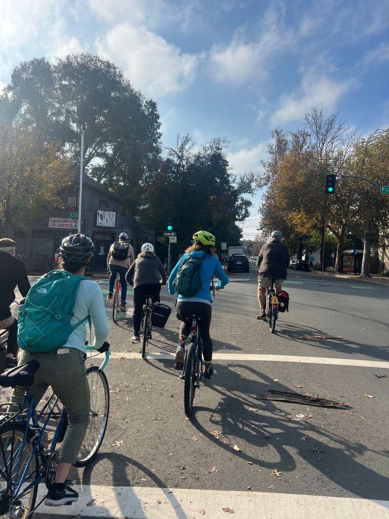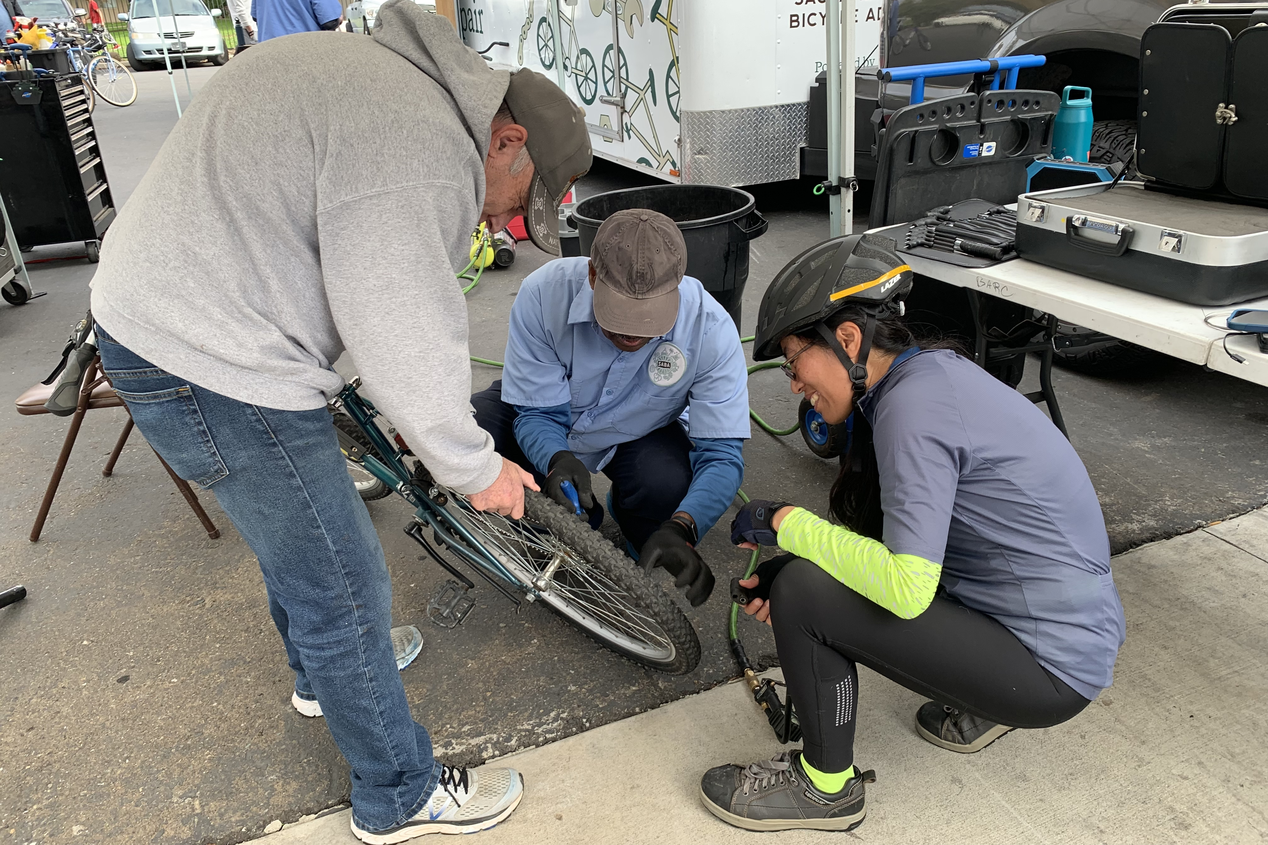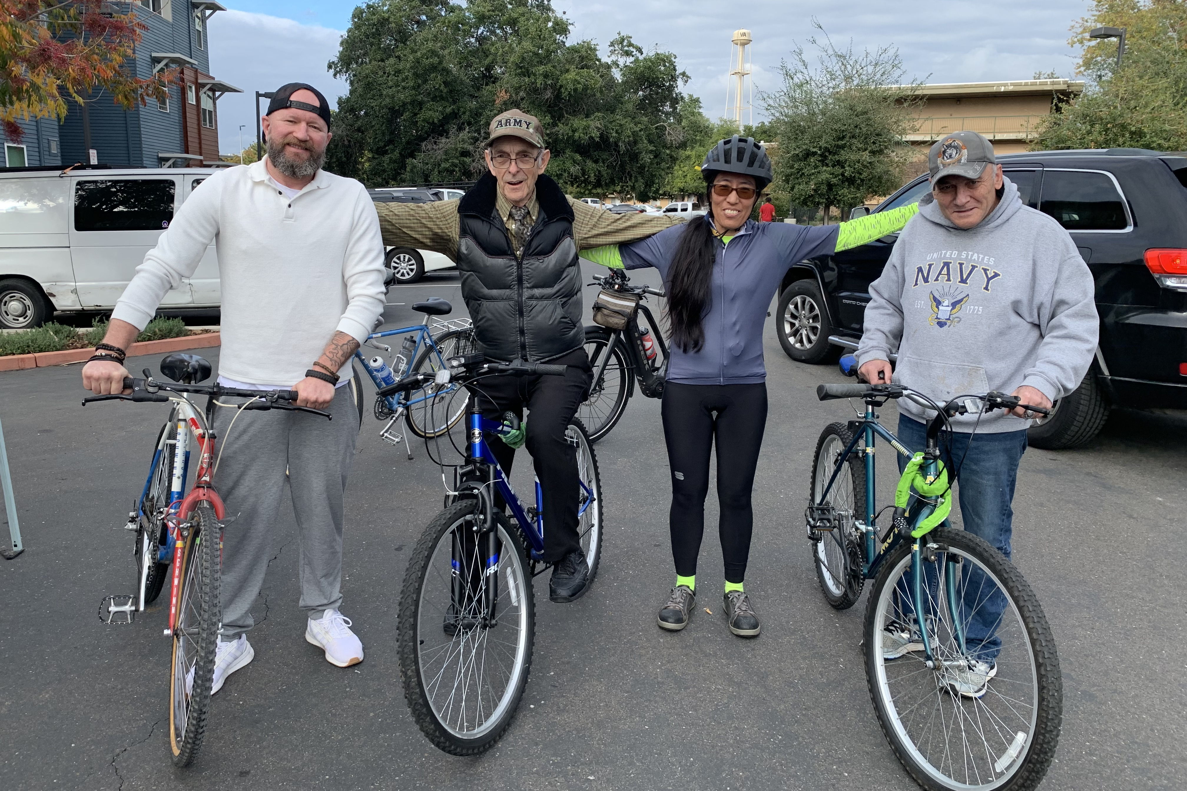 Mather Veteran’s Village is part of Mercy Housing and provides 50 permanent supportive homes for formerly homeless and disabled veterans. Having a functioning bike is important to many of the residents and other who live in the surrounding community. SABA’s Ride Ready Repair team comes out regularly to fix bikes. Today we added a social ride afterward.