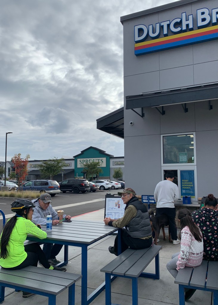 It was a short ride, about 2.5 miles to Dutch Bros.