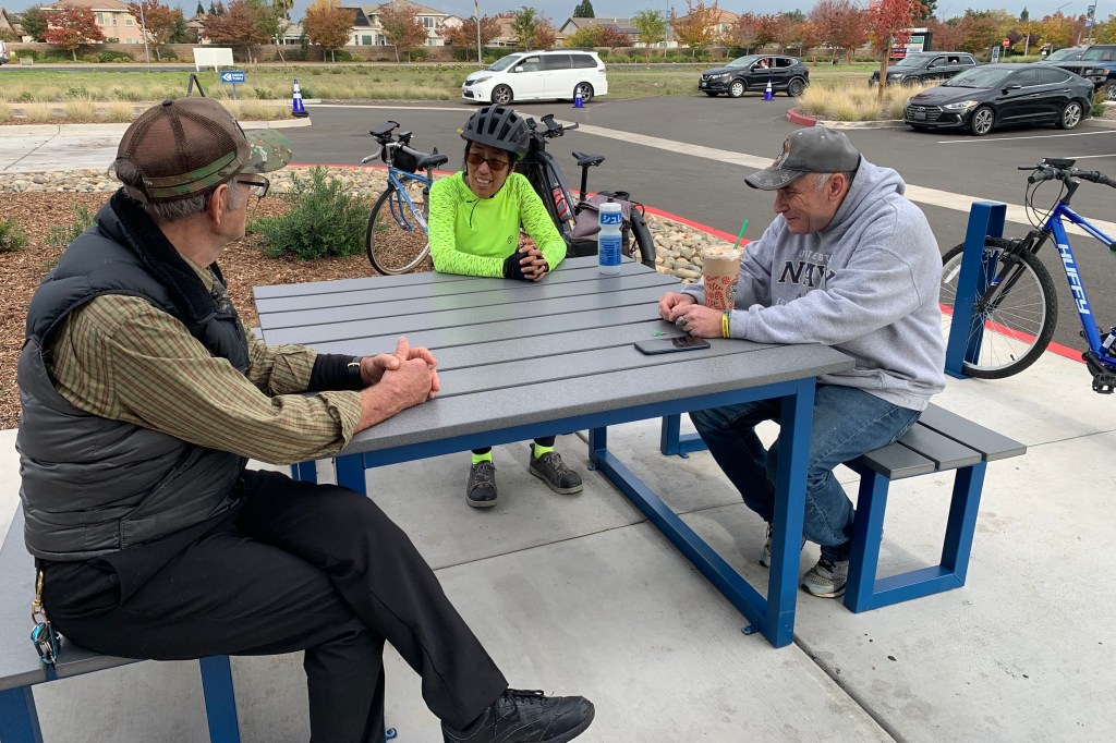 On the way back, Rick and I rode side by side most of the way and he got a chance to talk about his military service and family. He asked if we could show him how to use his bike to go see his daughter in Folsom. What a couple of nice guys who served in the military and now need some help. And someone to talk to.