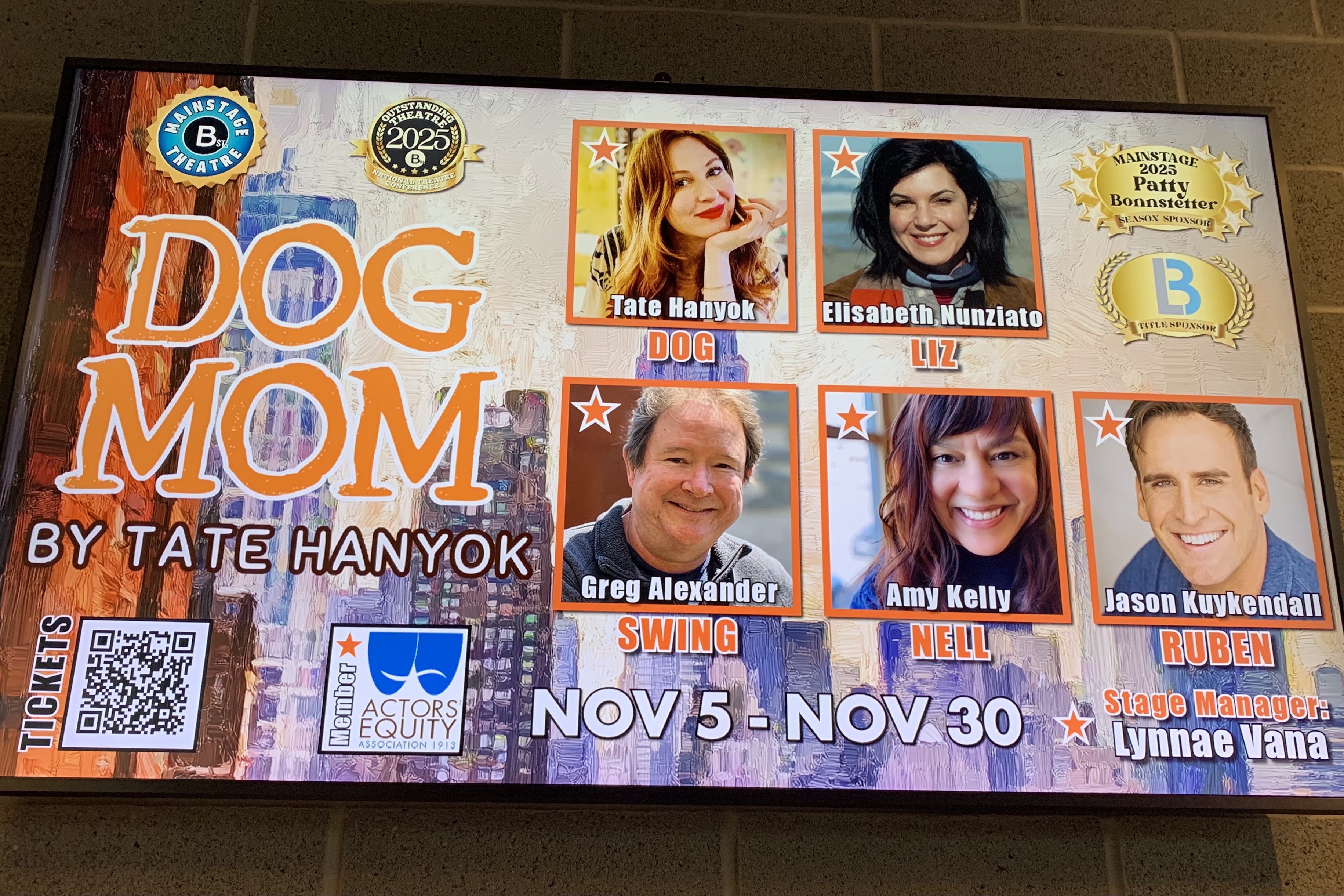Dog Mom won the Comedy Festival last year, was on stage this year at B St, and scheduled for production in several cities next year. The actors portraying the dogs were hilarious. Best play at B St so far!