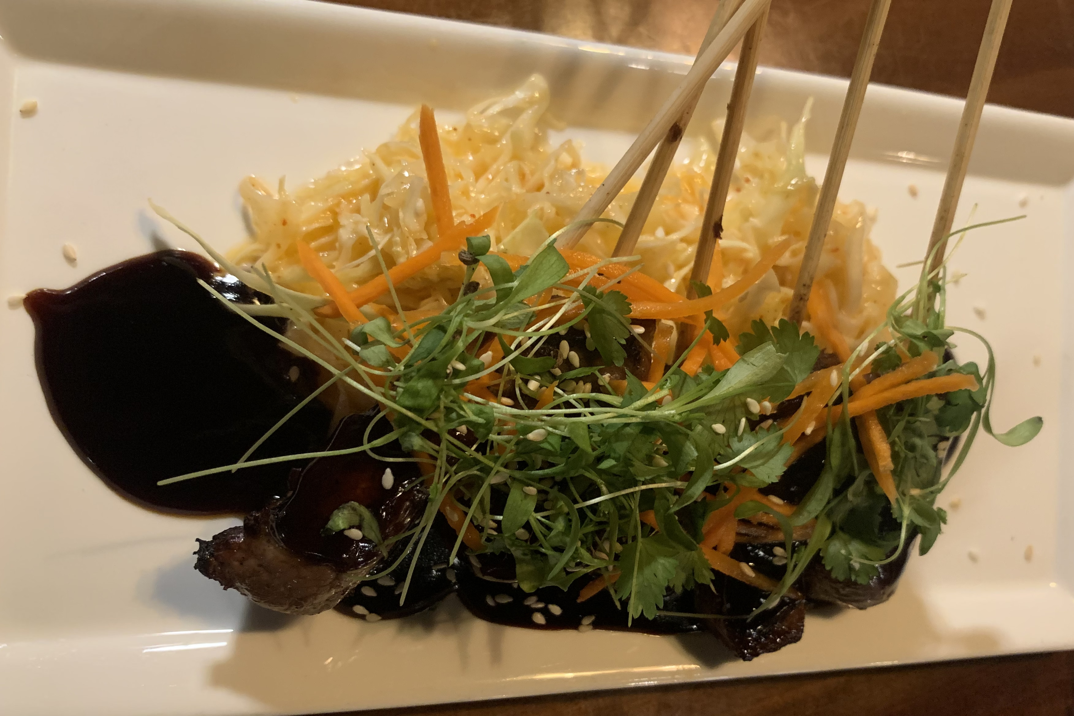 My favorite. Yakiniku skewers with Kosho lime cabbage salad.