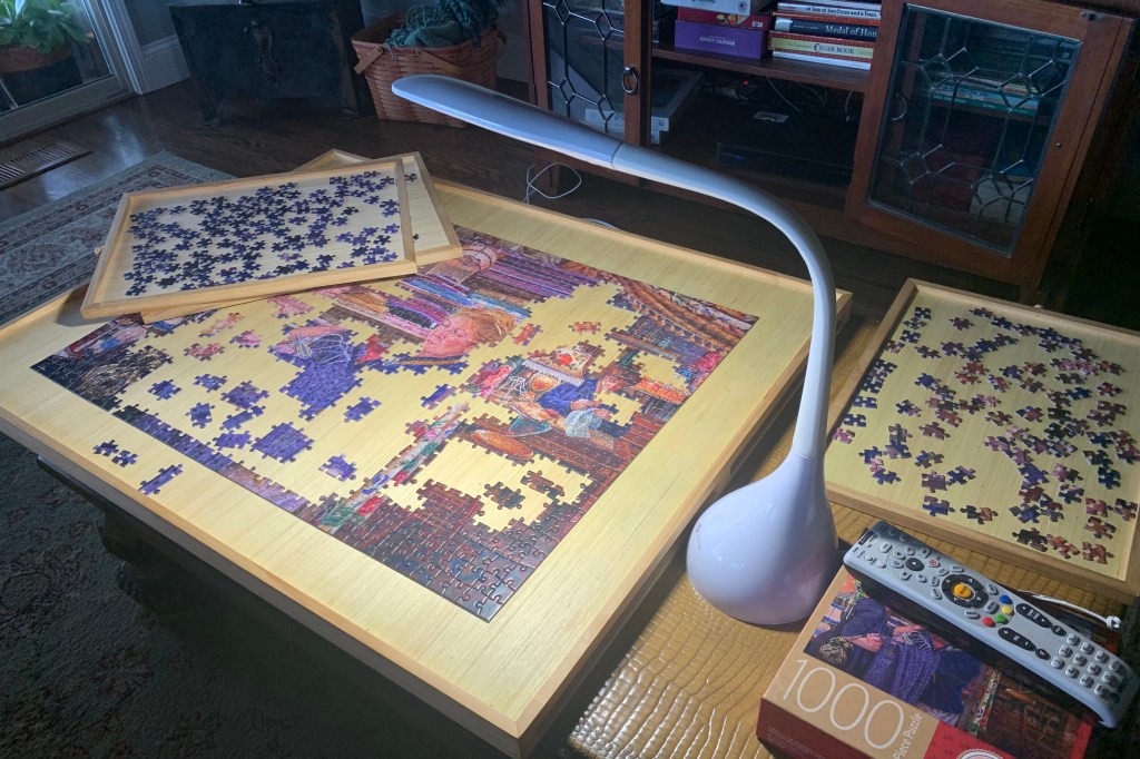 A relaxing morning with coffee, lots of football, and a jigsaw puzzle. What’s not to love?