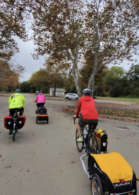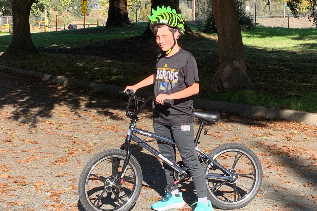 Aries came to a previous class and almost became an independent bike rider. Today, he was quickly pedaling but needed practice. Soon, he was ready to ride the very safe roads in Miller Park, then short rides on the Sacramento River Bike Trail and finally around the block on streets. Excellent progress.