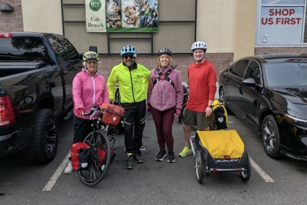 Ahead of time, we agreed we weren’t interested in competing or winning prizes. Nevertheless, we improved our strategy this year and it worked. We came in 3rd place! 1-Pull a trailer. Jibe loaned me a trailer, Hal already had one. Lorge bicycle tours so he has front and big rear panniers. 2-Have one rider in your group who can post on social media – thank you Kimberly. Go team! Rob, me, Michael: