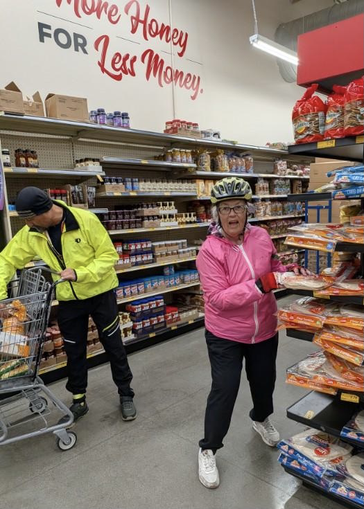We rode to three grocery stores in N and S Natomas. We had about $390 to spend. SABA gave us $100, Jibe $250, plus our own contributions.