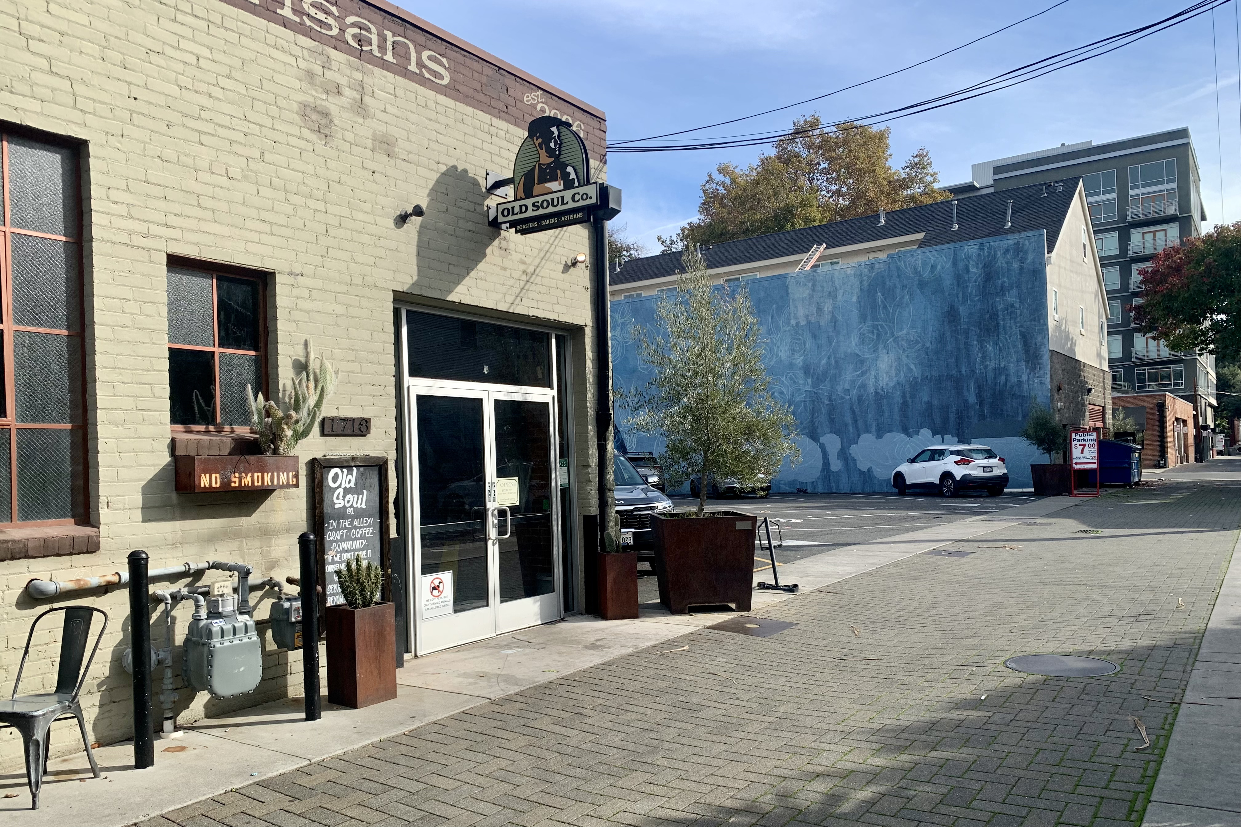 I was tasked by SABA to organize the next couple of social rides. For November, I decided on a tour of Sacramento’s kinda-famous alleys with names chosen to reflect the city and its history: Blues .. Victorian – in alphabetical order. Today BarbaraL and I did pre-ride based on a route I created using Ride w GPS. We started at Old Soul Co in Liestal Alley. Liestal Switzerland is one of Sacramento’s sister cities.