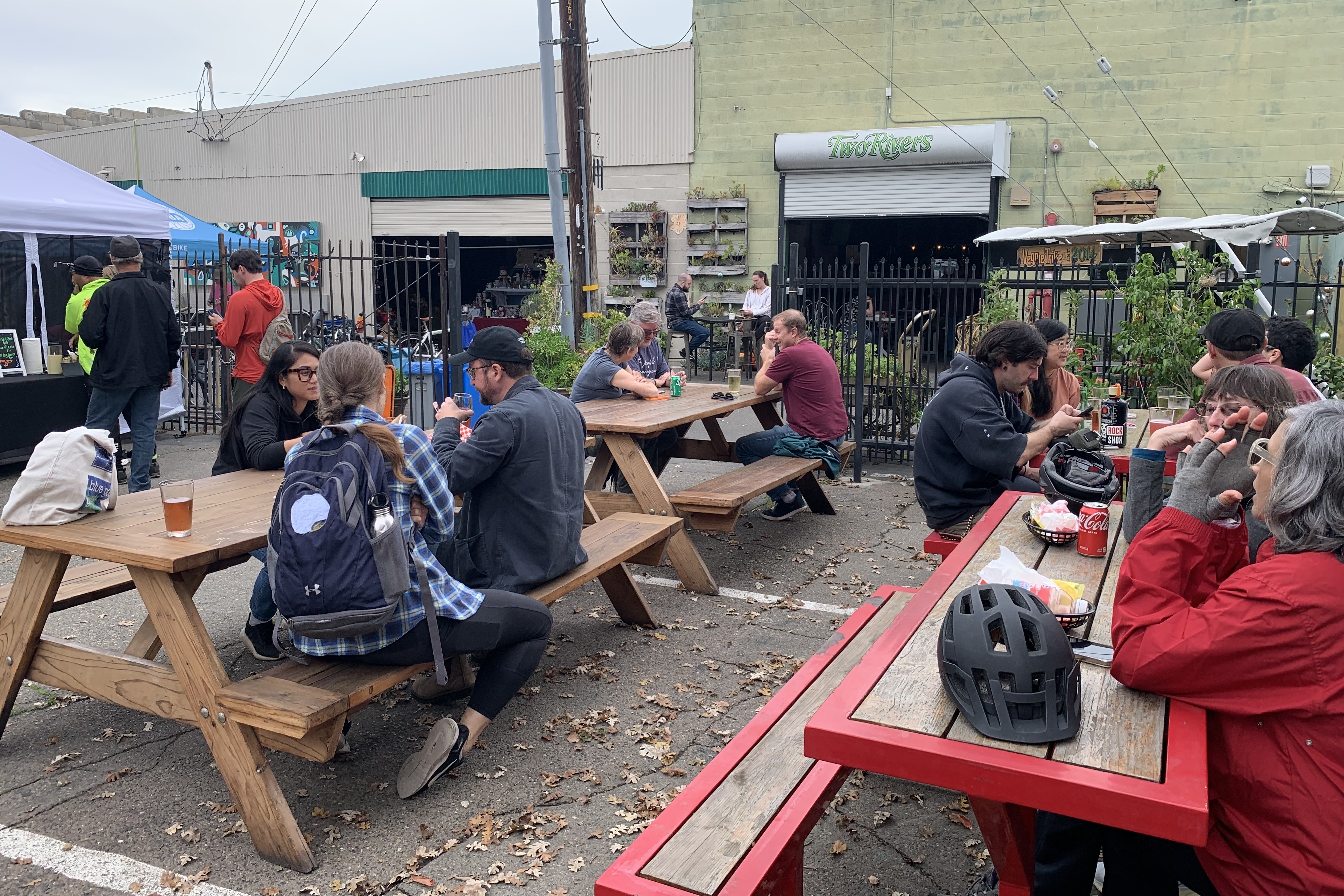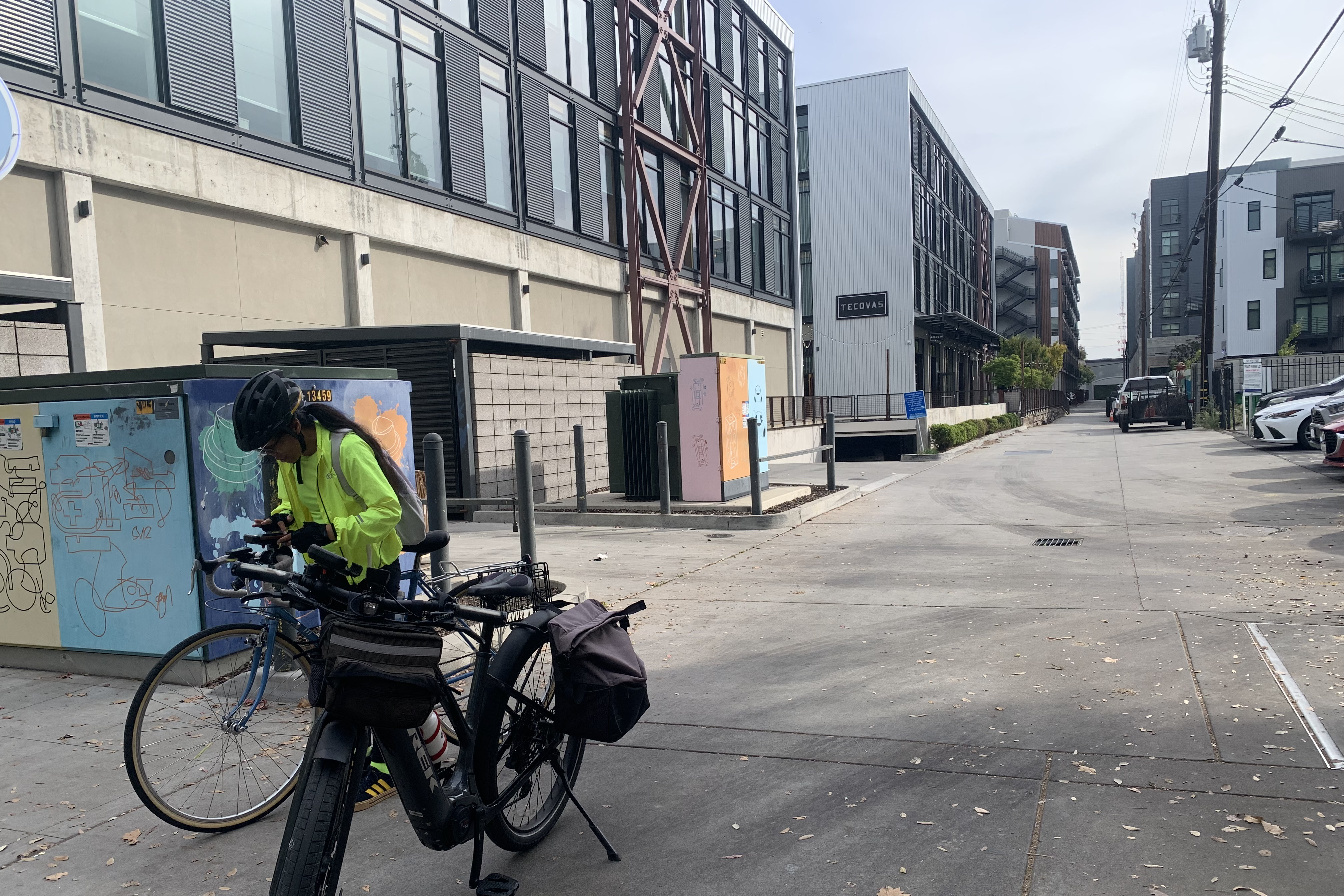 Next came Firehouse Alley (one section closed, another filled with construction or delivery vehicles – this is why you do a pre-ride). On to Improv Alley, Fat Alley, Eggplant Alley, Democracy Alley, Chinatown Alley (several blocks are not paved). The end of the ride will be at Cantina Alley which is the name of a business in Jazz Alley.