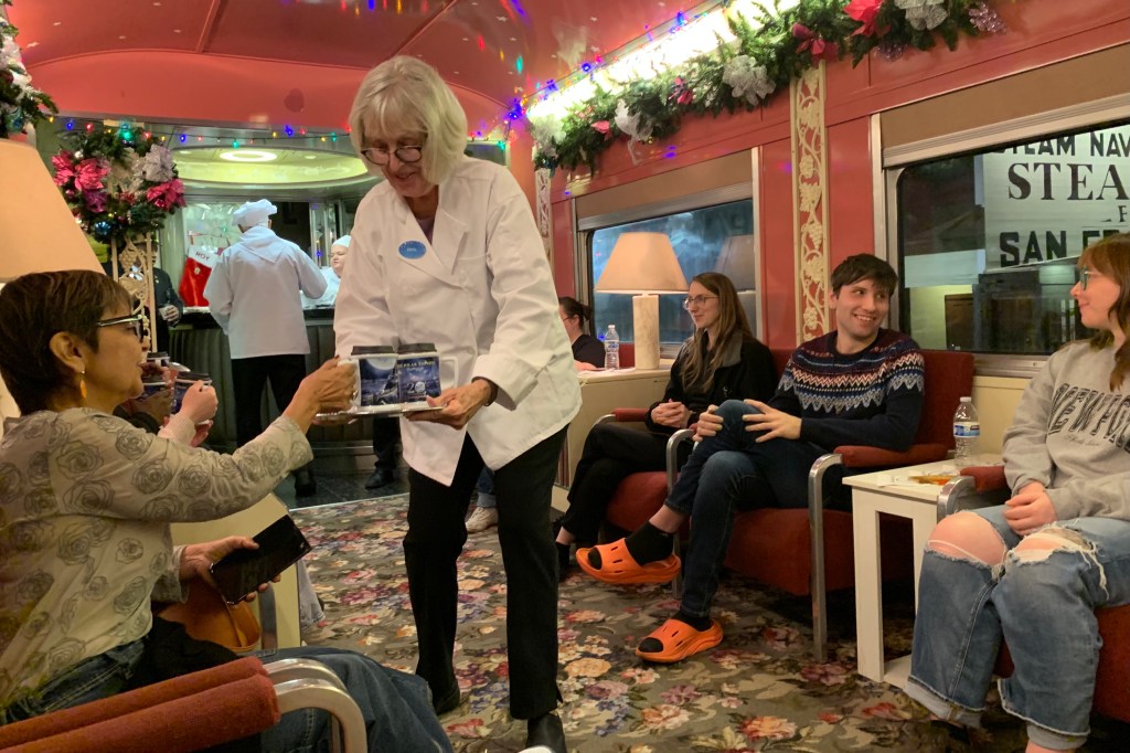 While Santa made his way to the rest of the cars, staff interacted with passengers. A long-time friend of BarbaraL, they’ve worked together for years. She’s a retired teacher who can translate Russian and Ukrainian.