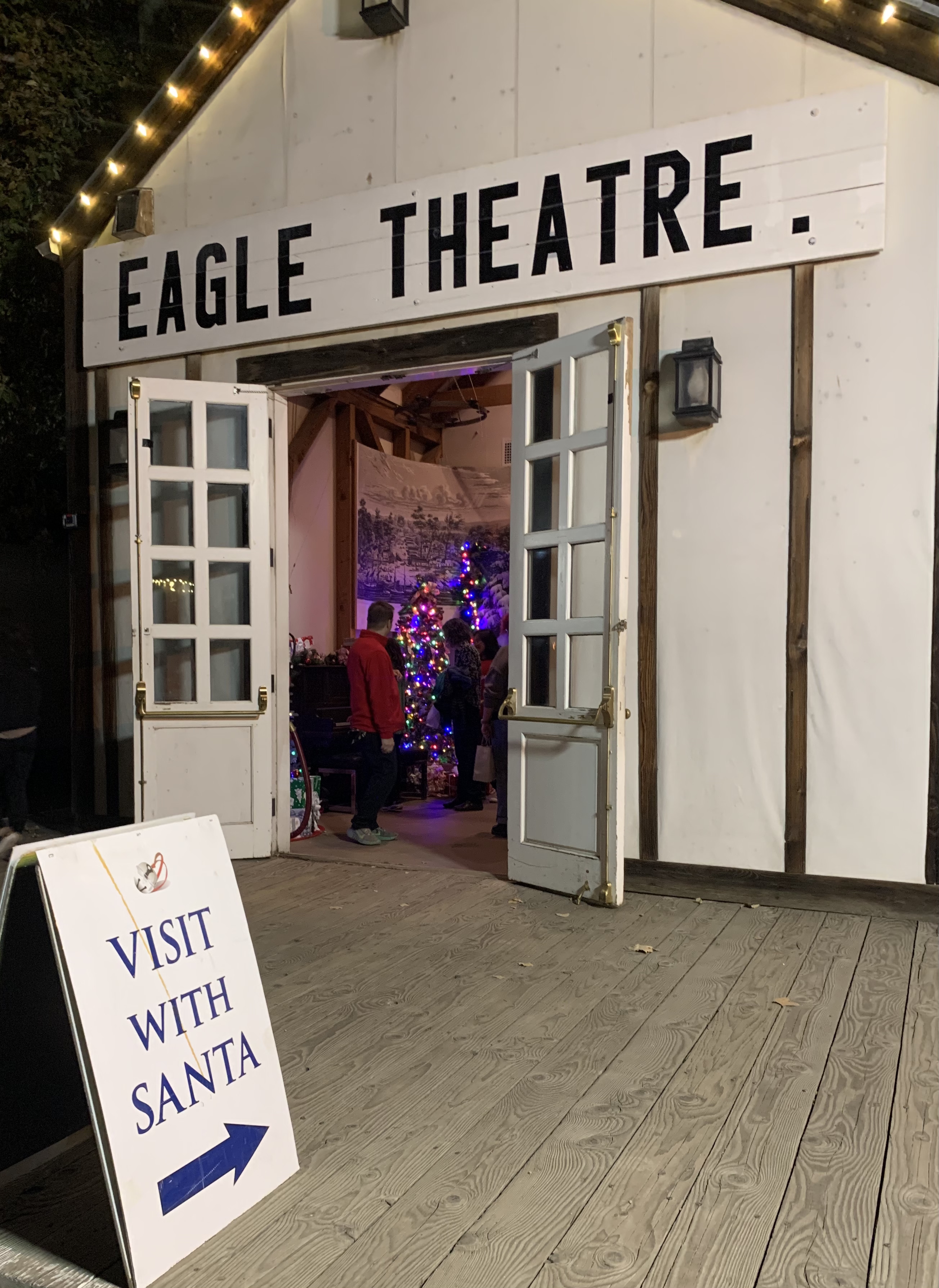 On the way to the North Pole, the book Polar Express was read aloud. Copies of the book were passed out, nice to be able to see author/illustrator Chris Van Allsburg’s illustrations. When we arrived, Santa and entertainers greeted us, then turned and walked down some steps …