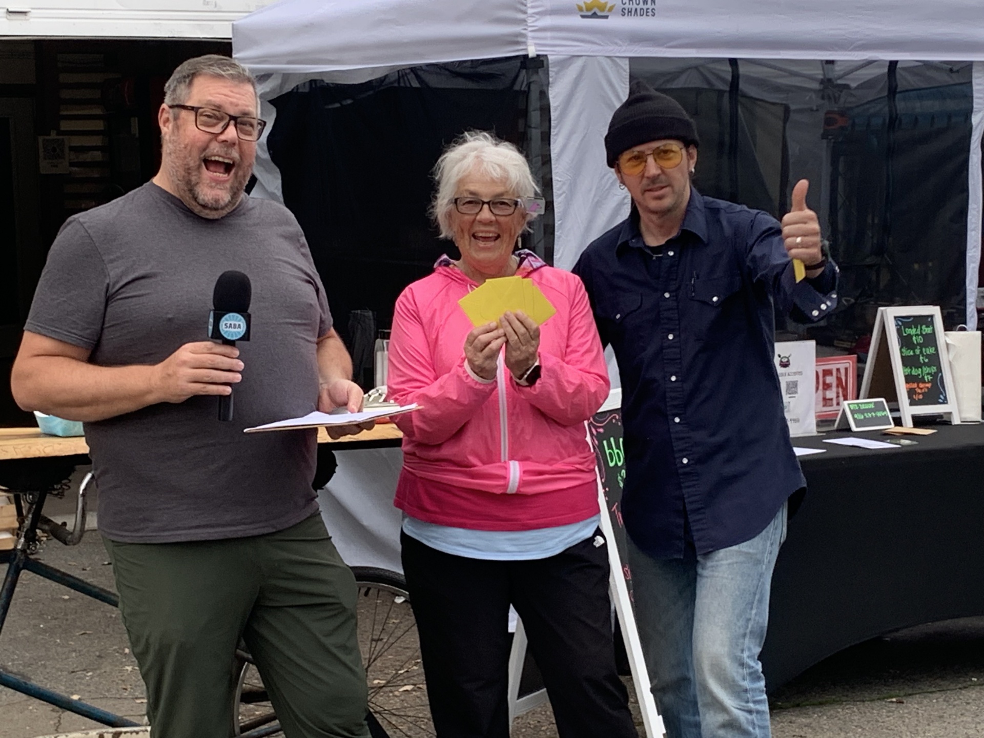 I met Lorge, Kimberly and Hal at Bella Bru at 11a on Saturday forSupermarket Sweep – a SABA-sponsored bicycle-powered food drive.