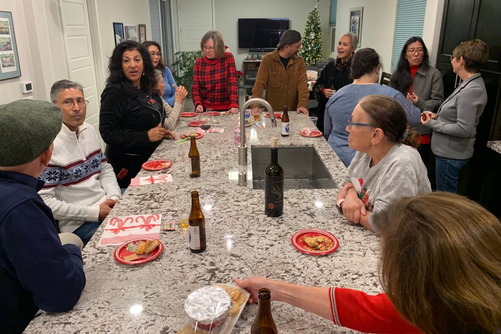 Dinner needed to be served like we were camping, so I brought individual servings of turkey tetrazzini, salad and cookies. BarbaraL closed the door at 6:30 and we had one hour before the crowd would want to get in to see Santa.