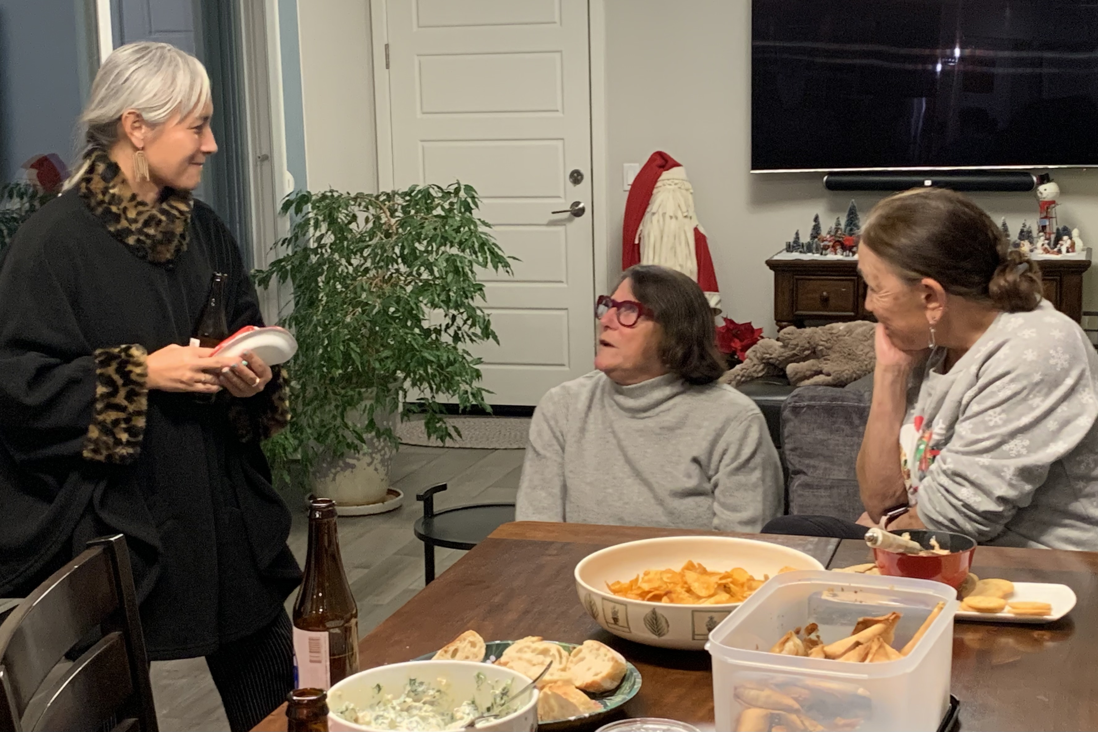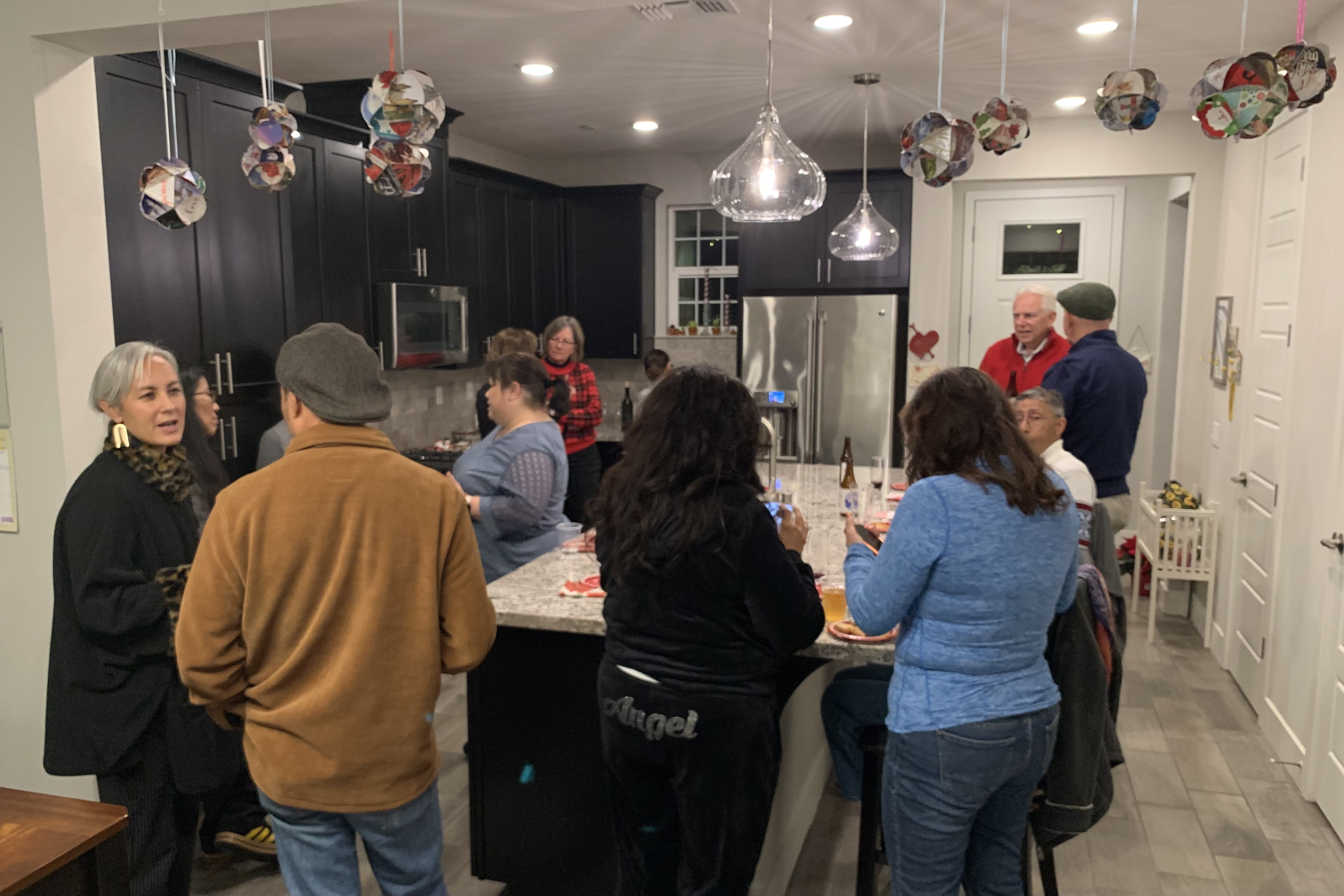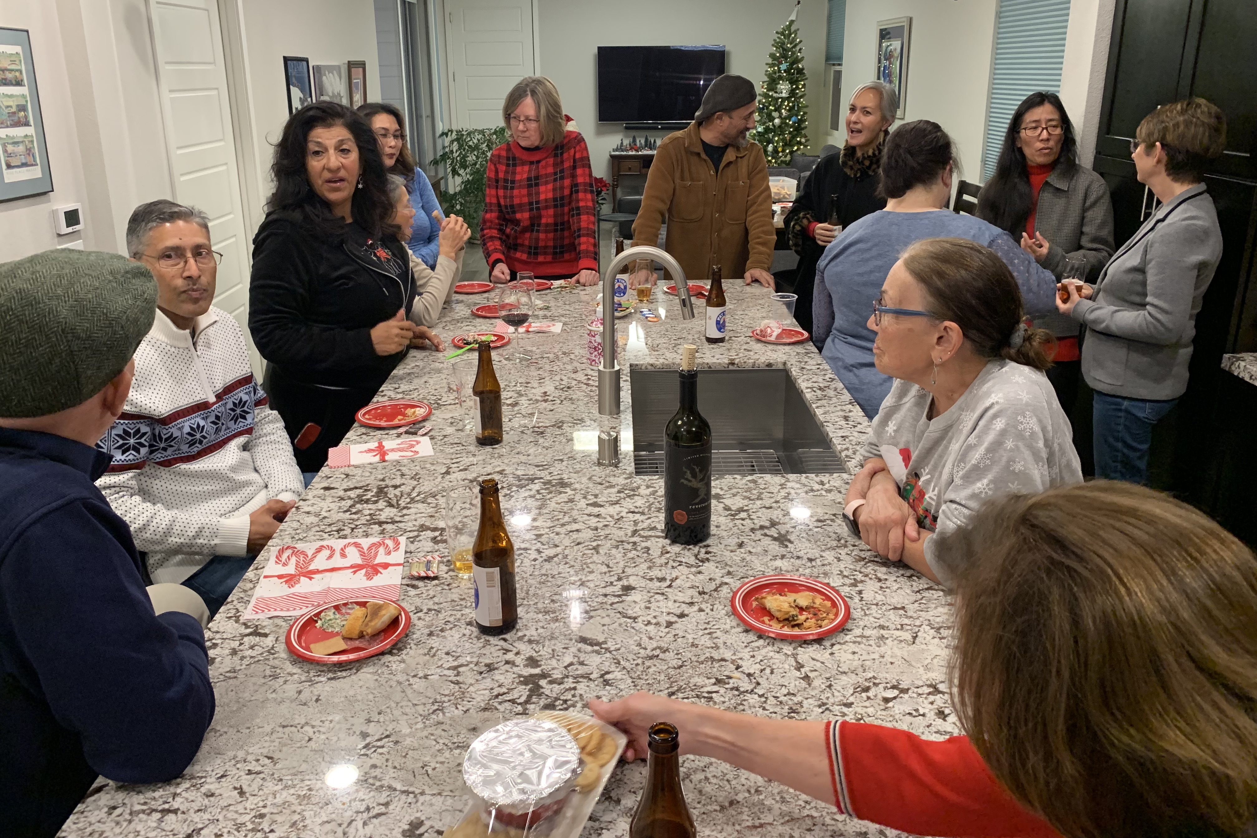 Dinner needed to be served like we were camping, so I brought individual servings of turkey tetrazzini, salad and cookies. BarbaraL closed the door at 6:30 and we had one hour before the crowd would want to get in to see Santa.