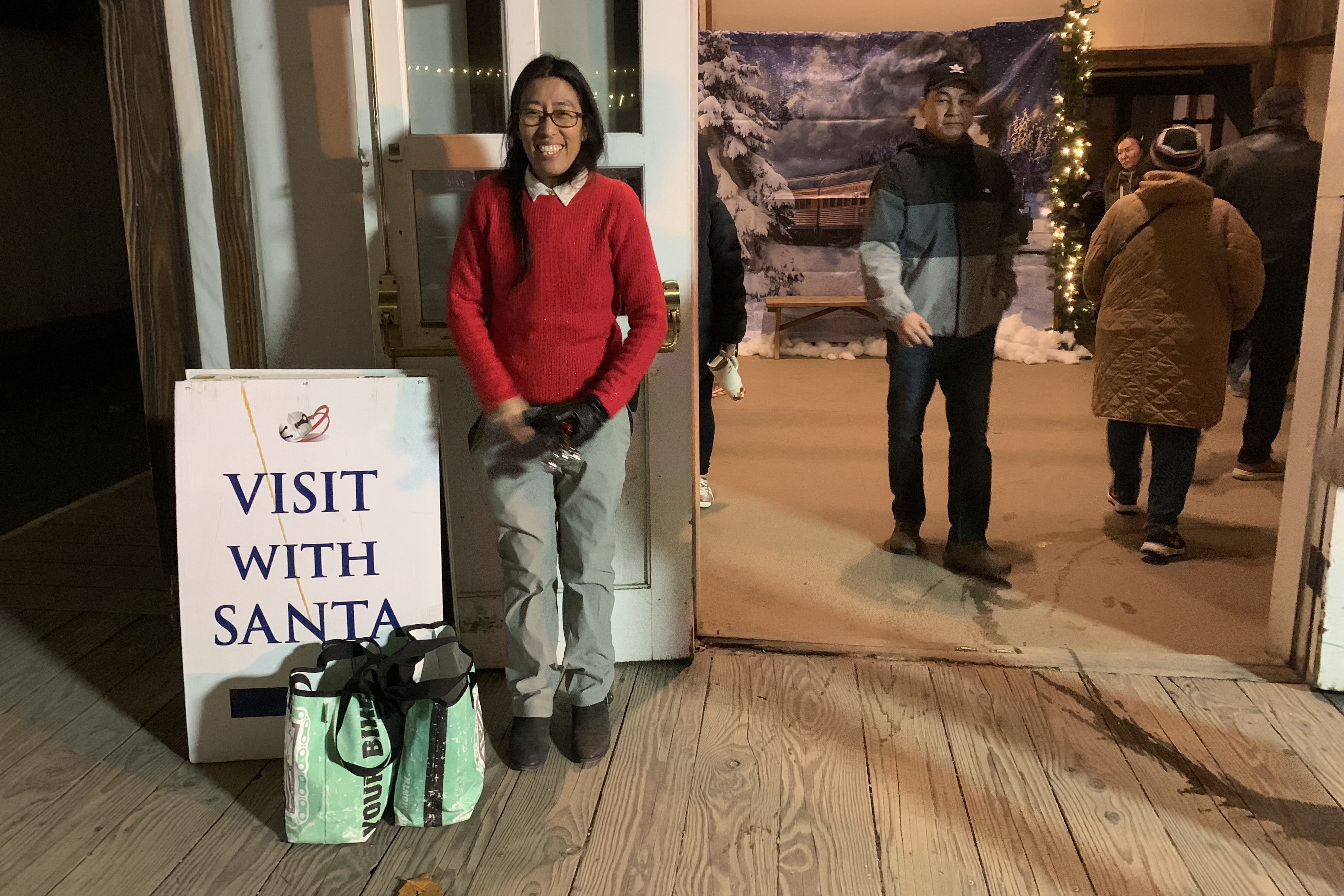 Dinner needed to be served like we were camping, so I brought individual servings of turkey tetrazzini, salad and cookies. BarbaraL closed the door at 6:30 and we had one hour before the crowd would want to get in to see Santa.
